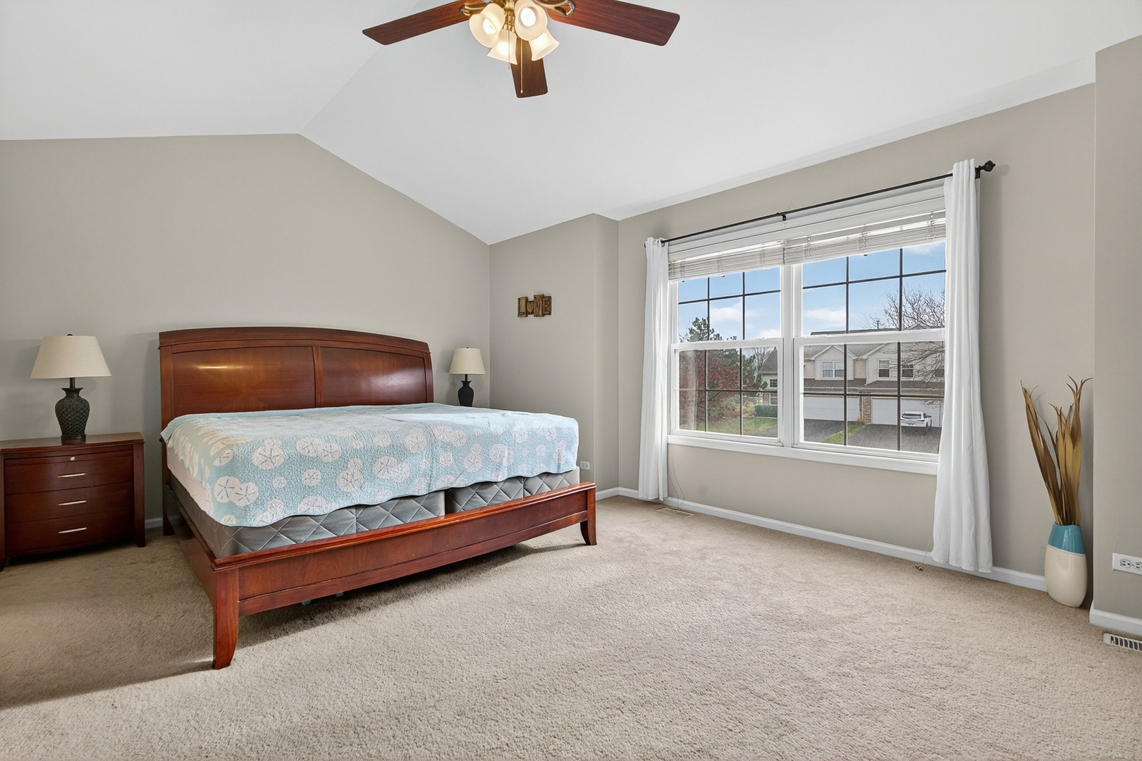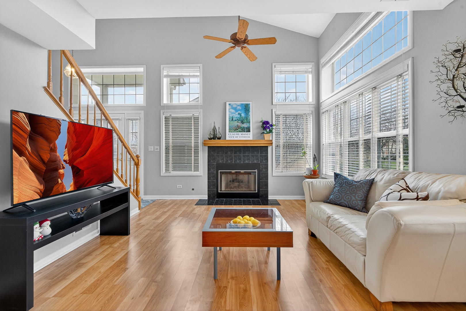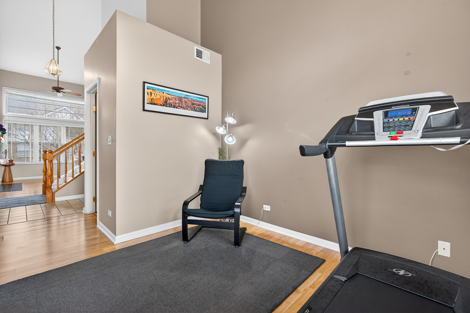 Beautifully updated and move-in ready 2-bed, 2.5-bath townhome with 1,534 sq ft of comfortable living space! The main level features modern wood-laminate flooring throughout, a bright and open living/dining area, and a well-appointed kitchen with stainless steel appliances. A sliding glass door off the dining room leads to a private outdoor living area-perfect for relaxing or entertaining. The main level also includes a versatile den/office along with a convenient half bath. Upstairs, you’ll find two spacious carpeted bedrooms, each with its own full bath. The large primary suite offers excellent closet space and a private en-suite. A second-floor laundry room adds everyday convenience. Fantastic Roselle location close to parks, shopping, restaurants, and transportation. A wonderful opportunity to own a spacious, modern, and well-maintained home-don’t miss it!
