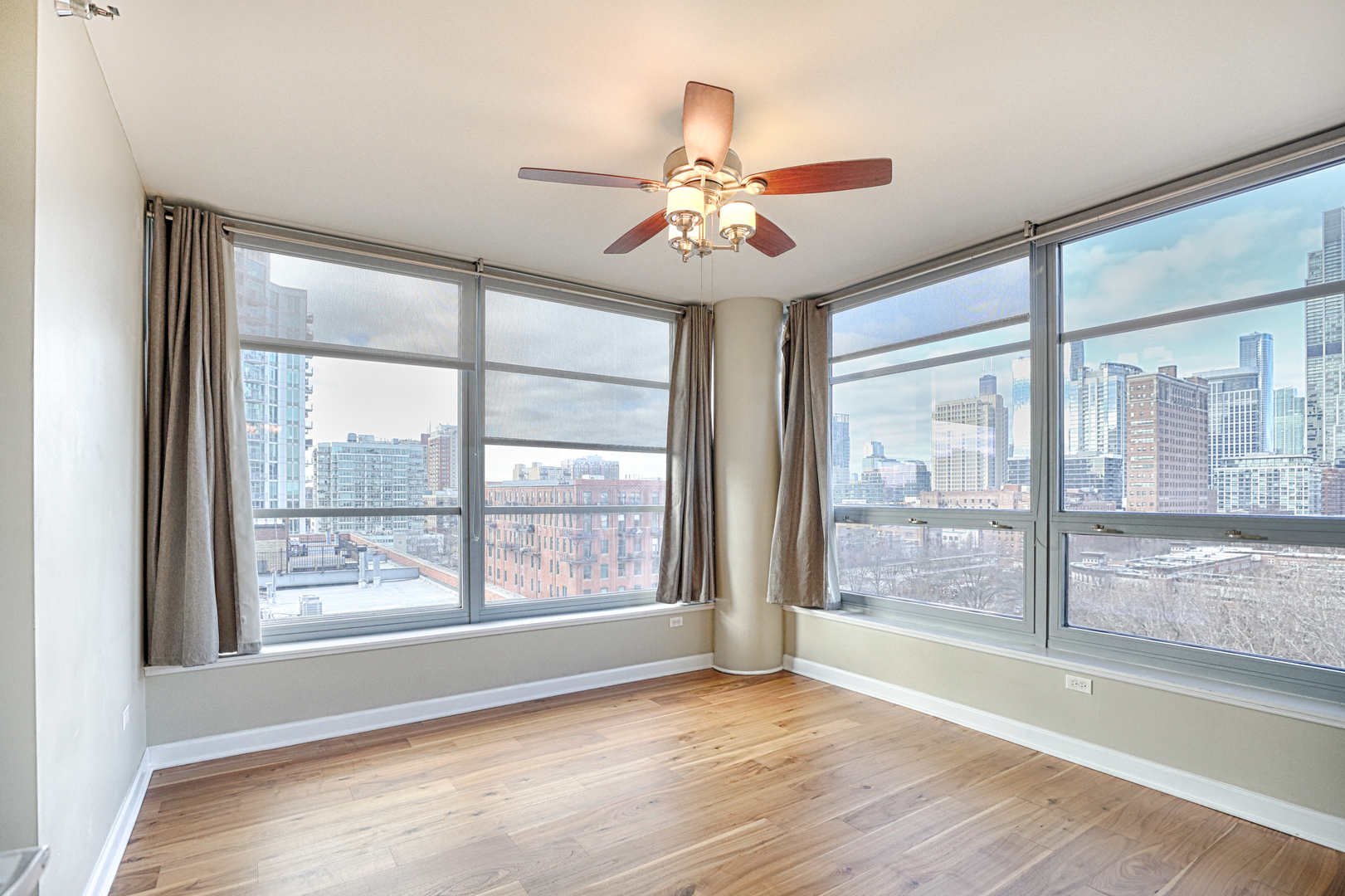 STELLAR VIEWS ABOUND IN FULL-AMENITY CONTEMPORARY GLASS HIGH-RISE W/24HR DOORMAN, SUNDECK, FITNESS CENTER, DRY CLEANER, ADJACENT PARK. UNIT FEATURES GRANITE COUNTERTOP, BLACK APPLIANCES, OAK CABINETS, HARDWOOD FLOORS, CULTURED MARBLE BATHS W/ SEPARATE TUB & SHOWER IN MASTER, BALCONY, GAS FIREPLACE. PARKING SPACE ADDITIONAL 35K. A MUST SEE! AVAILABLE IMMEDIATELY. VACANT AND EASY TO SHOW. PRICED TO SELL