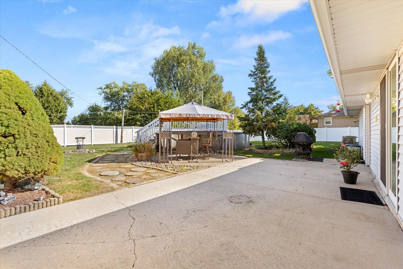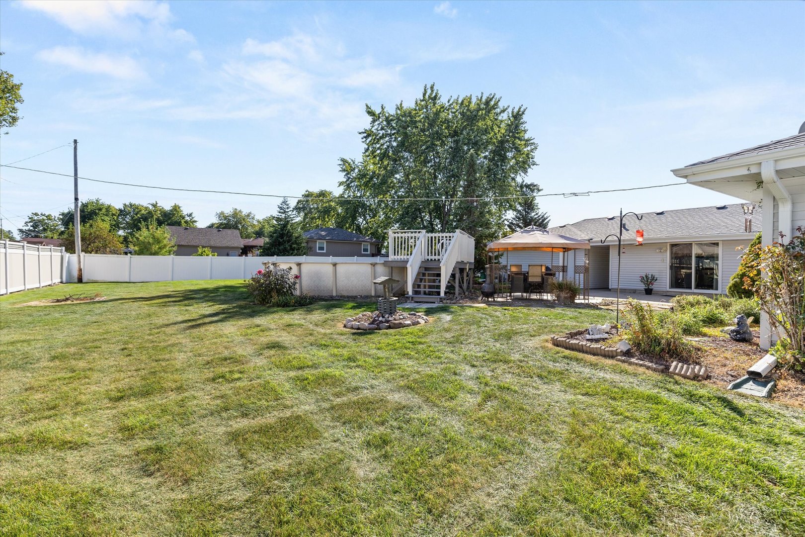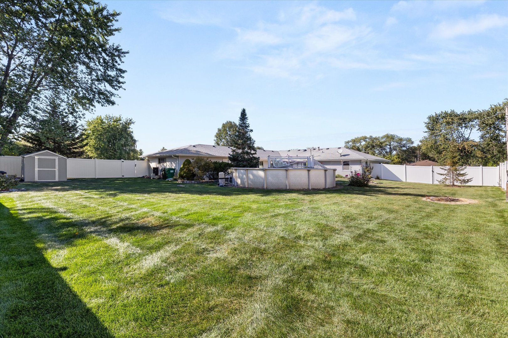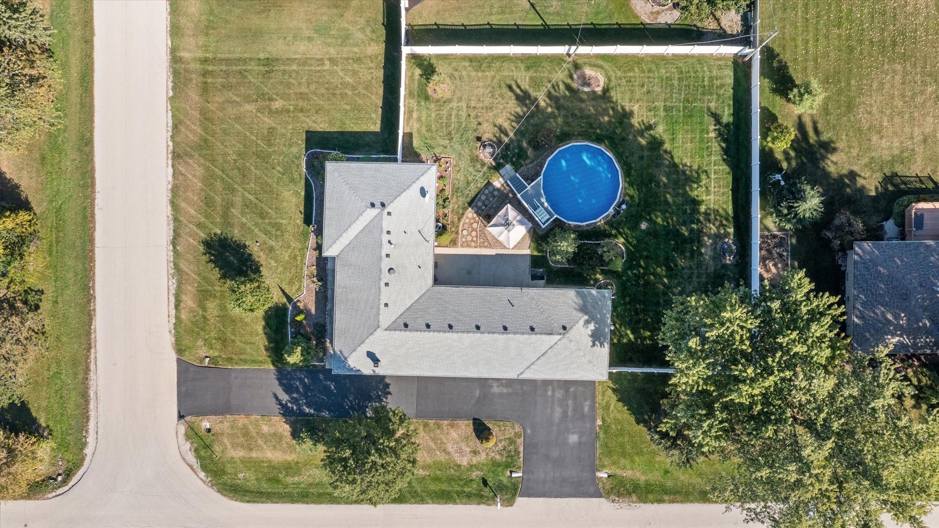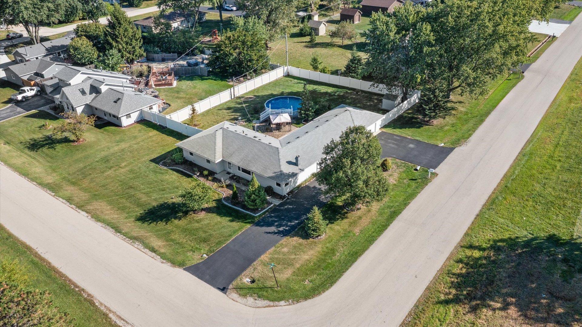 Welcome to your own private sanctuary just minutes from town. This four bedroom, two bath home is situated on an oversized corner lot, with a fenced yard with an above-ground pool, a spacious concrete patio, and a paver patio covered by a pergola-perfect for outdoor entertaining. All pool equipment and the shed stay with the home. The oversized two-car garage features a covered walkway, while the circle driveway provides ample additional parking. Inside, the massive master suite is a true retreat, complete with a private bath, door wall to the outdoors, and its own Space-Pak heating and cooling system. In addition there are three generously sized bedrooms provide plenty of space for family, guests or home office. The light-filled kitchen, dining area, living room and family room with wood burning fireplace offer room to gather and relax. Additional highlights include windows and air conditioning with a transferable warranty, a well-maintained septic system with lift station alarm, and evident pride of ownership throughout. This home is truly move-in ready and waiting for its next chapter.