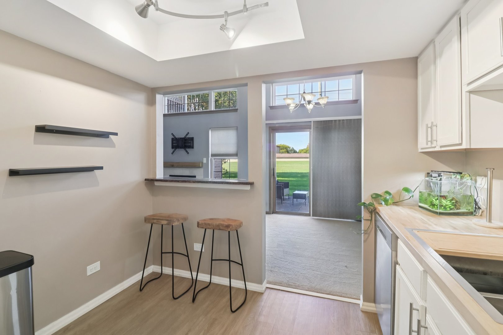 MUST-SEE! Spacious, updated 2-story townhome in a premium, convenient location. Completely Move-in Ready! The dramatic vaulted ceiling in the Great Room is highlighted by a desirable fireplace. The kitchen has been beautifully refinished, now featuring newer appliances and attractive countertops. The dedicated dining area overlooks serene open backyard space. The upper level features an expansive Primary Bedroom, a versatile loft/office space, and a comfortable 2nd bedroom. The full bath includes a practical dual vanity. Excellent location for commuters just minutes from the highway, retail, and dining. Welcome home!