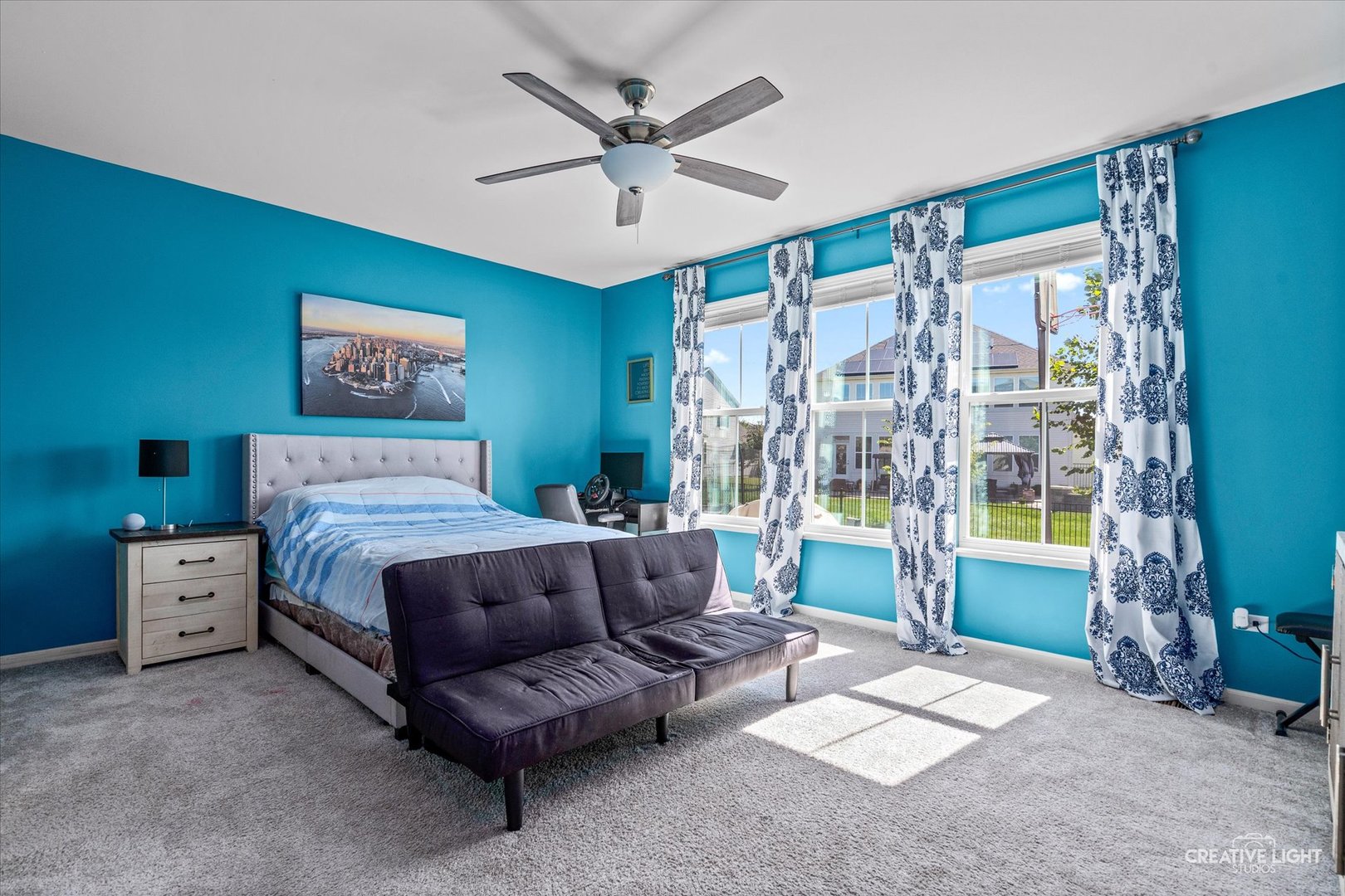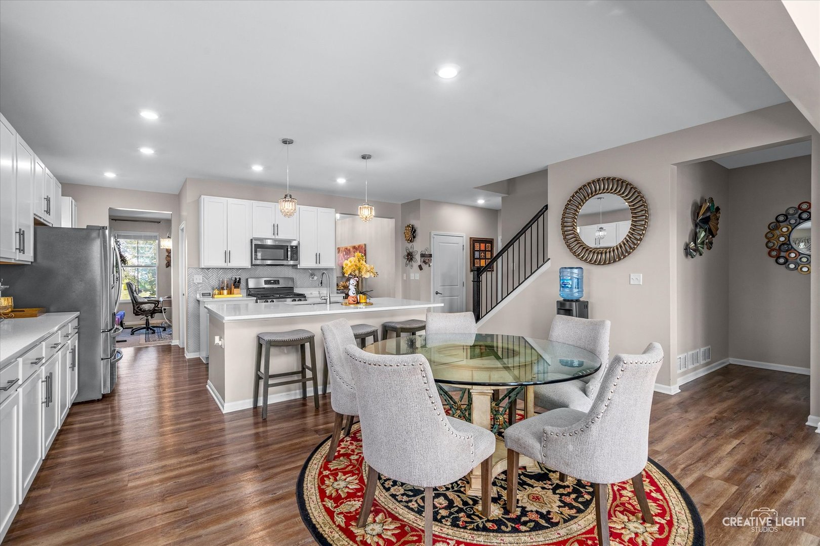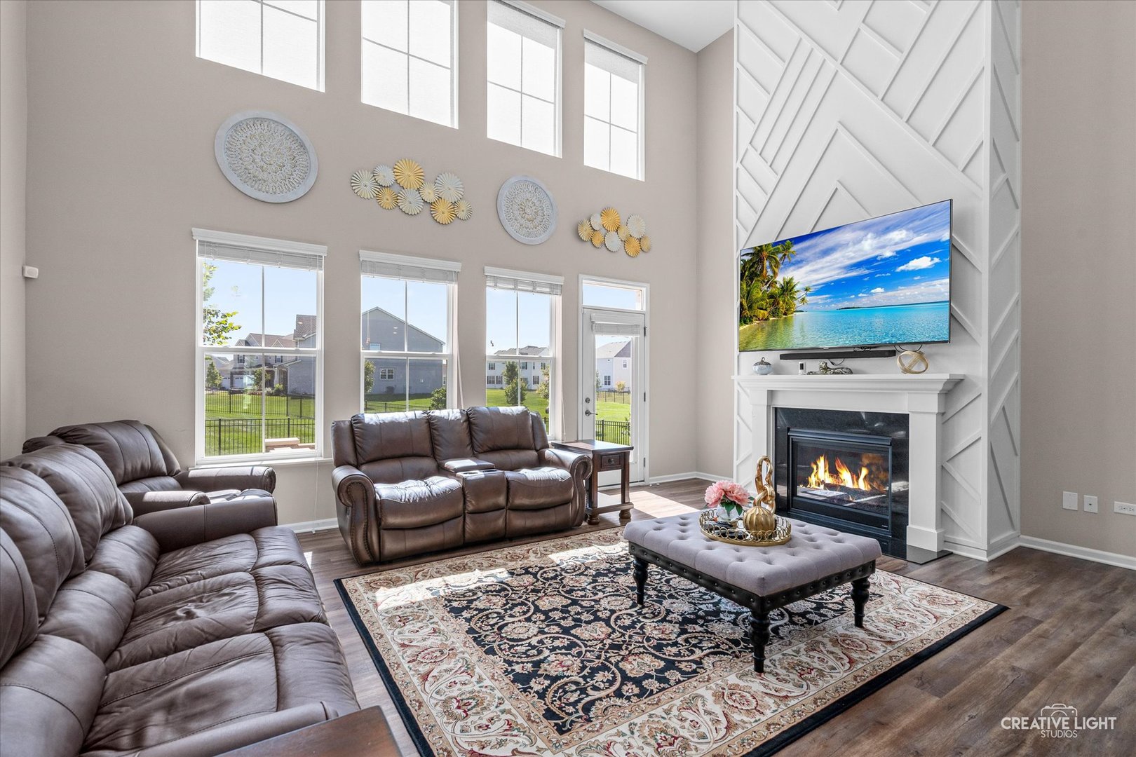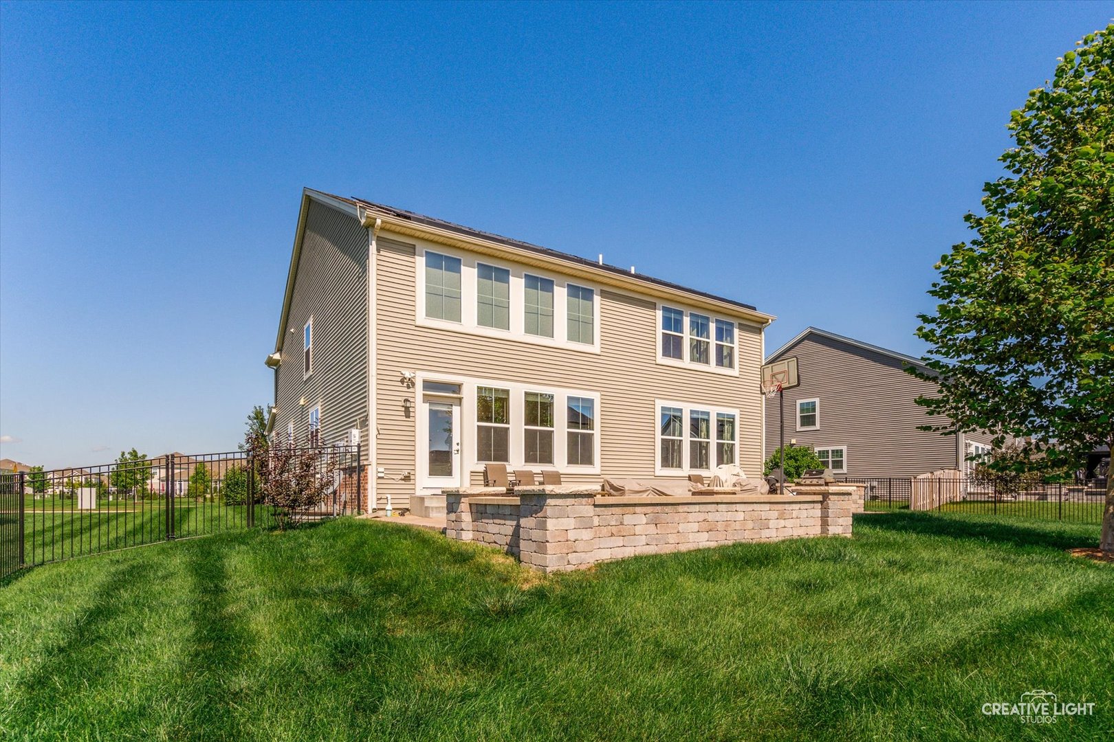 Welcome to desirable Creekside Crossing subdivision. Chefs dream kitchen designed with space, style, and efficiency in mind. This modern kitchen features stunning White Quartz countertops, all stainless-steel appliances, White 42″ Aristokraft cabinets, an oversized island with sink and breakfast bar, a butlers pantry and walk-in pantry! The kitchen also opens to the two-story family room with fireplace surrounded by feature wall. Stunning and versatile dining room off of the foyer. Main level bedroom includes ensuite bath & walk-in closet, ideal for guests and in-laws. Three additional spacious bedrooms on 2nd level. Primary bedroom with large ensuite bath and oversized walk-in closet. Additional bedrooms share Jack and Jill bath. Additional highlights include 9′ ft First floor ceilings, Shaw Vinyl Plank flooring, 30 year Architectural roof shingles. Smart Home features include Ring Video Doorbell Pro. Fenced yard with brick paver patio including seating wall and fire pit. Cost saving solar panels! Plainfield School district with Plainfield North High School. Close to Downtown Plainfield Entertainment and Shopping, Rt 59 corridor and I-55.