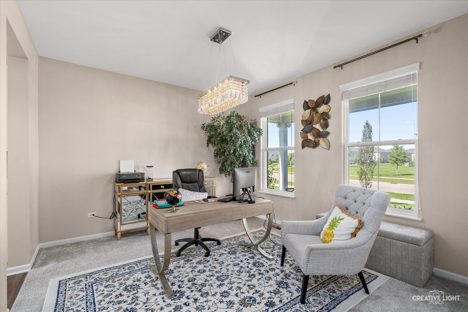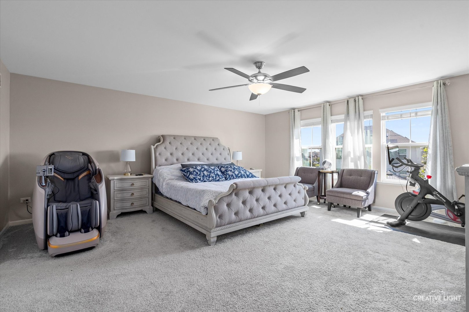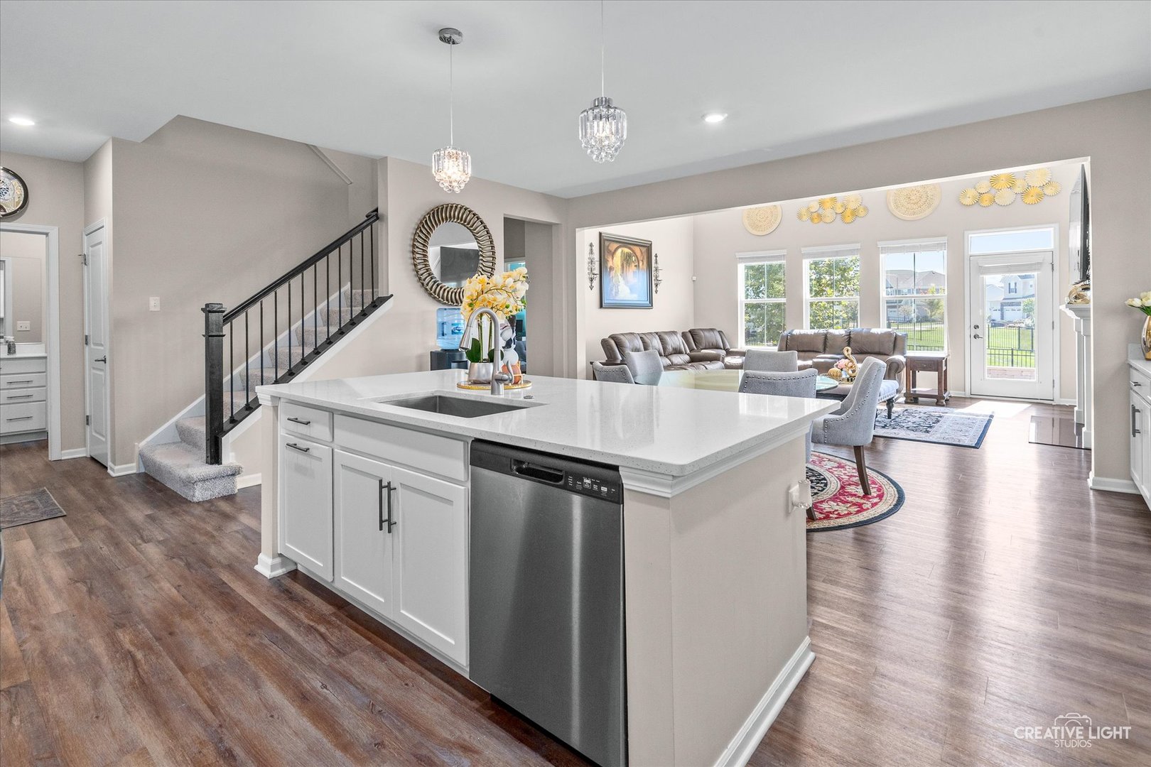 Welcome to desirable Creekside Crossing subdivision. Chefs dream kitchen designed with space, style, and efficiency in mind. This modern kitchen features stunning White Quartz countertops, all stainless-steel appliances, White 42″ Aristokraft cabinets, an oversized island with sink and breakfast bar, a butlers pantry and walk-in pantry! The kitchen also opens to the two-story family room with fireplace surrounded by feature wall. Stunning and versatile dining room off of the foyer. Main level bedroom includes ensuite bath & walk-in closet, ideal for guests and in-laws. Three additional spacious bedrooms on 2nd level. Primary bedroom with large ensuite bath and oversized walk-in closet. Additional bedrooms share Jack and Jill bath. Additional highlights include 9′ ft First floor ceilings, Shaw Vinyl Plank flooring, 30 year Architectural roof shingles. Smart Home features include Ring Video Doorbell Pro. Fenced yard with brick paver patio including seating wall and fire pit. Cost saving solar panels! Plainfield School district with Plainfield North High School. Close to Downtown Plainfield Entertainment and Shopping, Rt 59 corridor and I-55.
