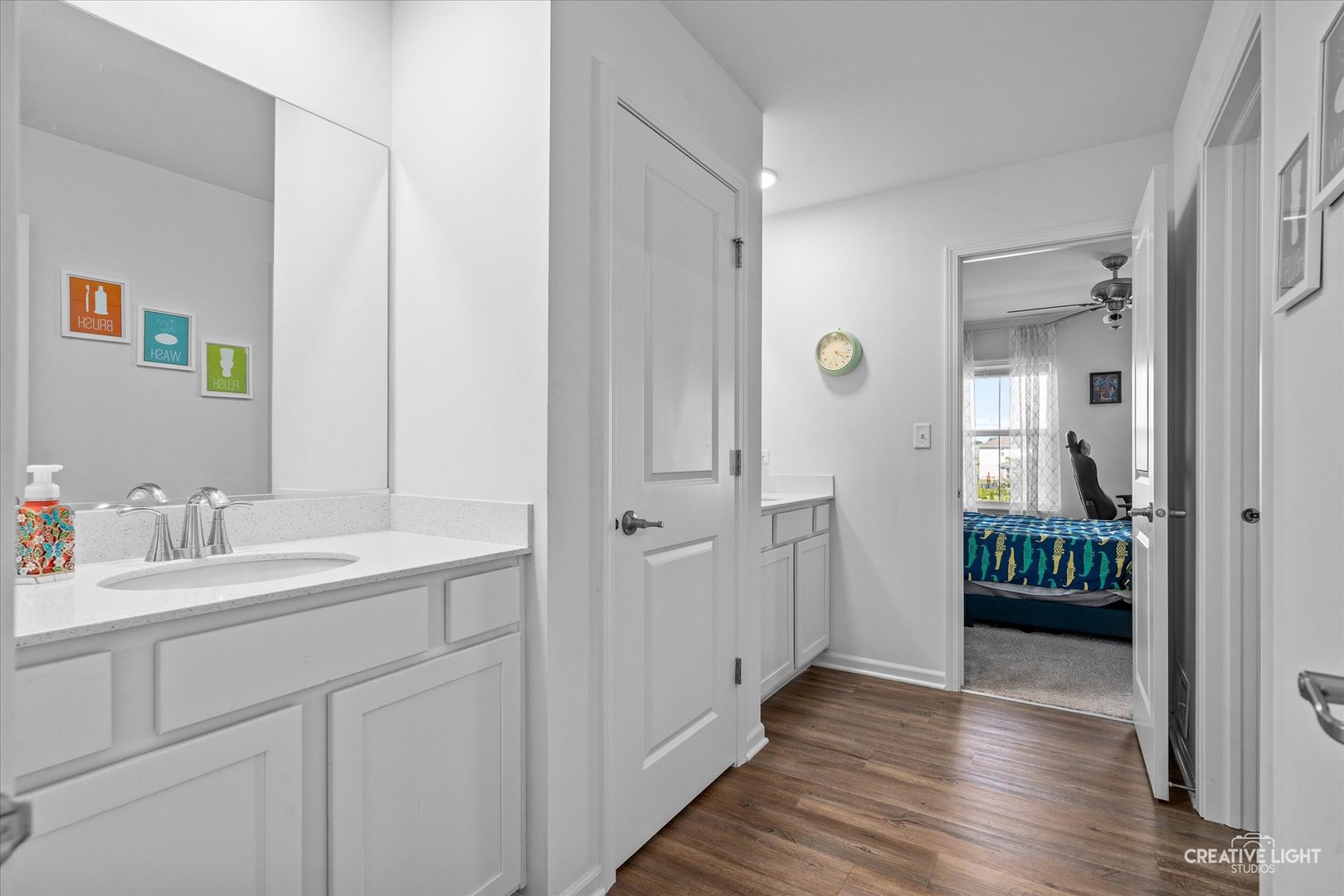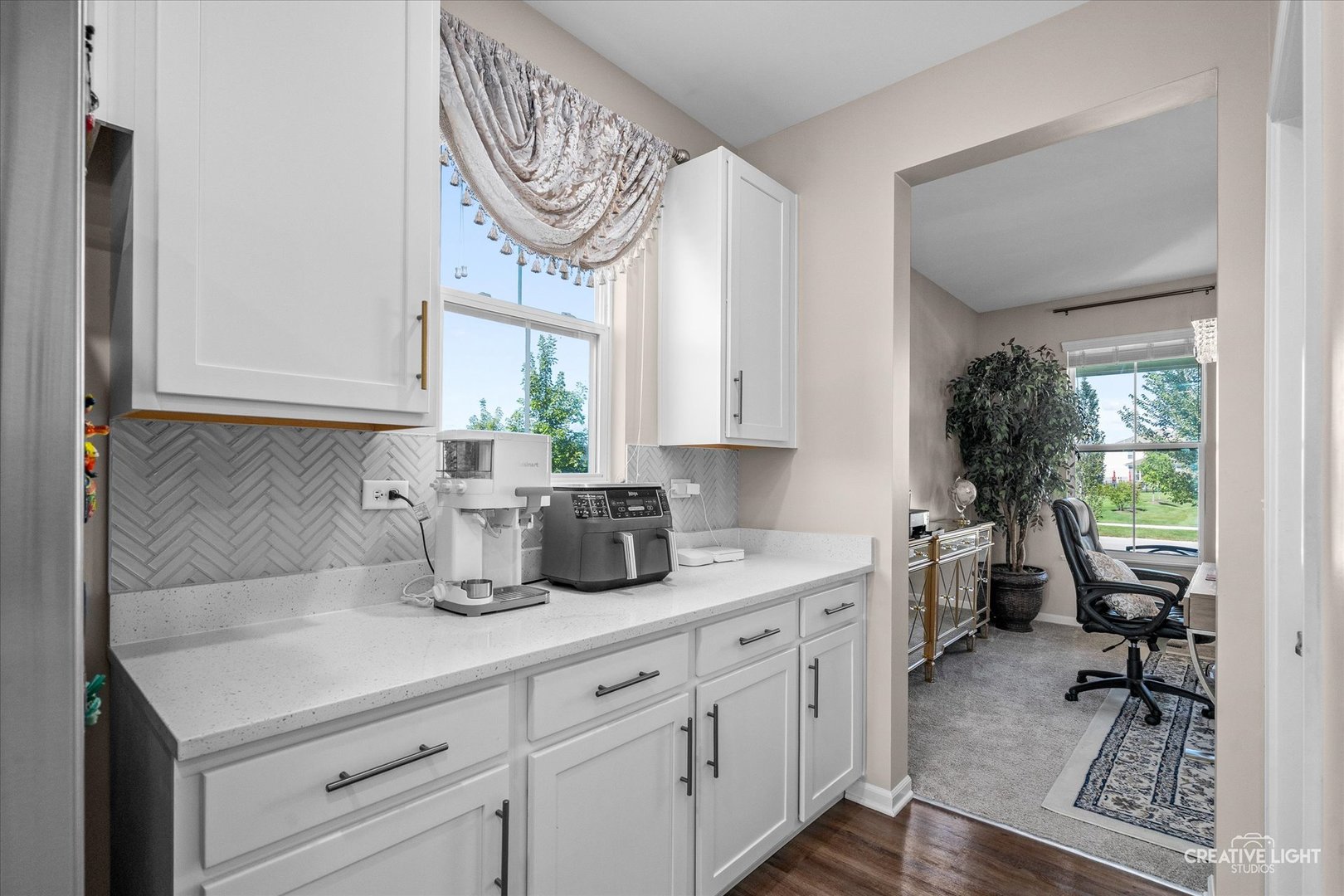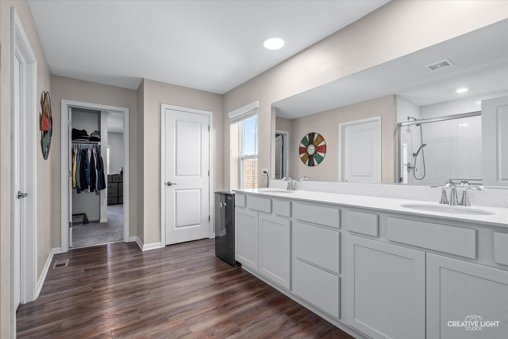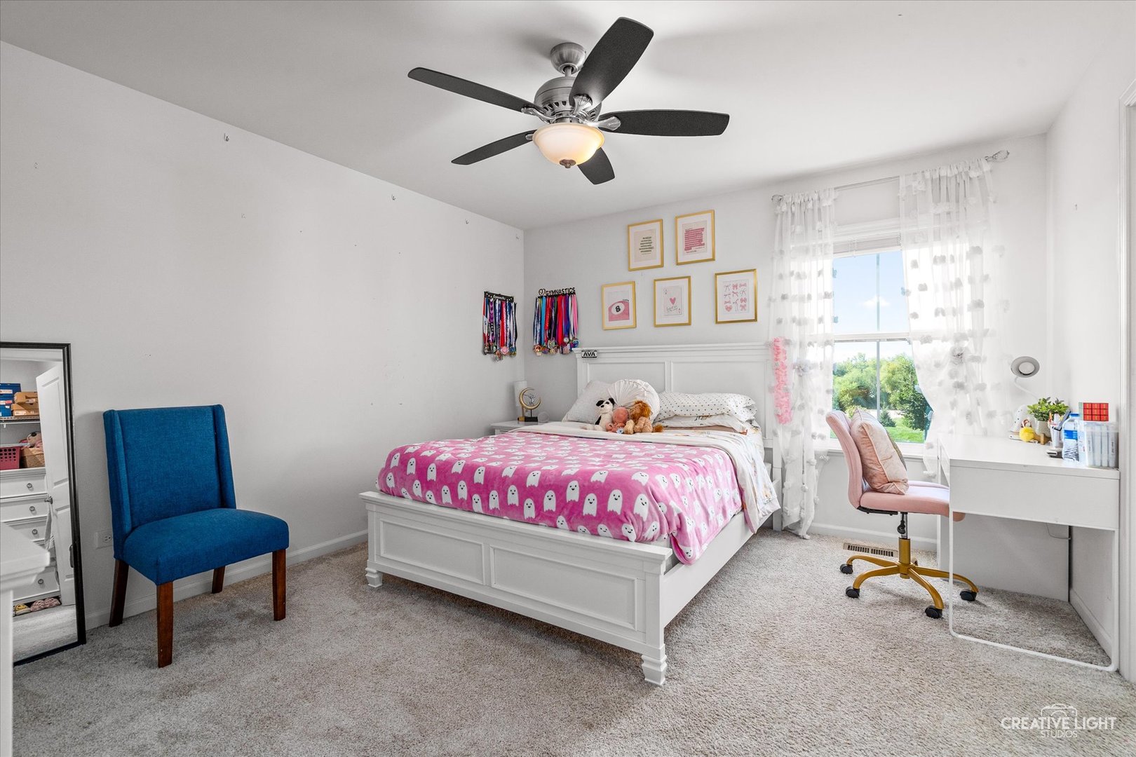 Welcome to desirable Creekside Crossing subdivision. Chefs dream kitchen designed with space, style, and efficiency in mind. This modern kitchen features stunning White Quartz countertops, all stainless-steel appliances, White 42″ Aristokraft cabinets, an oversized island with sink and breakfast bar, a butlers pantry and walk-in pantry! The kitchen also opens to the two-story family room with fireplace surrounded by feature wall. Stunning and versatile dining room off of the foyer. Main level bedroom includes ensuite bath & walk-in closet, ideal for guests and in-laws. Three additional spacious bedrooms on 2nd level. Primary bedroom with large ensuite bath and oversized walk-in closet. Additional bedrooms share Jack and Jill bath. Additional highlights include 9′ ft First floor ceilings, Shaw Vinyl Plank flooring, 30 year Architectural roof shingles. Smart Home features include Ring Video Doorbell Pro. Fenced yard with brick paver patio including seating wall and fire pit. Cost saving solar panels! Plainfield School district with Plainfield North High School. Close to Downtown Plainfield Entertainment and Shopping, Rt 59 corridor and I-55.