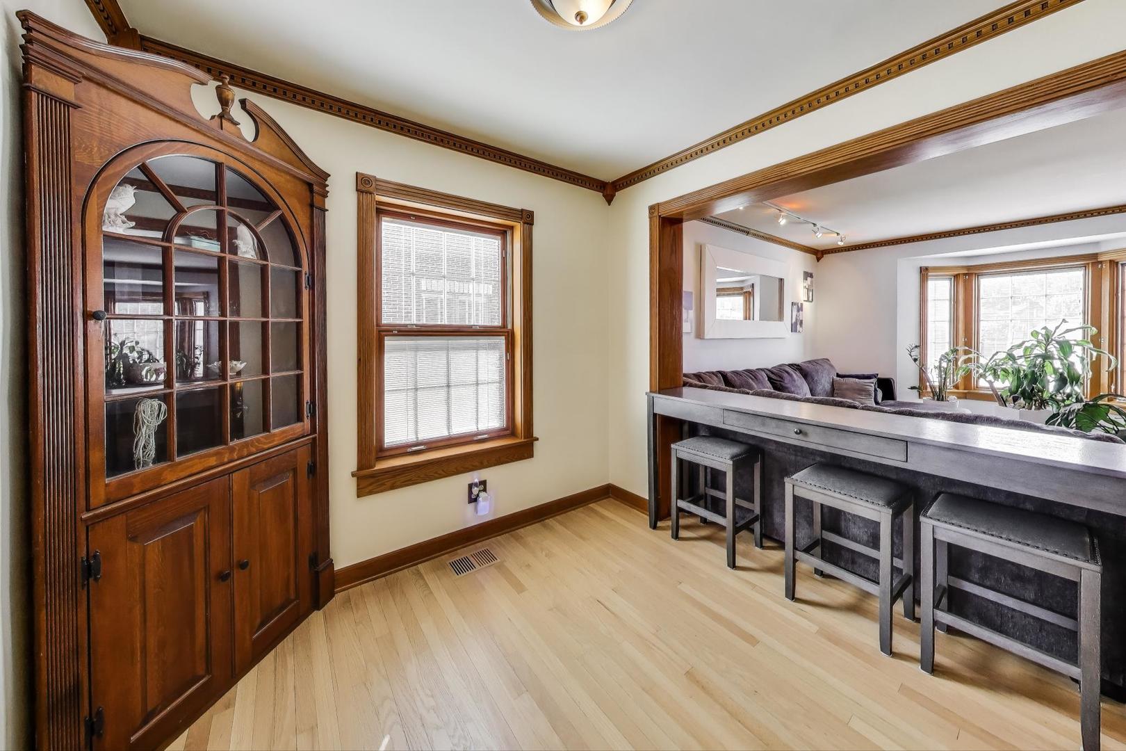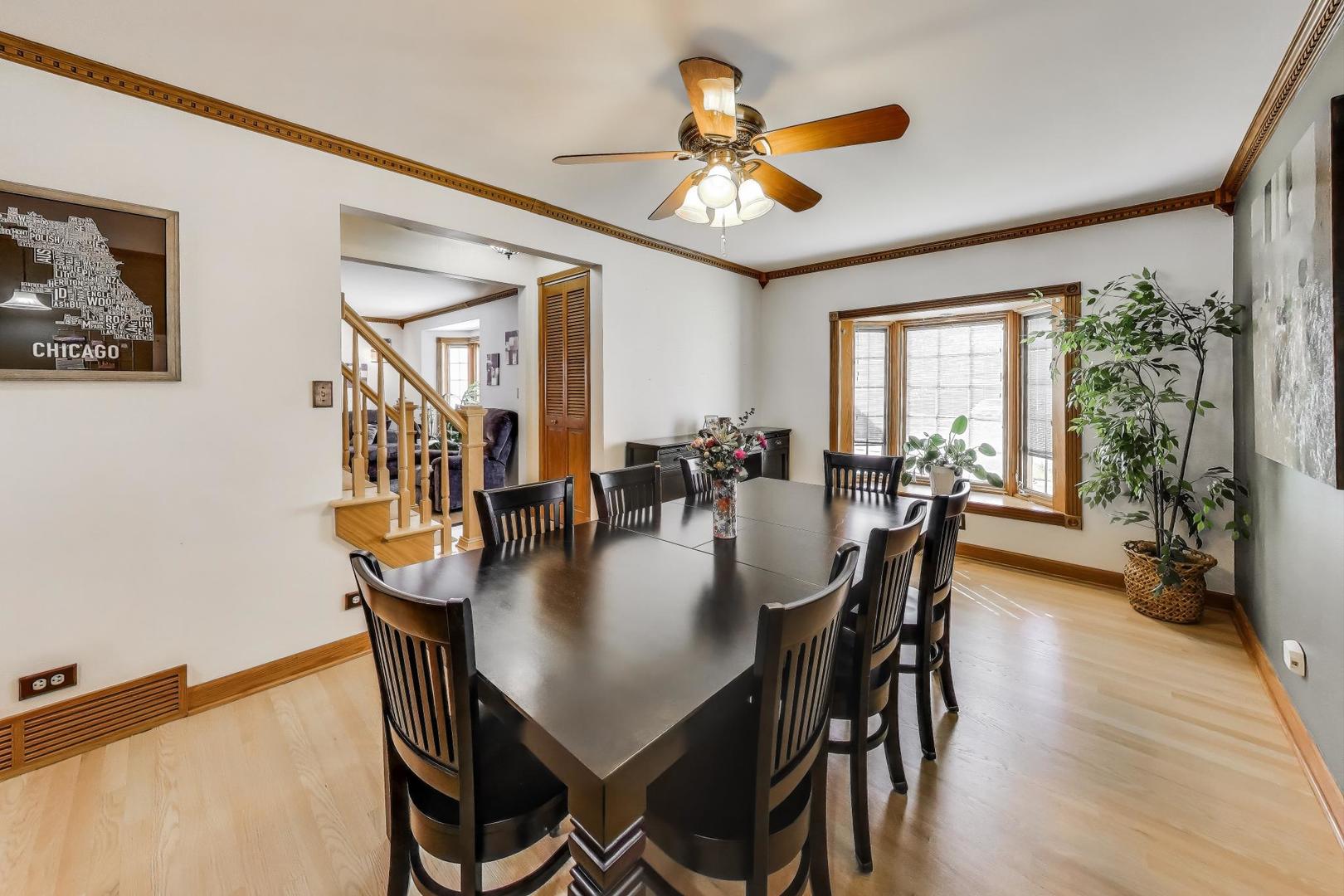 Welcome to this charming three-bedroom, two-bathroom home in South Park Ridge! This character-filled 2,400 square-foot residence features warm hardwood floors throughout. The main level includes a family room, a dining room with a wine fridge, a sitting room or office with a fireplace, a full bathroom, and the kitchen. The spacious kitchen offers a seamless design of panel covered appliances, abundant counter space, and a pantry. It opens directly onto a covered deck, patio, and a beautifully manicured backyard with a detached 2.5-car garage. Upstairs, you will find all three bedrooms, a large shared bathroom, and an attached bonus room off the primary suite-perfect for a sitting area, office, or nursery. The large finished basement offers a recreation room, laundry room, and plenty of storage. Fantastic location, just minutes from excellent schools, Uptown Park Ridge, and Edison Park. Commuters will appreciate the easy access to the CTA Blue Line, the 90/294 expressways, and O’Hare Airport. Home is being sold AS-IS.