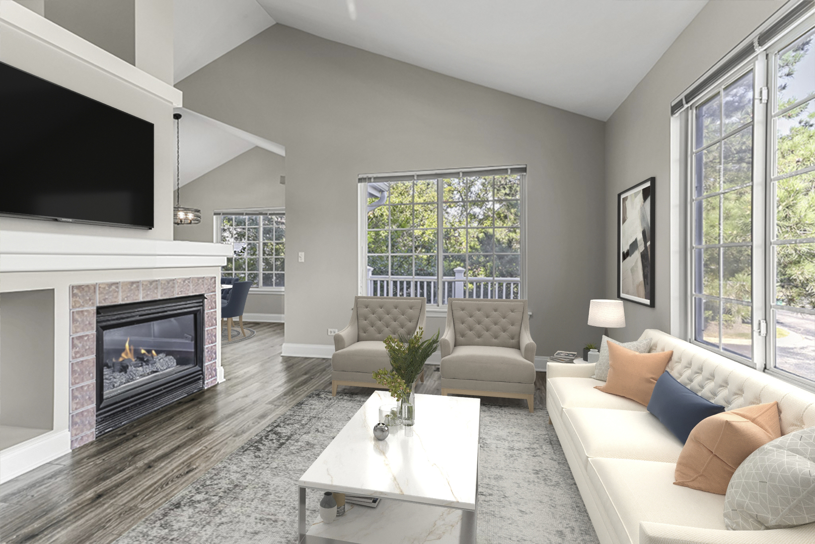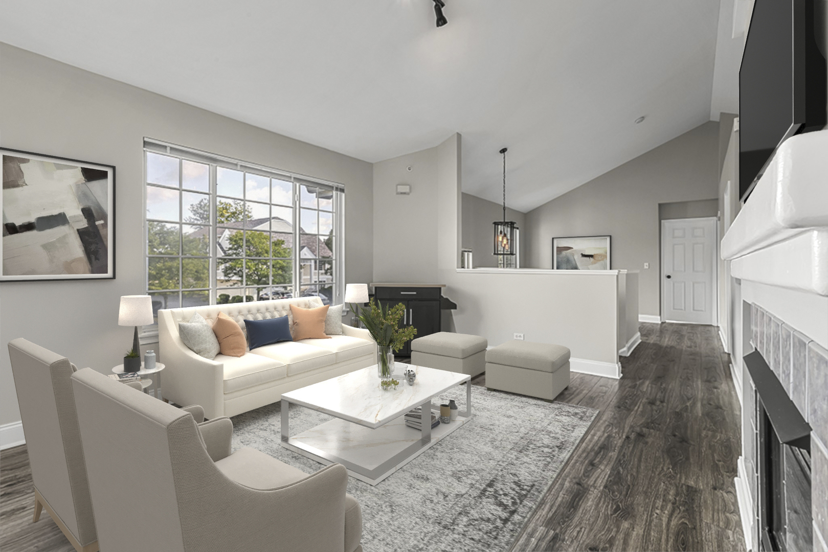 Beautiful end-unit offers 2 bedrooms, 2 full baths, and a versatile loft that can easily be converted into a third bedroom or home office. Step inside to discover an inviting, well-designed layout with vaulted ceilings that bathe the living spaces in natural light. The cozy living room features a gas-log fireplace-perfect for relaxing evenings at home. The eat-in kitchen is appointed with 42″ oak cabinetry offering both style and functionality. Hard-surfaced vinyl laminate flooring flows throughout the main level, while the generous loft offers flexible space to suit your lifestyle needs. The lower level includes a finished family room-ideal for entertainment, a play area, or additional storage. Retreat to the serene master suite featuring its own full bath, while the second spacious bedroom enjoys its own full UPDATED bathroom as well. Laundry is conveniently located within the unit, and a brand-new balcony invites you to enjoy warm-weather evenings-all complemented by central air for year-round comfort. Outside, the property includes an attached two-car garage with opener and owned driveway access for your ease and convenience. As an end unit, it affords added privacy and abundant natural light-plus low maintenance living with a $557/month HOA covering common insurance, lawn care, snow removal, and exterior maintenance. Located in the well-regarded Wheeling School District, residents benefit from assigned schools including Robert Frost Elementary, Oliver W. Holmes Middle, and Wheeling High School. The home enjoys a superb location close to major expressways, Metra train access, shopping, dining, and scenic bike trails for recreation. This home is perfect for anyone seeking comfort, convenience, and flexibility in a tranquil, community-oriented neighborhood. Schedule your showing today. Wonderful offering in this price point! ROOF (2023), Bathrooms (2021), AC (2020), Furnace (2019). Available for immediate occupancy!