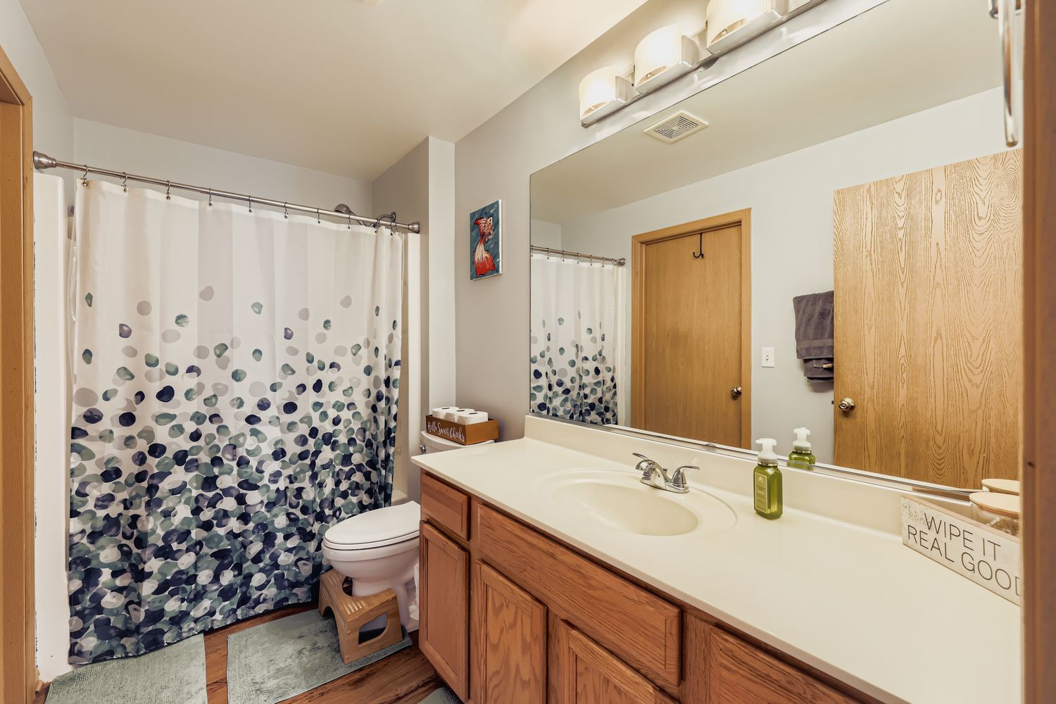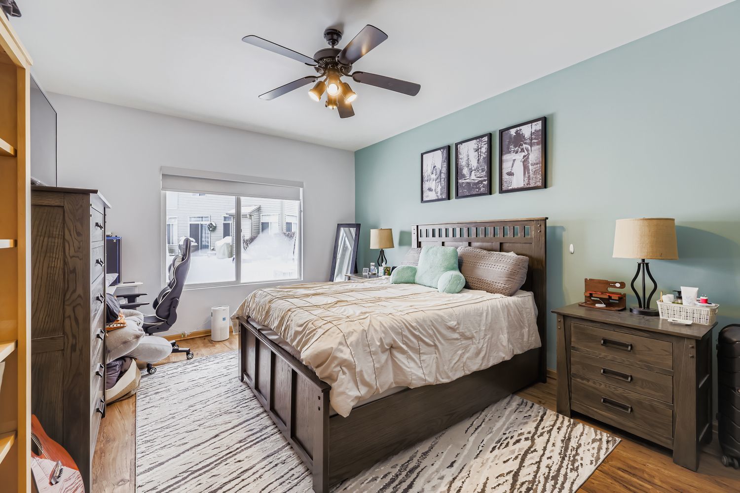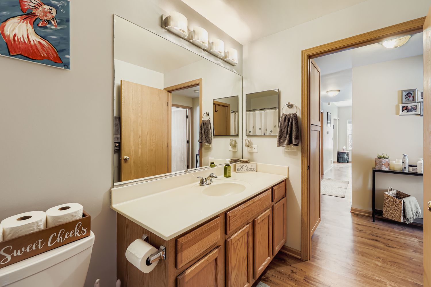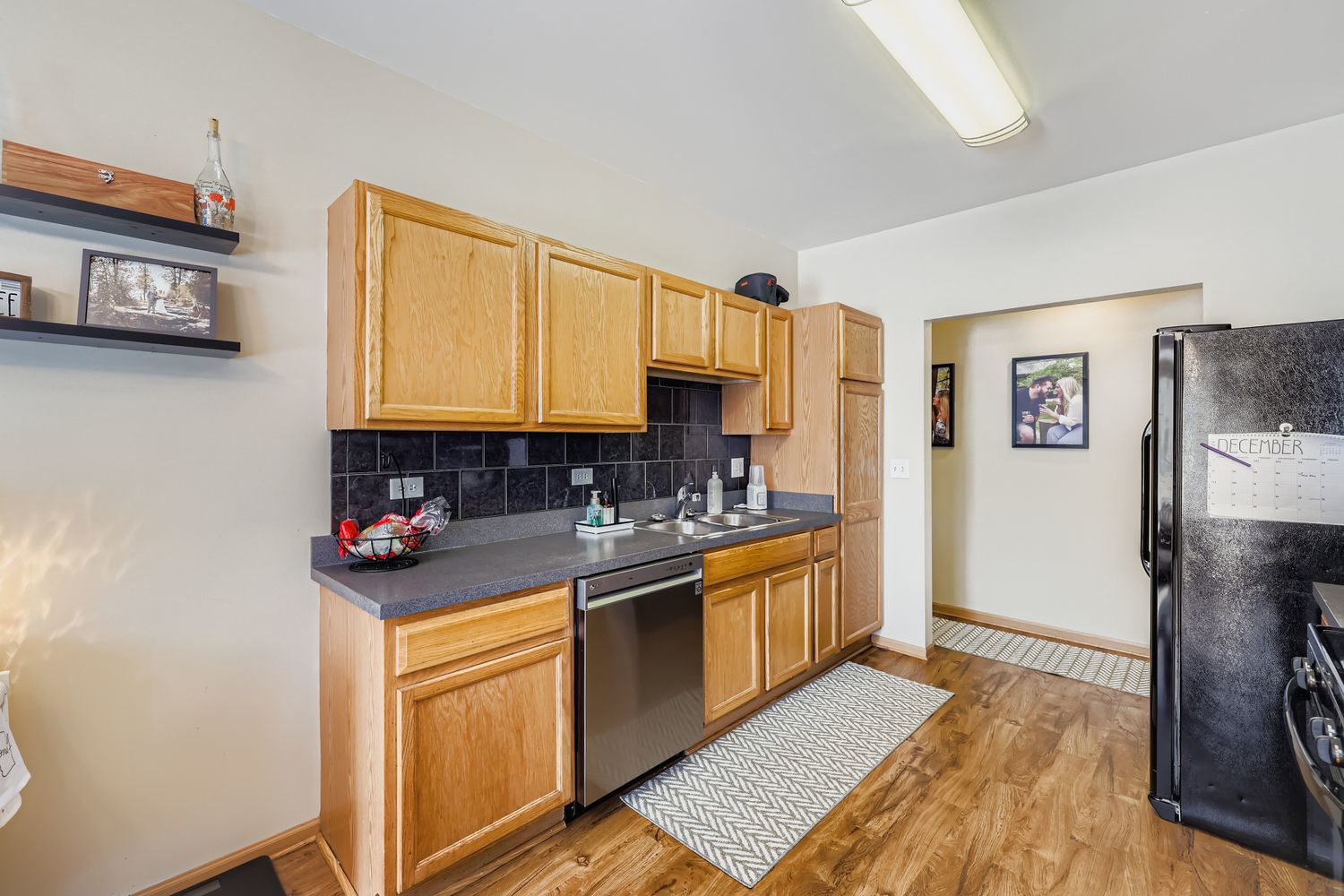 Immaculate and completely turn key! This ground-level, end-unit ranch condo with an abundance of natural light, neutral decor, and pristine maintenance is the greatest holiday gift to hit the market. The private entryway leads right into the sunlit family room, with floor to ceiling tile surround electric fireplace (gas line capped and available for future use), conveniently prepped TV mount with hidden cables, and beautiful vinyl plank wood flooring. The eat-in kitchen has a slider door to the private covered patio, oak cabinetry, tile backsplash, and newer appliances. Both spacious bedrooms have wonderful closet storage, and the primary bedroom has access to the full bathroom with an oversized vanity and mirror, and tub/shower combo. Main floor, dedicated laundry room equipped with newer washer and dryer, mechanical storage, and built in shelving. Freshly painted walls and ceilings throughout. Finished 2 car garage with LED lighting, new electric outlets, shelving and storage solutions, attic floorboard installation for additional storage space, mounted TV, and bug zapper to enjoy cozy gatherings with neighbors and friends throughout the year. Newer vinyl plank flooring throughout 2020/primary bedroom 2024, roof 2020, siding 2020, furnace 2021, water heater 2022, dishwasher 2022, blinds 2022, fireplace insert 2023. Not a thing to do but unpack! Truly a masterpiece of homeowner pride.
