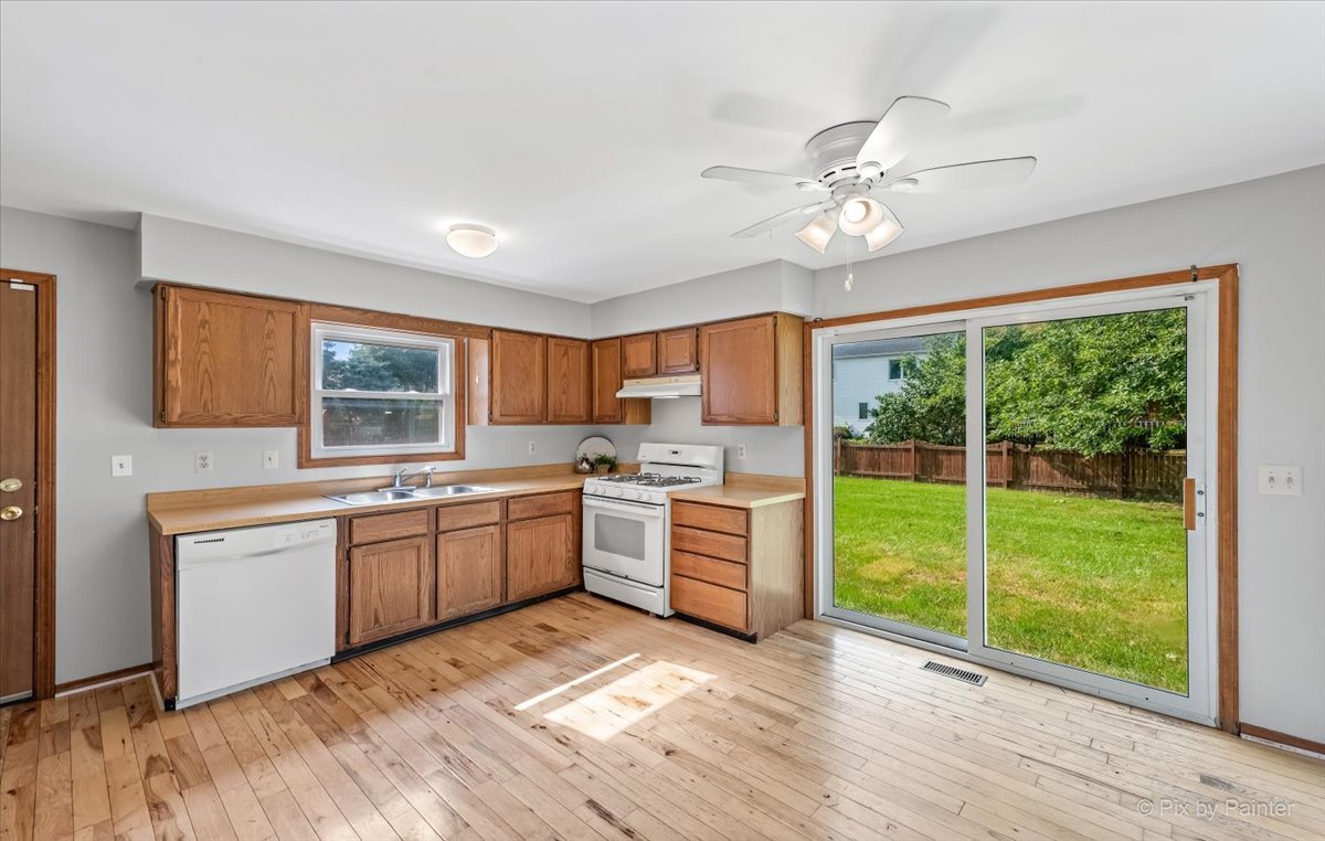 BRIGHT & SPACIOUS 2 STORY CAPE COD LOCATED IN DESIRABLE CAMBRIDGE EAST SUBDIVISION ~ IF YOU’RE LOOKING FOR A FIRST FLOOR BEDROOM + A FULL BATHROOM… YOU’VE FOUND IT HERE! INVITING LIVING ROOM OFFERS A PICTURE WINDOW, HARDWOOD FLOORING, OAK RAIL STAIRCASE ~ LARGE EAT-IN KITCHEN WITH PLENTY OF CABINET SPACE, DOUBLE SINK WITH WINDOW ABOVE, HARDWOOD FLOORING, ROOM FOR A KITCHEN TABLE + A SLIDING GLASS DOOR TO A LARGE FENCED YARD THAT IS PERFECT FOR ENTERTAINING ~ 1ST FLOOR MASTER BEDROOM WITH DOUBLE CLOSETS + ADJACENT FULL BATHROOM ~ VERSATILE 2ND FIRST BEDROOM COULD BE USED AS A HOME OFFICE OR PLAYROOM, 3RD AND 4TH BEDROOMS ON THE 2ND FLOOR WITH BRIGHT WINDOWS, CEILING FANS, GENEROUS CLOSET SPACE, AND FULL ADJACENT BATHROOM ~ FULL FINISHED BASEMENT OFFERS A LARGE REC ROOM AND HUGE STORAGE ROOM THAT COULD BE FINISHED INTO ADDITIONAL LIVING SPACE ~ WASHER AND DRYER INCLUDED. ATTACHED 2-1/2 CAR GARAGE WITH A SERVICE DOOR TO THE BACKYARD. CONVENIENT LOCATION CENTRALLY LOCATED BETWEEN DOWNTOWN ST. CHARLES & GENEVA, 1 MILE TO THE FOX RIVER, TRAIL + SO CLOSE TO AWARD-WINNING ST. CHARLES SCHOOLS, SHOPPING, DINING, KIRK RD, I-88, METRA STATION, AND DUPAGE AIRPORT. RECENT IMPROVEMENTS INCLUDE: CARPET & PAINT 2021, HARDWOOD FLOOR, 2011, ROOF & SIDING NEW IN 2016, WINDOWS & SGD 2013, HOT WATER HEATER 2019, TOILETS 2015, FURNACE, A/C, WATER SOFTENER, SUMP PUMP APPROX 2007 + THE HOME HAS AN ACTIVE RADON MITIGATION SYSTEM.