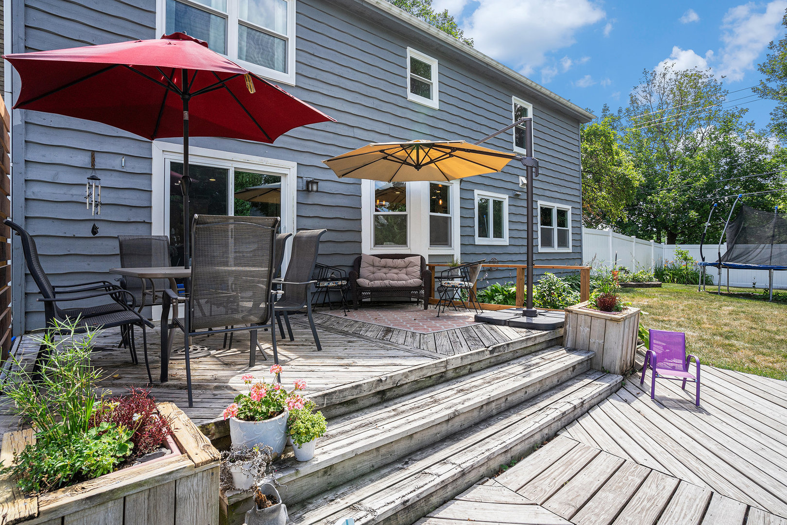 Welcome to 1614 185th St. – a gorgeous 4 bedroom, 2 full bath, and 2 half bath home that blends charm, comfort, and thoughtful updates throughout. BRAND new vinyl windows! From the moment you arrive, you’ll be drawn in by the striking curb appeal, highlighted by beautiful cedar siding and a spacious covered front porch. Step inside to find gleaming hardwood floors that flow through the generous living and dining rooms. The heart of the home is the open-concept, eat-in kitchen-completely remodeled in 2019-which overlooks a cozy family room with fireplace. Throughout the home, you’ll find new interior and exterior doors, adding a fresh and polished touch to every room. A convenient mudroom/laundry room on the main floor leads directly to the attached 2-car garage, making everyday living a breeze. Upstairs, all four bedrooms are spacious, including the stunning primary suite with soaring cathedral ceilings, abundant natural light, a walk-in closet, and private bath. The finished basement adds even more living space, perfect for a home office, rec room, or guest suite, complete with a powder room and a large storage area. Enjoy peace of mind with a brand new HVAC system, newer tankless water heater, and a fully fenced backyard featuring a large deck-ideal for entertaining or relaxing. As a bonus, there’s an irrigation system to ensure thriving crops for your garden. This is a truly move-in ready home with timeless features and modern comfort!
