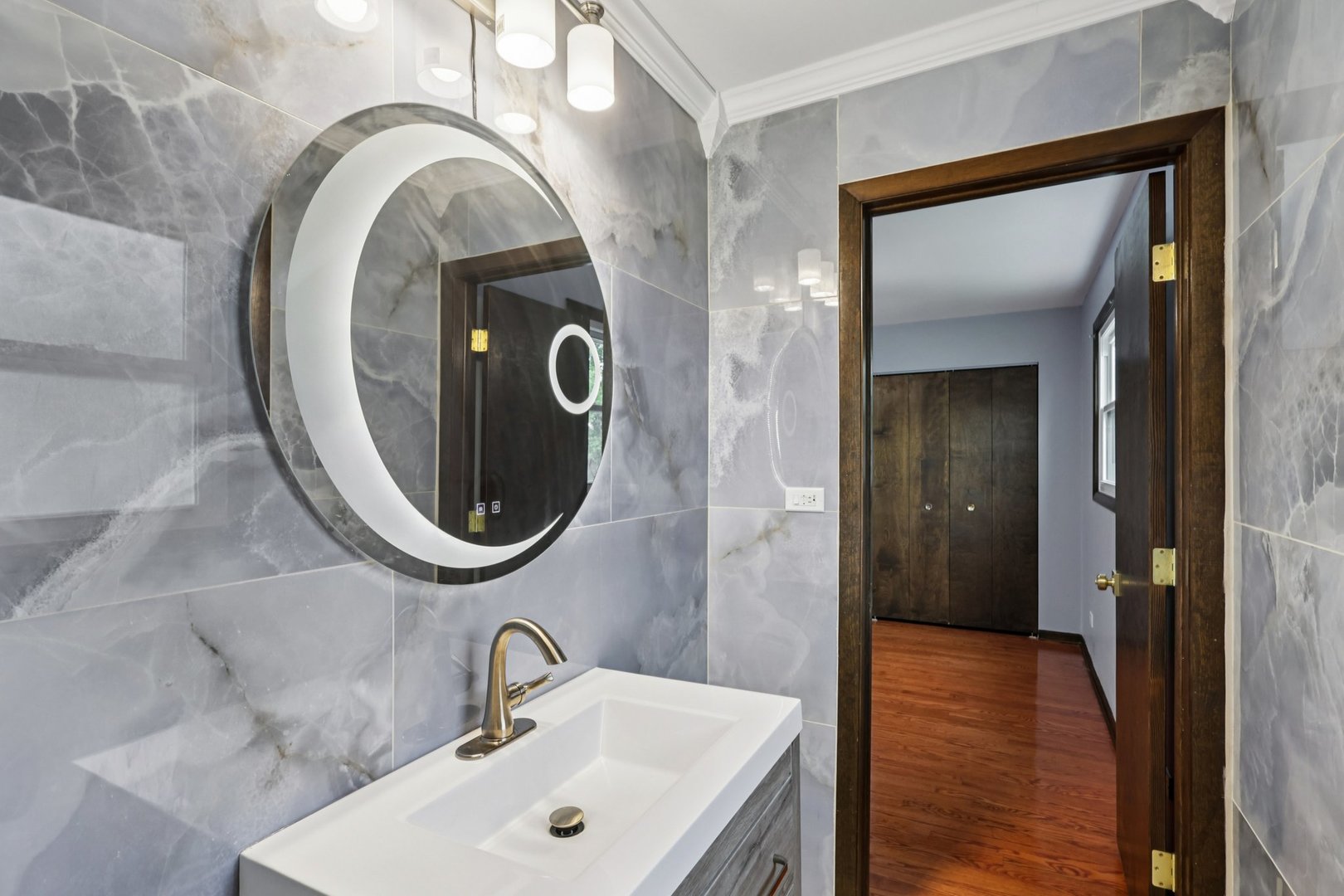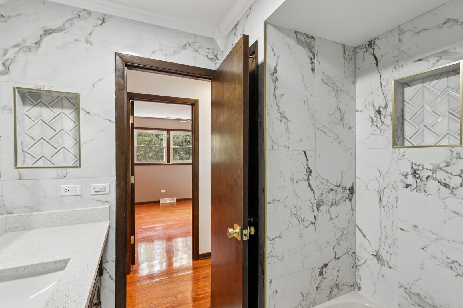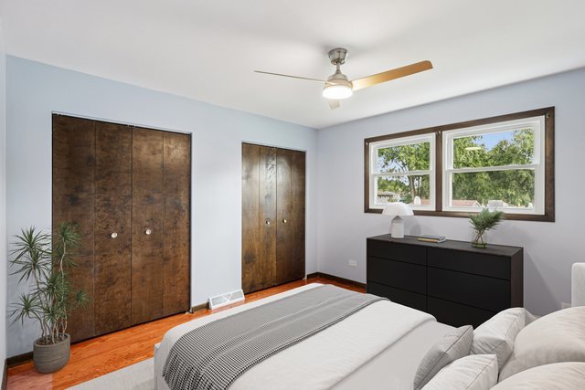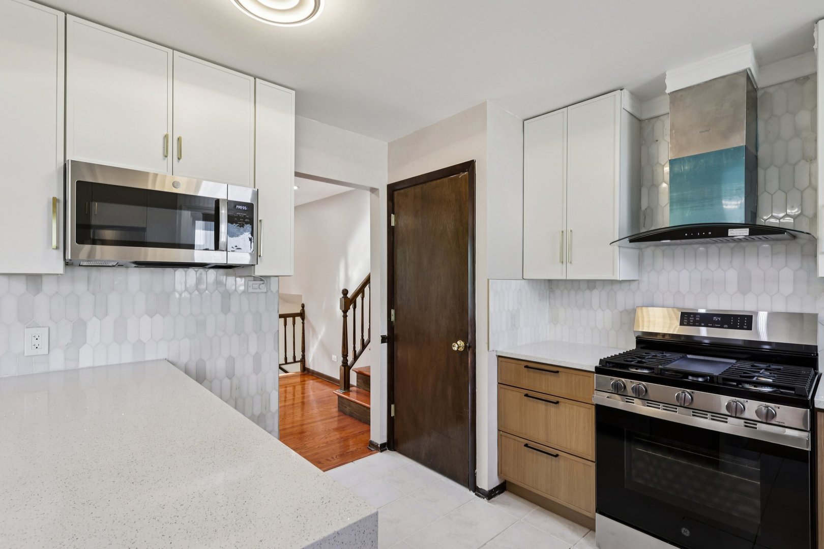 Move right in and enjoy this beautifully updated home in school district 230 just blocks away from Veteren’s Park. Welcome to the all new kitchen cabinets, stainless steel appliances with a quartz waterfall on the peninsula. The bathrooms have new vanities, mirrors and modern lighting. Everyone’s favorite, the hardwood floors have all been refinished and there is new luxury vinyl plank flooring in the lowest level. New lights on every level. Plus you have all new windows (2025) to enjoy the view of your yard and neighborhood. This smart renovation didn’t stop inside. In this home, enjoy the security of knowing you have all new roof,gutters, soffit, facia, and a restored garage with a new roof, door and openers. This house blends curb appeal with peace of mind. It is ready to move in and make it your Home!