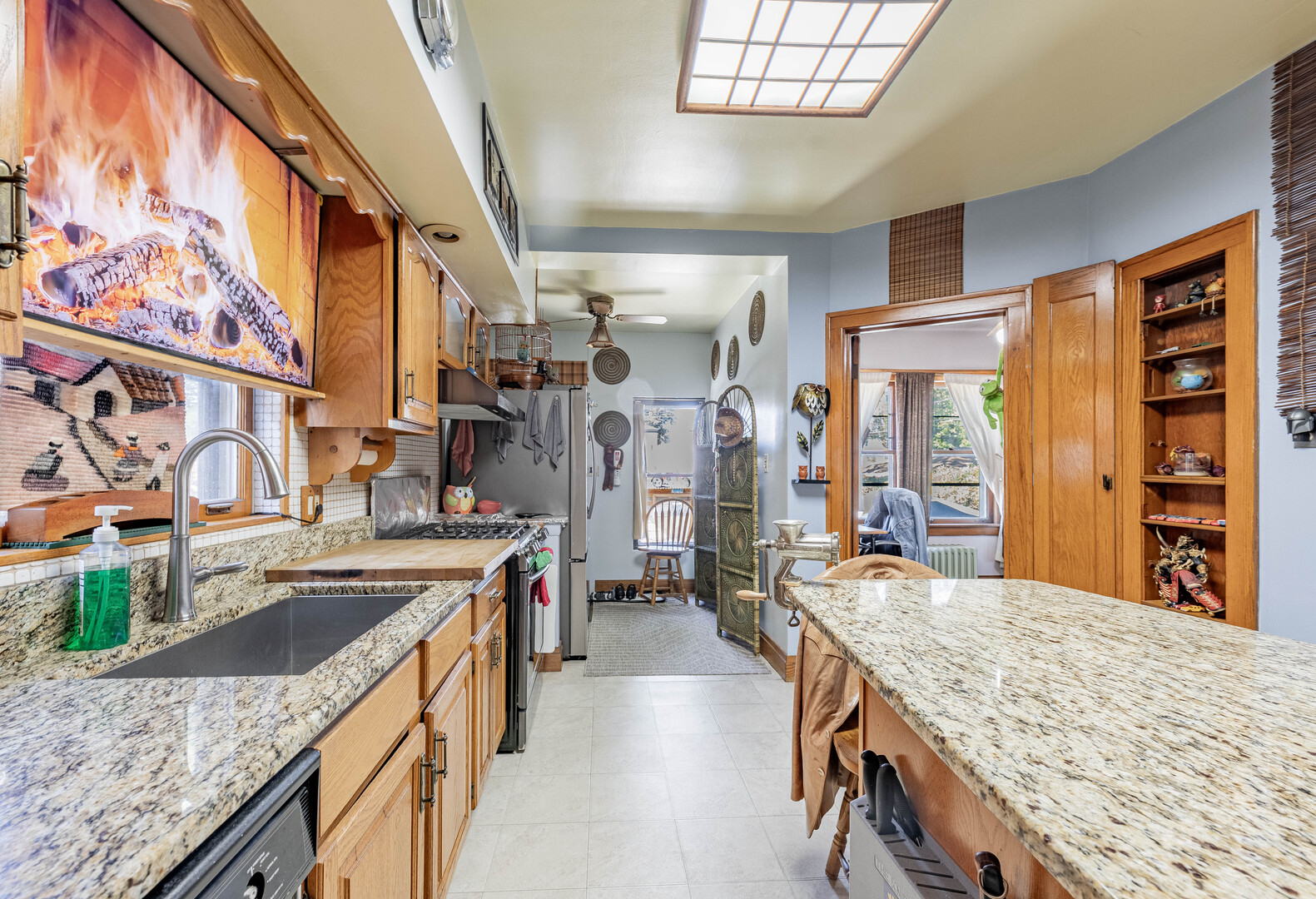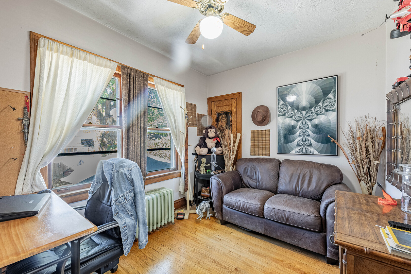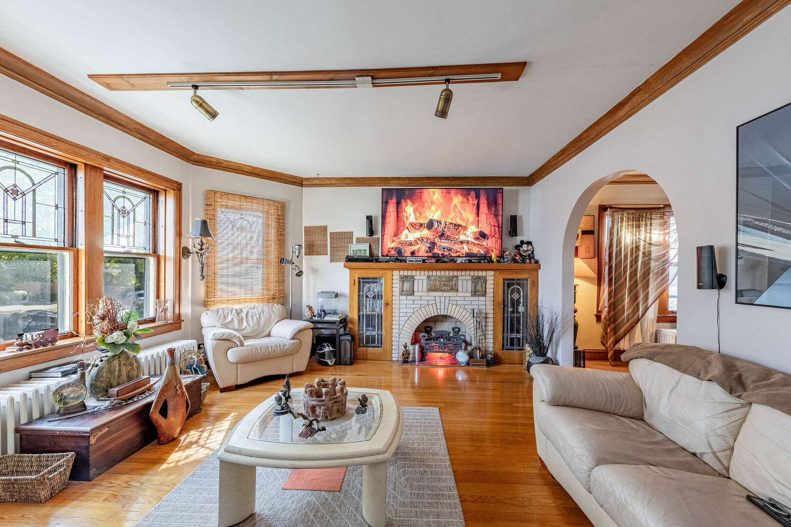 This beautifully maintained home is completely move-in ready – all furniture and decor are included, making it truly turn-key from day one. Step inside to find a warm and inviting living space filled with natural light, original hardwood floors, decorative fireplace and charming art glass windows that give this home timeless character. The large kitchen has granite countertops and a large pantry for all your cooking enjoyment. The 2nd floor master bedroom includes a full, private bathroom and walk-in closet plus additional closet for additional storage. In the basement, you’ll find 2 extra rooms that can be used as a family room, bedroom or home office, plus a work room. The possibilities are endless. Outside, enjoy a well-kept yard and patio perfect for gatherings or quiet evenings. Next to the 2-car garage, are 2 additional parking spaces. Don’t miss the opportunity to make this your home!
