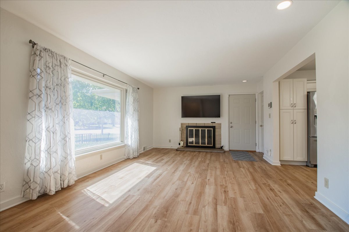 All-brick ranch on a desirable corner lot! This beautifully maintained home features a spacious open floor plan with wood laminate flooring throughout most of the main floor and a cozy fireplace. The updated kitchen offers a center island with an overhang for bar stools, stainless steel appliances, backsplash, built in pantry and a modern chandelier, perfect for preparing meals and entertaining. Three bedrooms and two full baths provide comfortable living, while the full basement offers endless possibilities for storage or finishing. Enjoy outdoor living with a patio and large yard ready to for your gardening ideas, plus the convenience of a 2-car garage. Conveniently located near St. Joseph Hospital and Joliet West High School. A wonderful home inside and out! In great condition, but being sold “AS IS’.