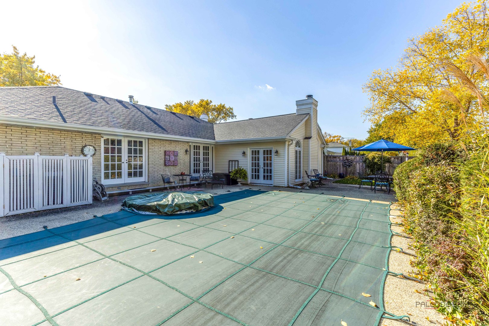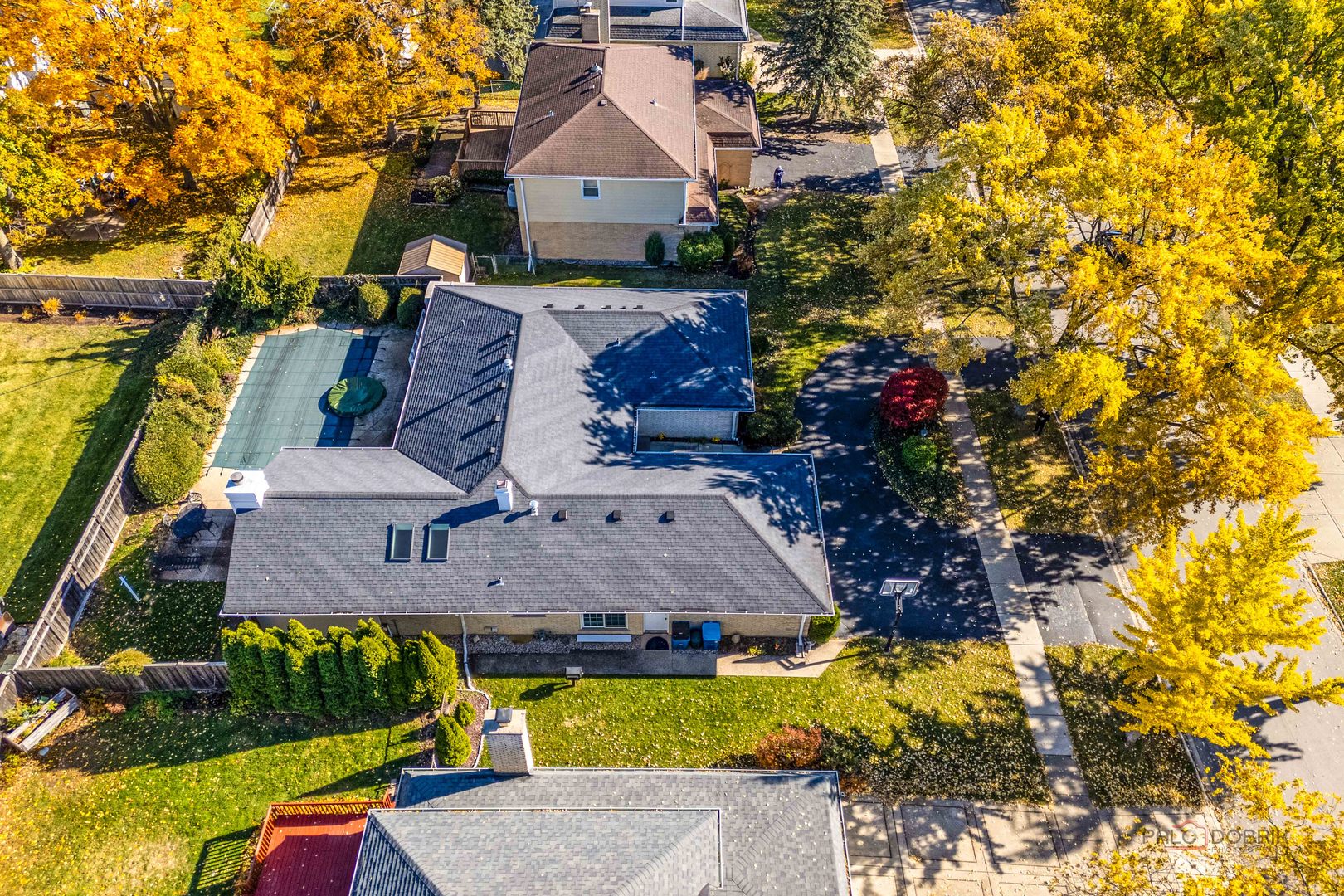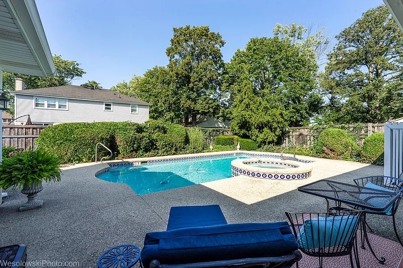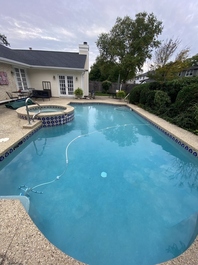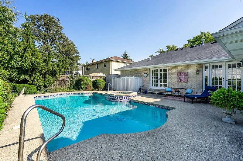 Beautiful All-Brick Ranch in Desirable Sycamore Square! Impeccably maintained 4-bedroom, 2-bath home offering exceptional features and timeless charm. Enjoy your own private oasis with a stunning heated in-ground pool and built-in spa! Step inside to a warm and inviting layout featuring cathedral ceilings, exposed wood beams, skylights, recessed lighting, and gleaming hardwood floors. The welcoming front patio sets the tone for the home’s character and curb appeal. The elegant dining room, highlighted by a striking coffered ceiling, is perfect for hosting gatherings. The spacious living room flows seamlessly to the backyard-your dream outdoor retreat-ideal for entertaining all summer long. The gourmet kitchen is a chef’s delight with stainless steel appliances, abundant cabinetry, breakfast bar, and direct access to the built-in, natural gas Broilmaster grill. The adjoining eating area features skylights and a charming wood beam accent. At the heart of the home, the cozy family room boasts an impressive cathedral ceiling with wood beam, fireplace, and French doors leading to the fenced backyard. Escape to your lovely primary suite offering a large walk-in closet and private ensuite bath. Three additional bedrooms and a full bath with whirlpool tub complete the main level. The finished basement expands your living space with a large recreation room showcasing a floor-to-ceiling brick fireplace, laundry area, and plenty of storage. Additional highlights include a circular driveway, backyard shed, newer hot water heater (2024), and furnace (2023). Conveniently located near the train, tollway, shopping, restaurants, and Camp Pine Woods with its walking trails and scenic nature views. This home truly has it all-schedule your private showing today!