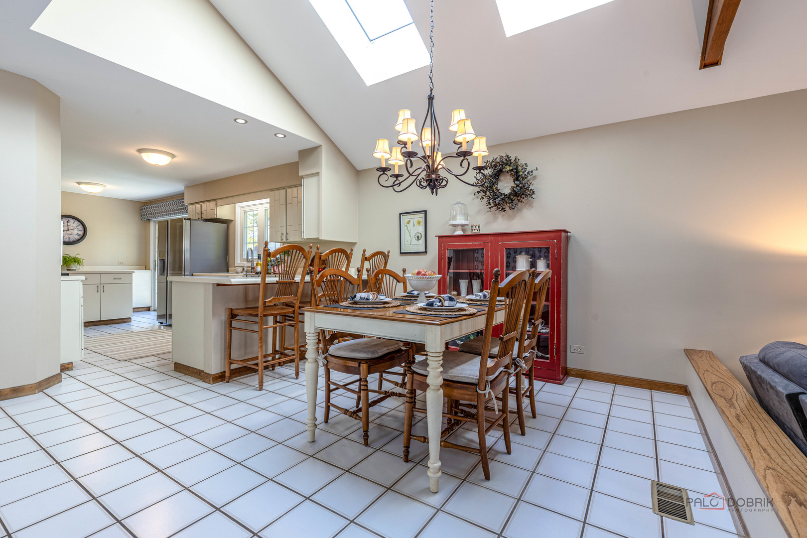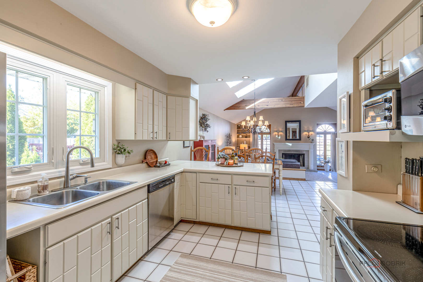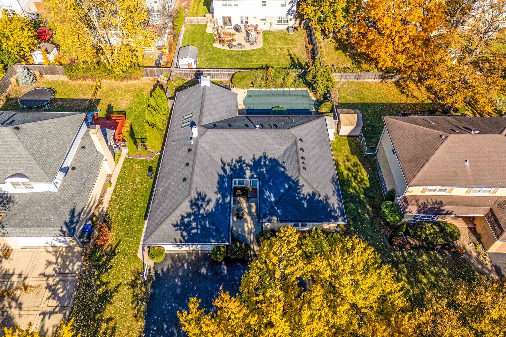 Beautiful All-Brick Ranch in Desirable Sycamore Square! Impeccably maintained 4-bedroom, 2-bath home offering exceptional features and timeless charm. Enjoy your own private oasis with a stunning heated in-ground pool and built-in spa! Step inside to a warm and inviting layout featuring cathedral ceilings, exposed wood beams, skylights, recessed lighting, and gleaming hardwood floors. The welcoming front patio sets the tone for the home’s character and curb appeal. The elegant dining room, highlighted by a striking coffered ceiling, is perfect for hosting gatherings. The spacious living room flows seamlessly to the backyard-your dream outdoor retreat-ideal for entertaining all summer long. The gourmet kitchen is a chef’s delight with stainless steel appliances, abundant cabinetry, breakfast bar, and direct access to the built-in, natural gas Broilmaster grill. The adjoining eating area features skylights and a charming wood beam accent. At the heart of the home, the cozy family room boasts an impressive cathedral ceiling with wood beam, fireplace, and French doors leading to the fenced backyard. Escape to your lovely primary suite offering a large walk-in closet and private ensuite bath. Three additional bedrooms and a full bath with whirlpool tub complete the main level. The finished basement expands your living space with a large recreation room showcasing a floor-to-ceiling brick fireplace, laundry area, and plenty of storage. Additional highlights include a circular driveway, backyard shed, newer hot water heater (2024), and furnace (2023). Conveniently located near the train, tollway, shopping, restaurants, and Camp Pine Woods with its walking trails and scenic nature views. This home truly has it all-schedule your private showing today!