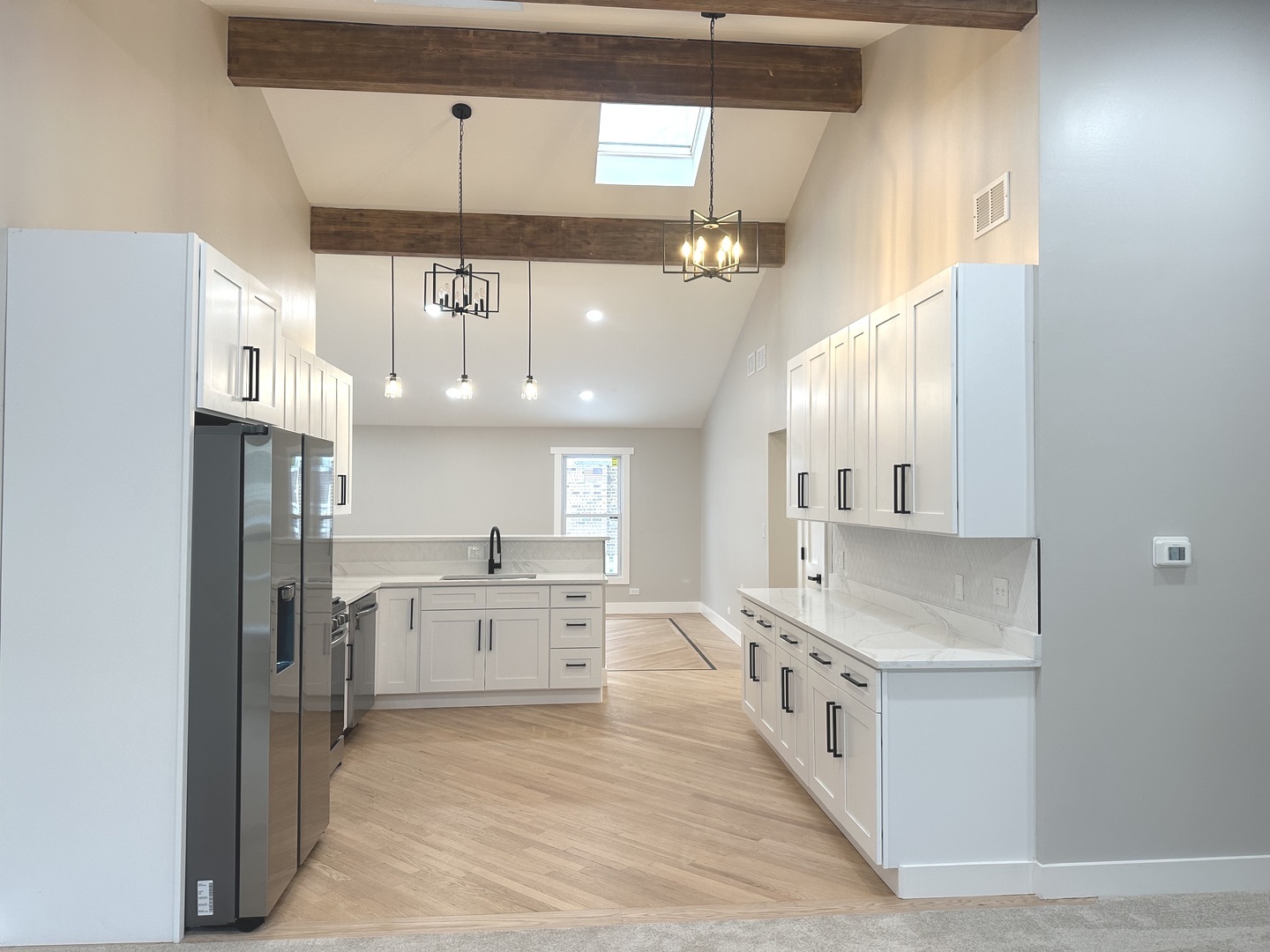 Experience elevated ranch-style living in this completely updated 3-bedroom, 2-bath Lockport home offering 1,779 sq. ft. of impressive design and comfort. From soaring ceilings to premium finishes, every detail has been curated to deliver a move-in-ready experience. The brand-new kitchen features oversized white cabinetry, quartz countertops, stainless steel appliances, and a spacious layout that opens effortlessly into the family room-complete with a cozy, modern fireplace. Throughout the home, you’ll appreciate all new 2-panel doors, updated trim, fresh paint, and fully adjustable lighting, creating a cohesive, modern aesthetic enhanced by brand-new windows that fill each space with natural light. The primary bedroom is a true retreat, offering vaulted ceilings, generous space, and direct access to an enclosed porch. The luxurious primary bath boasts a gorgeous walk-in shower and contemporary finishes, while both bathrooms have been fully updated with stylish tile and quartz surfaces. A full laundry room adds convenience and functionality. Outside, enjoy a massive fenced-in yard featuring a brand-new privacy fence-perfect for outdoor entertaining or future enhancements. The roof and major mechanical components are approximately 5-7 years old, offering added peace of mind. Located in a fantastic area within walking distance to Lockport High School, this move-in-ready home combines thoughtful design, modern comfort, and exceptional value. A rare opportunity-don’t miss it!