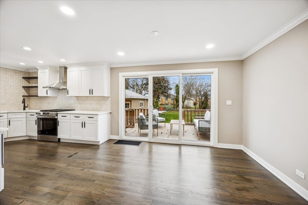 Step into this beautifully remodeled 3 bedroom, a den, and 2 bathroom open concept home, where modern design meets cozy comfort. The sun filled main level features: a spacious living room with a fireplace, a dining room with an oversized sliding door, and a chef’s kitchen with quartz countertops, and brand-new stainless-steel appliances. Upstairs, you’ll find three large bedrooms and a luxurious bathroom with a double sink vanity for a spa-like experience. The basement is perfect for relaxation and entertainment, boasting a second fireplace, a bar, and a stylishly tiled bathroom. There’s also a flexible room that can be used as a home office or an extra bedroom. Throughout the main and upper floors, refinished hardwood flooring adds warmth and character to the home. Step outside to the newly landscaped backyard, where you can enjoy the large deck or gather around a charming chimenea. The home also features a new roof and a garage door, combining style and functionality. Don’t miss the chance to make this beautiful home your own. Schedule your viewing today and see its charm for yourself!