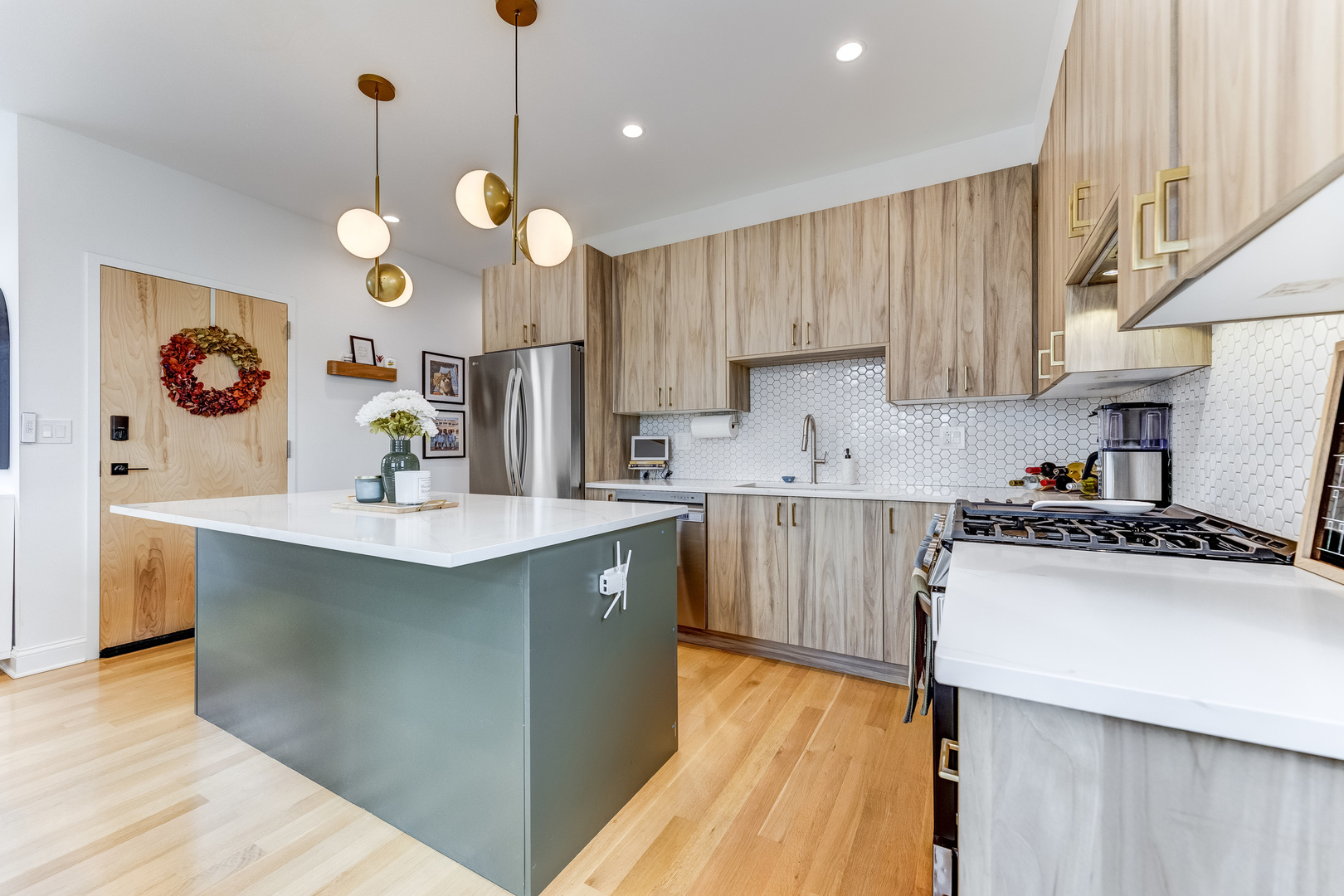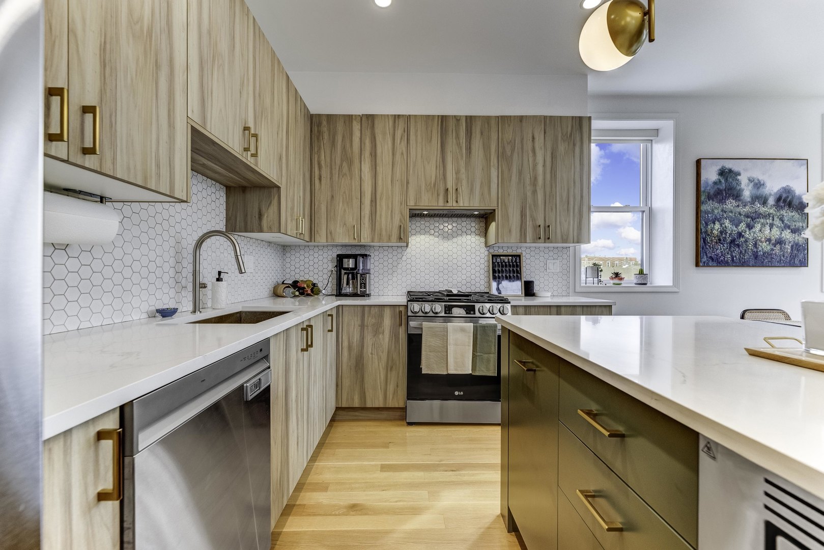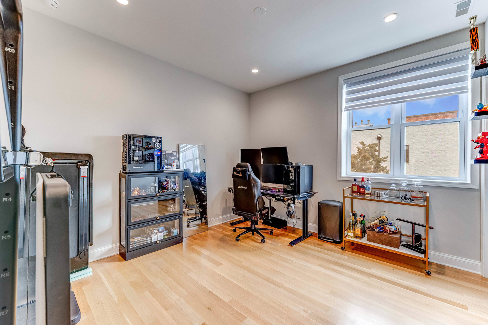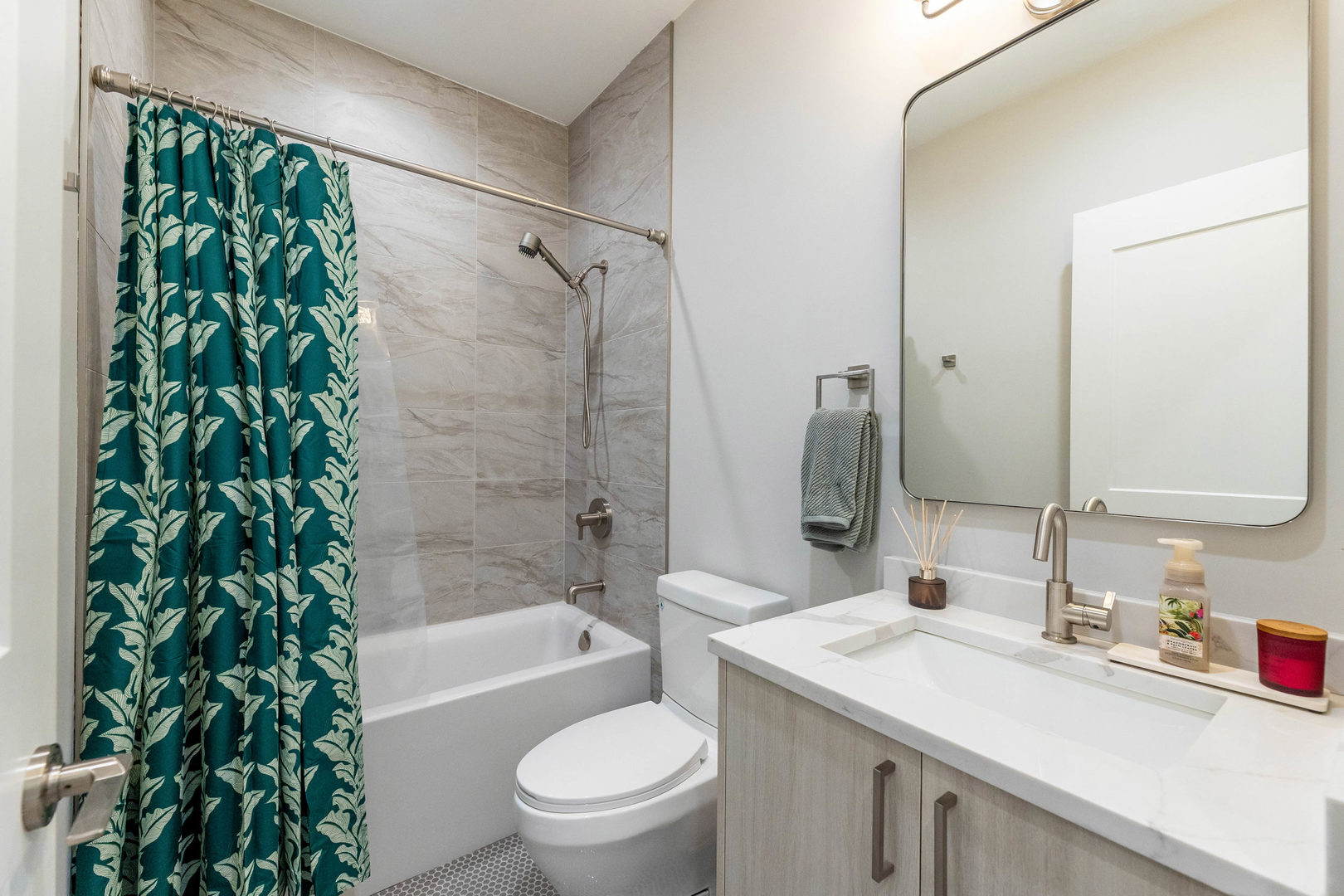 Welcome to this stunning 2-bedroom, 2-bath penthouse in the heart of Pilsen! Built in 2023, this modern home is flooded with natural light from windows throughout and offers a bright, airy open floor plan with tall ceilings. The sleek kitchen boasts flat-panel cabinetry, quartz countertops, a full backsplash, and premium LG appliances. The spacious primary suite includes dual walk-in closets and a luxurious bath with dual vanity and separate shower. Additional features include in-unit laundry, carport parking with EV charging capability, and both a large rear deck and a private rooftop deck. The rooftop is an entertainer’s dream, equipped with a Fusion Flame outdoor kitchen, steel louvered pergola, and panoramic city views. Perfectly situated on a corner building, just steps from the vibrant dining, cafes, and shops of 18th Street, as well as the Pink Line and the National Museum of Mexican Art. A truly modern and bright home in one of Chicago’s most dynamic neighborhoods!