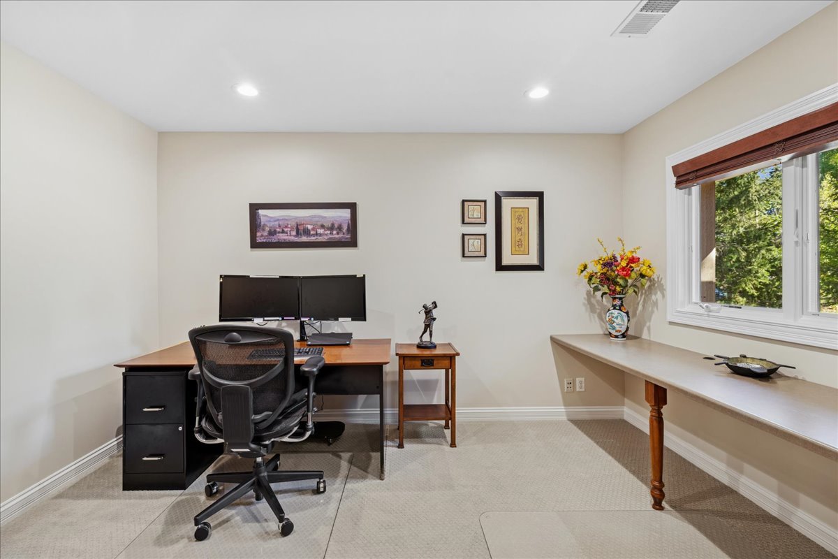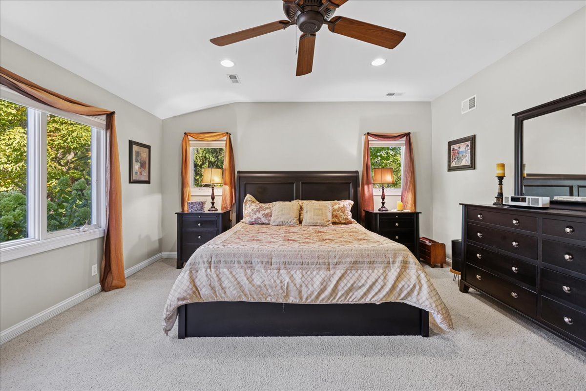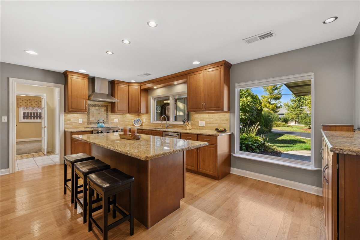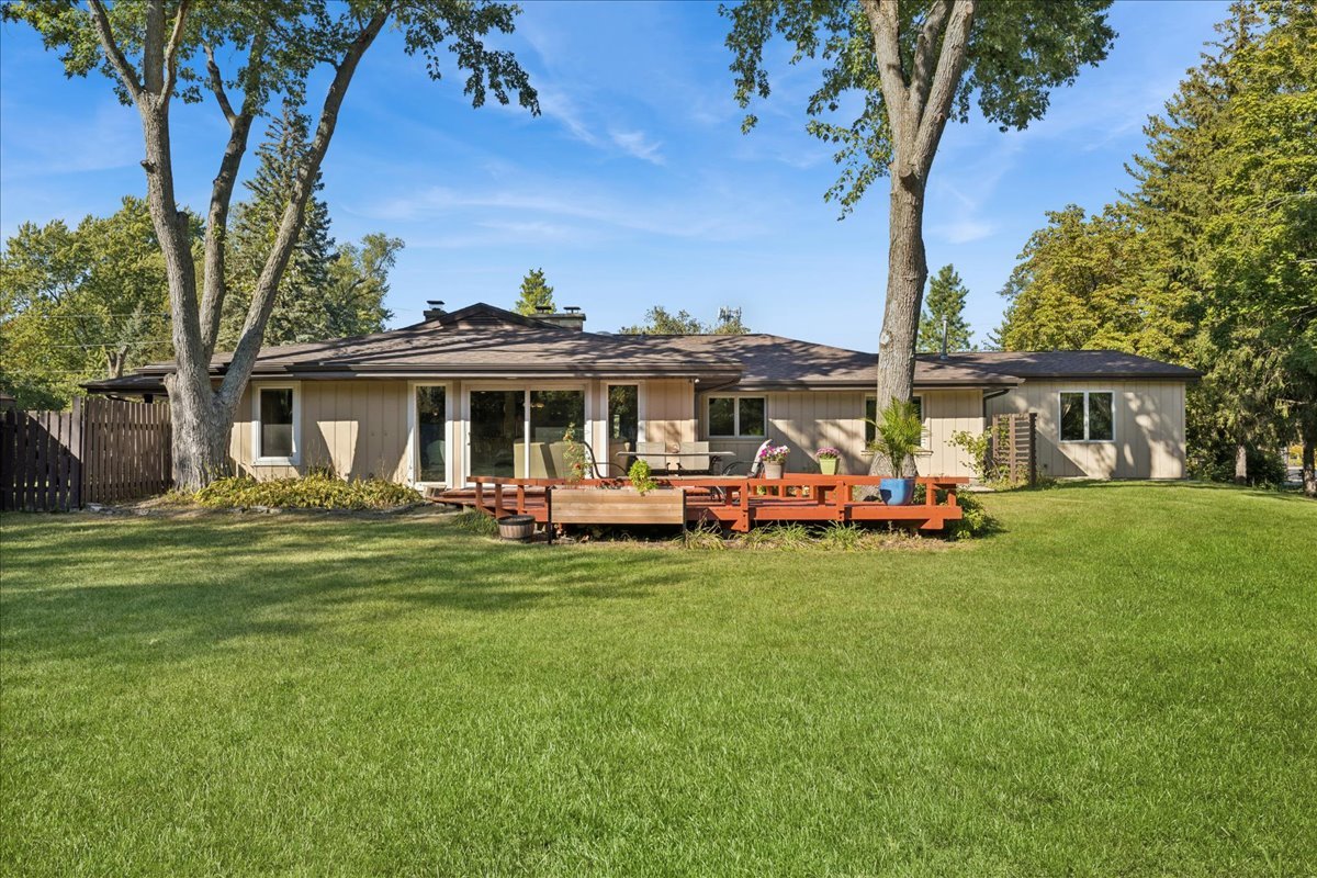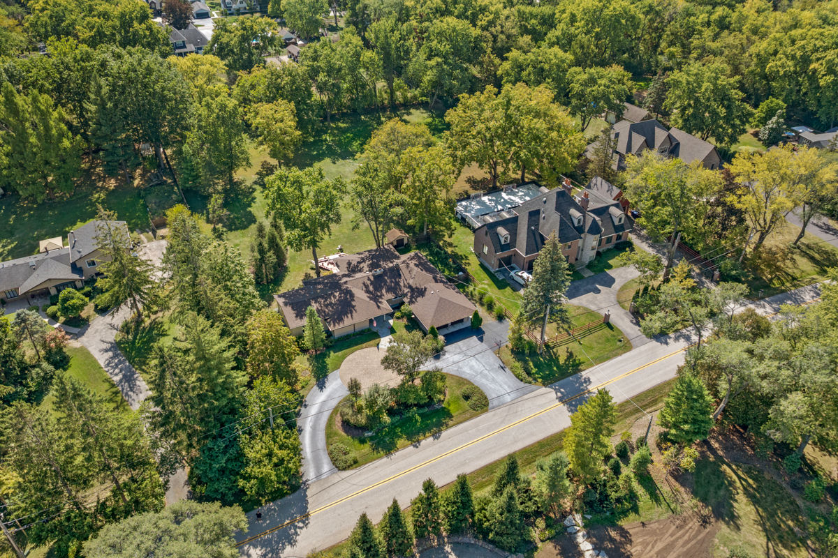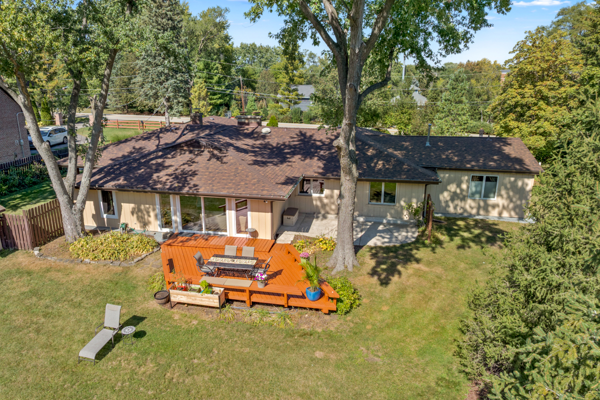 Nestled within one of Vernon Hills’ best-kept secrets, Woodbine Circle. This remarkable ranch sits on over an acre of land and blends timeless style with modern convenience. With countless updates and located within the highly rated Stevenson High School and District 103 boundaries, this home is an exceptional find. From the moment you arrive, the property makes a lasting impression. A circular driveway winds gracefully to the home, enhanced by paver brick accents, a brand-new roof and professional landscaping. As you step into the foyer, you’re greeted by an awe-inspiring living space where an entire wall of sliding glass doors invites the outdoors in. Sunlight pours through the glass, filling the room with a warm, golden glow while framing picturesque views of the expansive backyard, creating a seamless connection between indoor comfort and outdoor beauty. The dining room adds warmth and character with its cozy wood-burning fireplace. An incredible chef’s kitchen is designed for both style and function, featuring 42-inch cabinetry, gleaming granite countertops, a large island, stainless steel appliances, and a double oven. Whether preparing daily meals or hosting, it is a space that inspires. The primary suite feels like a true retreat. A tray ceiling and spacious walk-in closet set the tone, while the spa-like bathroom elevates everyday living with dual vanities, a soaking tub, heated floors, and a luxurious walk-in steam shower. A second ensuite bedroom offers privacy and comfort for guests, while two additional bedrooms share another full bathroom. For those working from home, the private office provides a perfect setting with French doors, recessed lighting and new carpeting. A versatile flex room adds even more possibilities-whether used as a game room, recreation space, or even a fifth bedroom. Throughout the home, thoughtful details such as solid core doors, updated trim and crown molding and Pella sliding doors and windows reflect quality craftsmanship. Practicality is seamlessly paired with peace of mind thanks to a whole-house 22KW Generac generator and an in-ground front yard sprinkler system. Outside, the backyard provides an entertainer’s dream and/or a private retreat, offering endless opportunities to gather, play, or simply enjoy the beauty of nature. Recent updates include a new roof and gutters (2025), Frigidaire Pro refrigerator (2025), Bosch dishwasher (2025), A/C condenser (2023), two hot water heaters (2021), and a furnace with Aprilaire humidifier & UV light cleaner (2020). Close to endless shopping, dining, entertainment and so much more! Blending thoughtful updates, modern comfort, and a setting that balances privacy with convenience, this beautifully maintained ranch is a rare opportunity in an unbeatable Vernon Hills location!