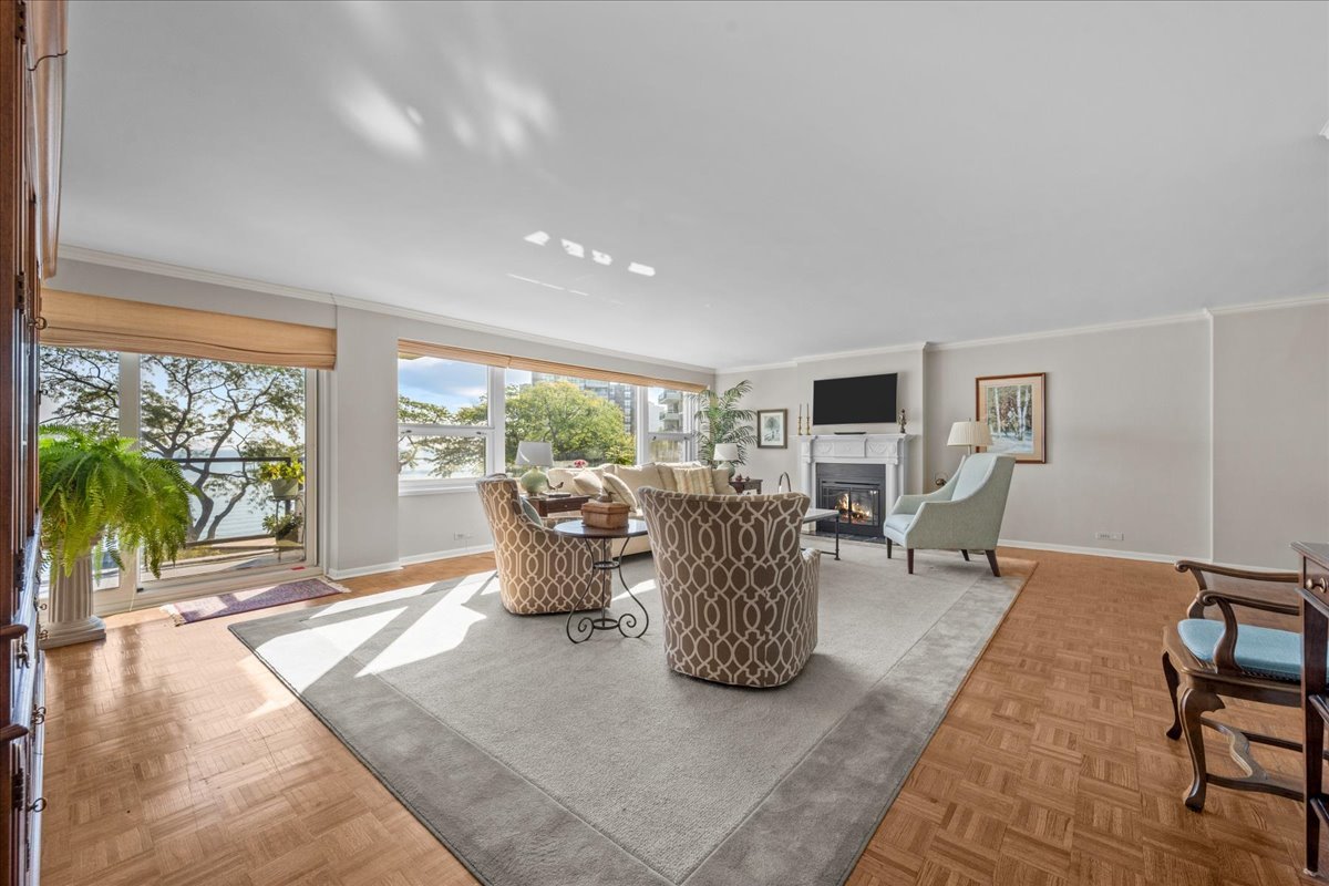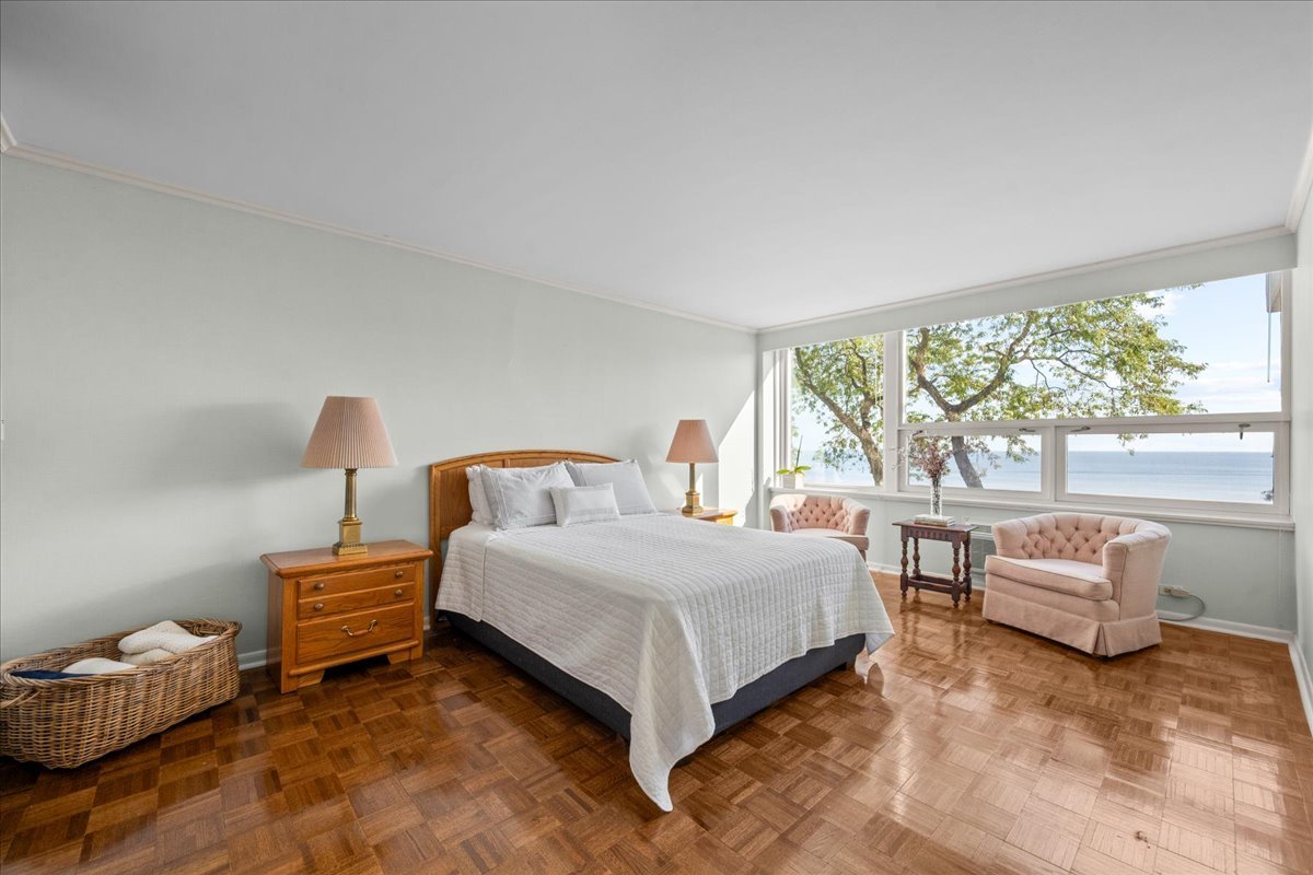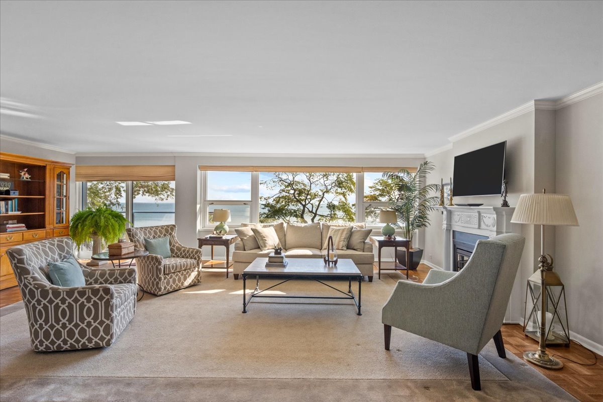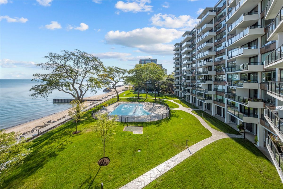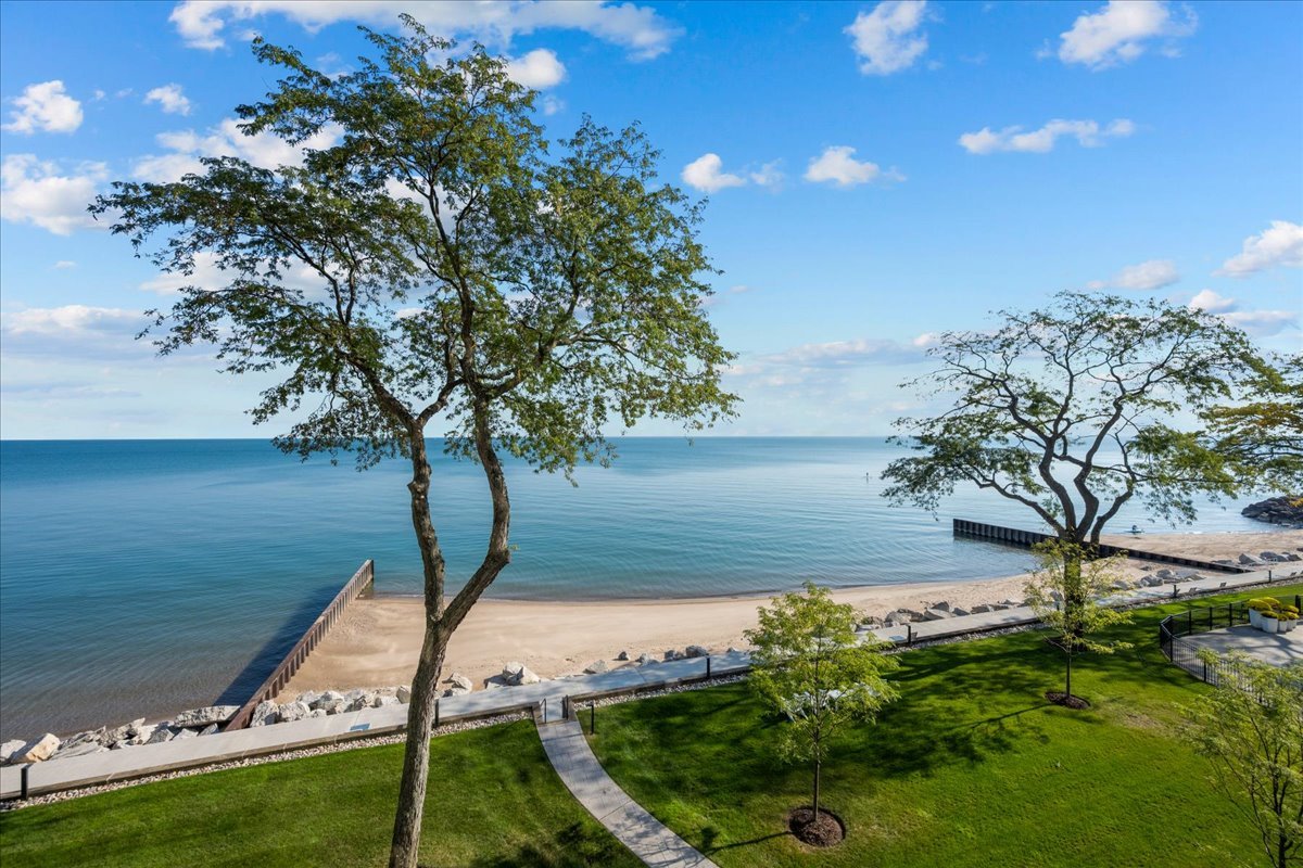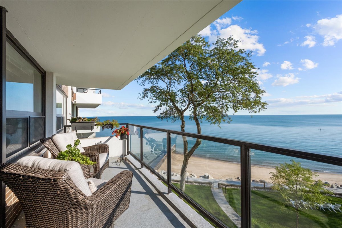 Move right in to this desirable 2 bedroom, 2 bath single-level condo (no stairs!) with breathtaking lake views from every room. The spacious kitchen offers abundant cabinetry and counter space, while the open living and dining areas showcase a dramatic wall of windows overlooking the pool, private beach, and gorgeous Lake Michigan. Step outside to a private balcony with sliding doors-the perfect spot to enjoy lake breezes and breathtaking views right from the comfort of your own home. Both bedrooms are generously sized – also with stunning lake views. The primary suite includes a private bath and terrific closet space, while the second bedroom is served by a full hallway bath. Additional conveniences include an in-unit washer/dryer and a hallway linen closet. This full-amenity building provides 24-hour doorman, exercise and party rooms, outdoor pool, storage, and one heated underground parking space. HOA includes real estate taxes. All this in a prime location across from the newly reimagined Plaza del Lago-offering shopping, dining, groceries, and more just steps from your door. Lakefront living at its best!