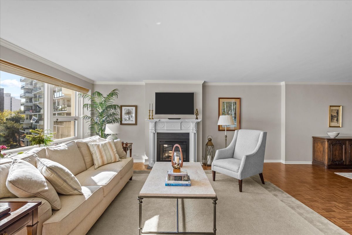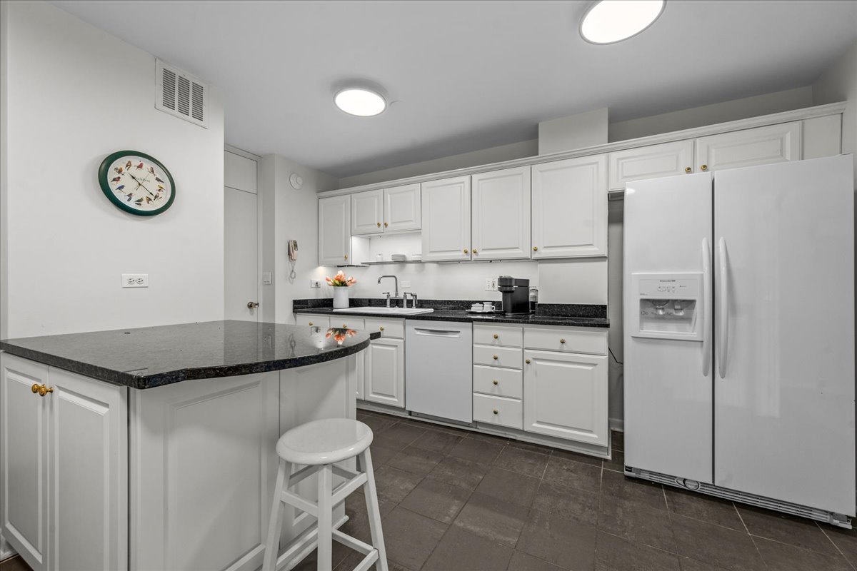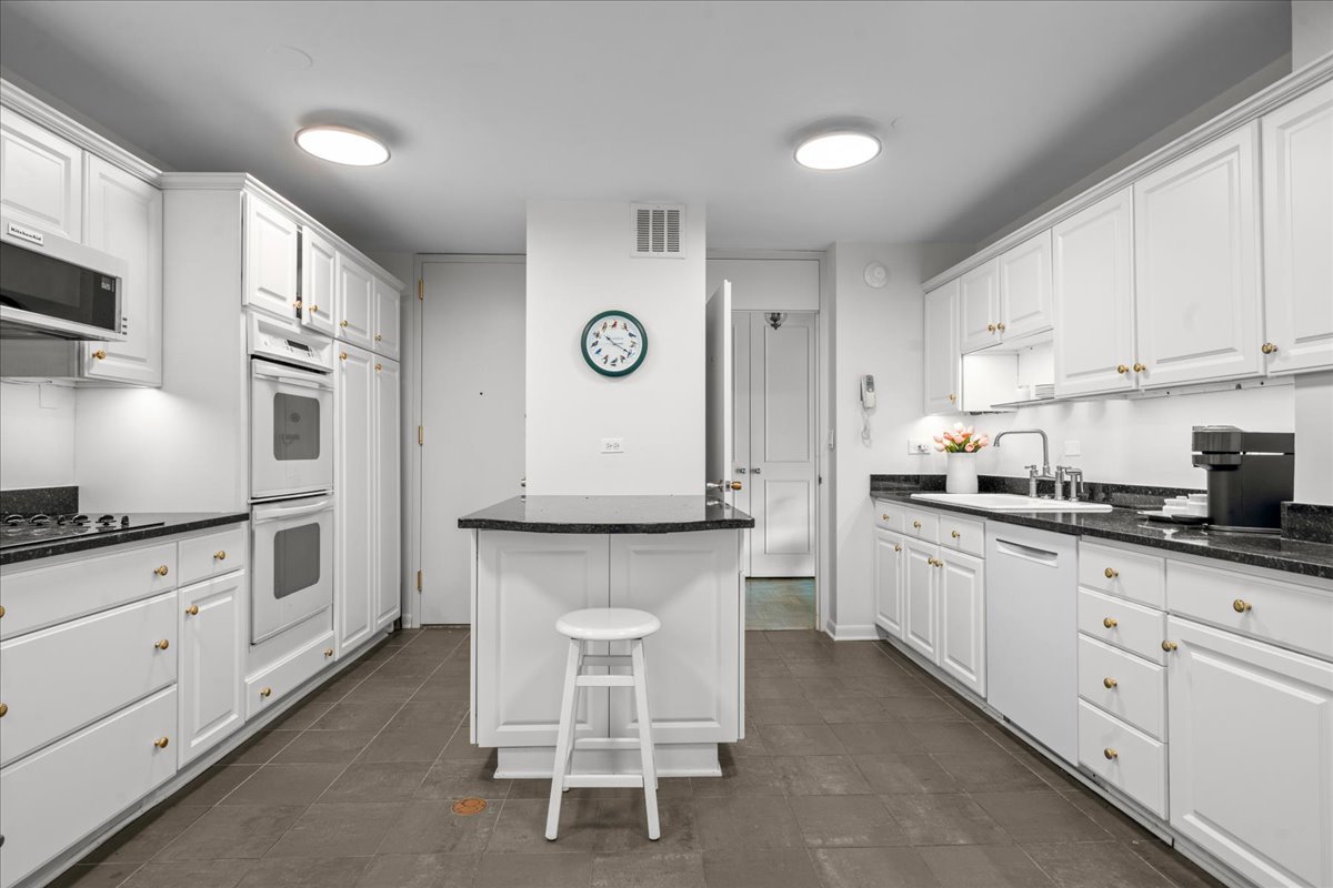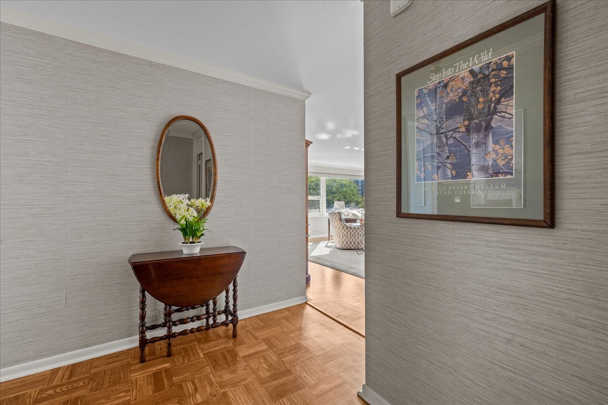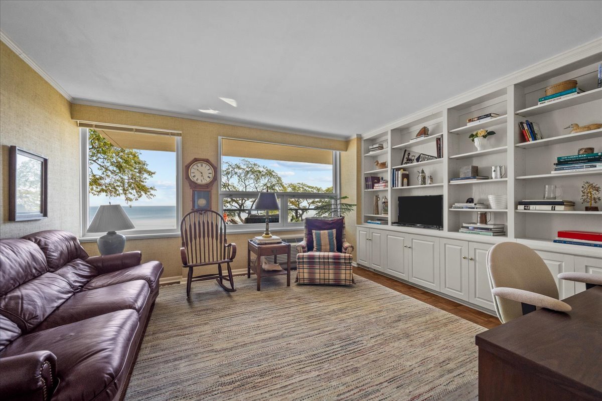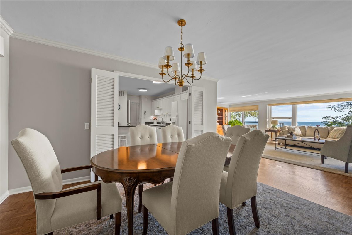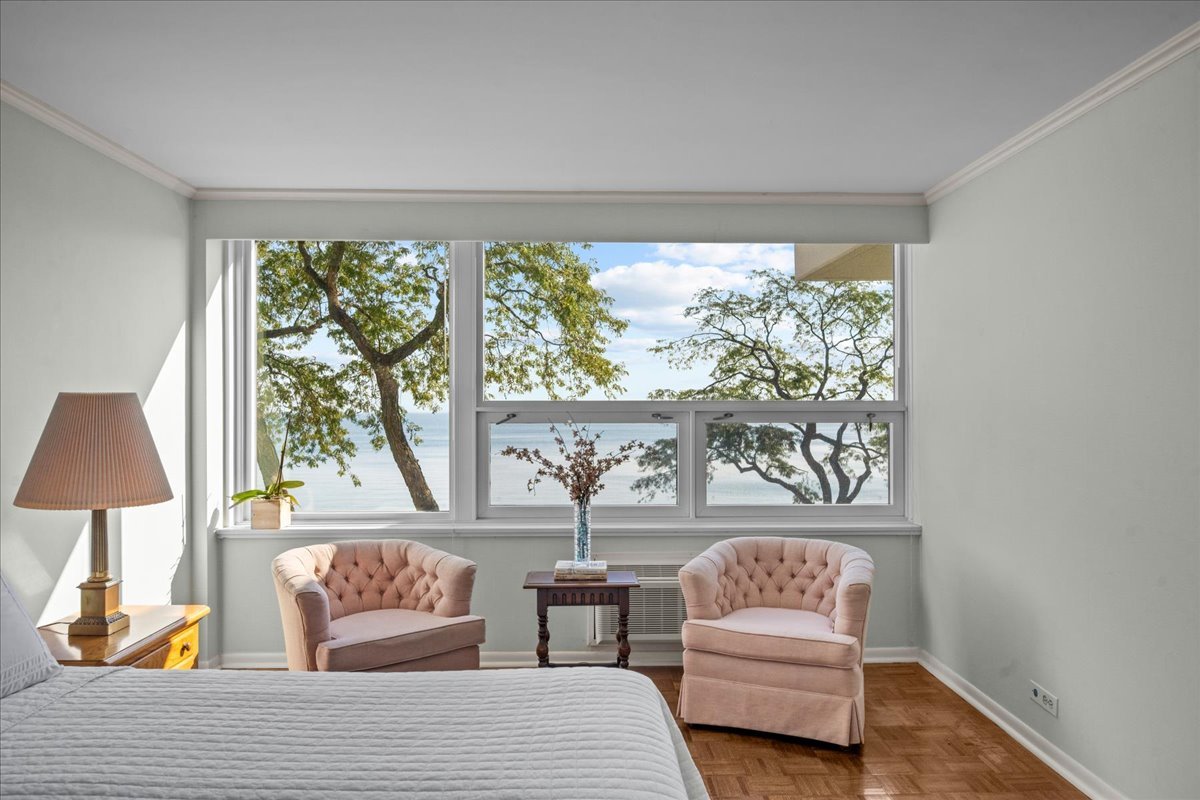 Move right in to this desirable 2 bedroom, 2 bath single-level condo (no stairs!) with breathtaking lake views from every room. The spacious kitchen offers abundant cabinetry and counter space, while the open living and dining areas showcase a dramatic wall of windows overlooking the pool, private beach, and gorgeous Lake Michigan. Step outside to a private balcony with sliding doors-the perfect spot to enjoy lake breezes and breathtaking views right from the comfort of your own home. Both bedrooms are generously sized – also with stunning lake views. The primary suite includes a private bath and terrific closet space, while the second bedroom is served by a full hallway bath. Additional conveniences include an in-unit washer/dryer and a hallway linen closet. This full-amenity building provides 24-hour doorman, exercise and party rooms, outdoor pool, storage, and one heated underground parking space. HOA includes real estate taxes. All this in a prime location across from the newly reimagined Plaza del Lago-offering shopping, dining, groceries, and more just steps from your door. Lakefront living at its best!