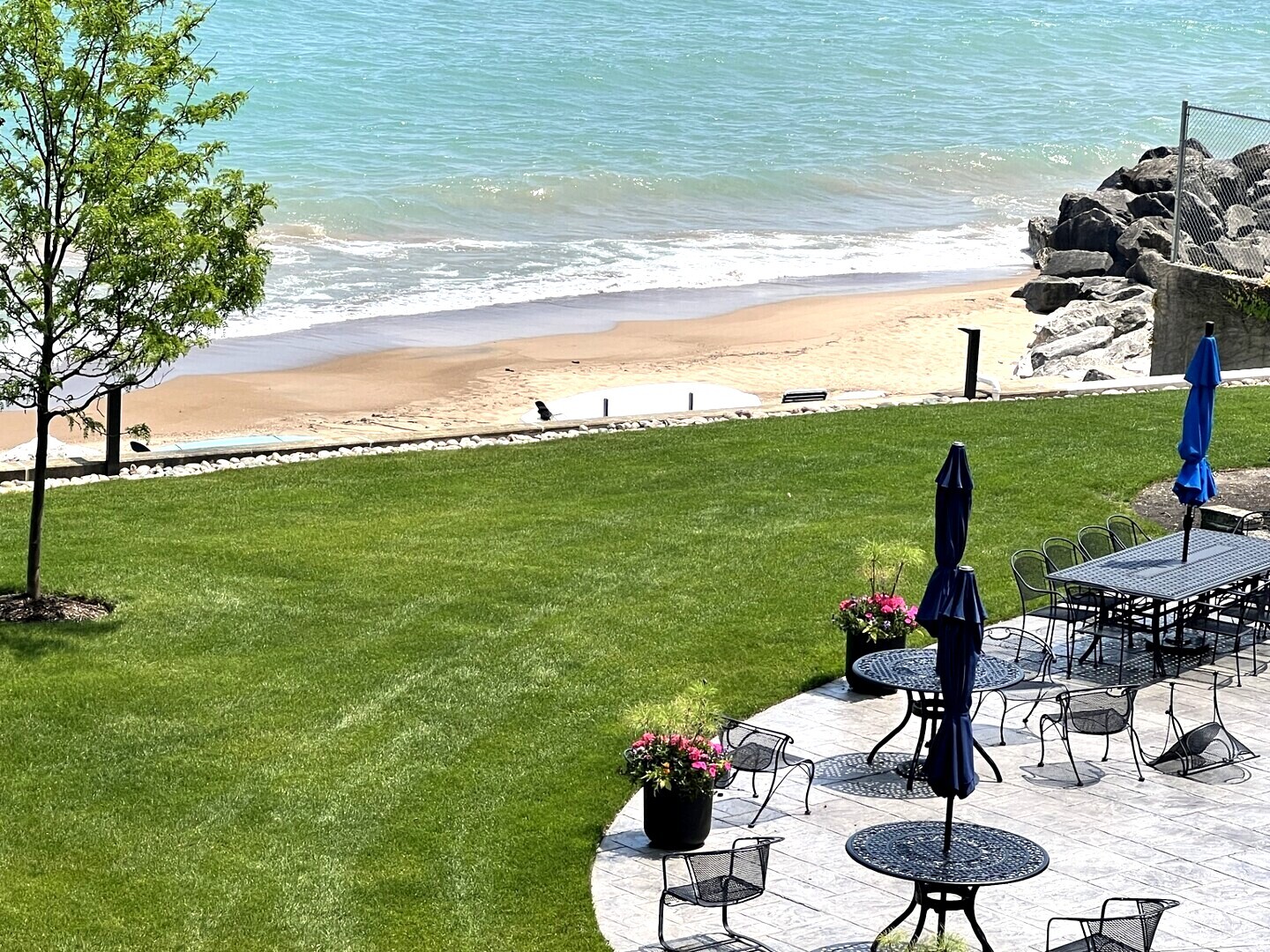 FULL RENOVATION WITH UNBELIEVABLE LAKE VIEWS… Experience breathtaking Lake Michigan sunrises and sweeping views over beautifully landscaped grounds from this completely rehabbed 2-bedroom, 2-bath residence. Enjoy resort-style living with a private beach, BBQ patio, beautiful grounds, work out room, party room, and state-of-the-art pool right outside your door! Step inside to a stunning transformation-EVERYTHING is new! All floors, floor-to-ceiling interior doors, modern baseboards, crown molding, and designer lighting throughout. The expansive kitchen is a showstopper, featuring a large island with seating for eight, premium finishes, and unobstructed lake and nature views-perfect for entertaining. Both bathrooms have been fully renovated with luxury fixtures and every closet has been reimagined for maximum storage. There are 2 balconies with new stone floors, ideal for enjoying the changing seasons and spectacular views. Additional highlights include a new air conditioning unit, tankless hot water heater, new appliances, new in-unit new washer/dryer, and spacious foyer leading to generous living and dining areas that make entertaining effortless. Located at the desirable south end of the building for easy access to the garage, fitness room, and party area. The building features on-site management, long-tenured engineers, and a dedicated office staff-all reflecting true pride of ownership. Monthly assessments INCLUDE property taxes! Recent building improvements include a renovated pool, all new windows and sliding doors, balcony repairs and rebuilt elevators. Enjoy luxury, comfort, and lakefront serenity. A TRUE TREAT….