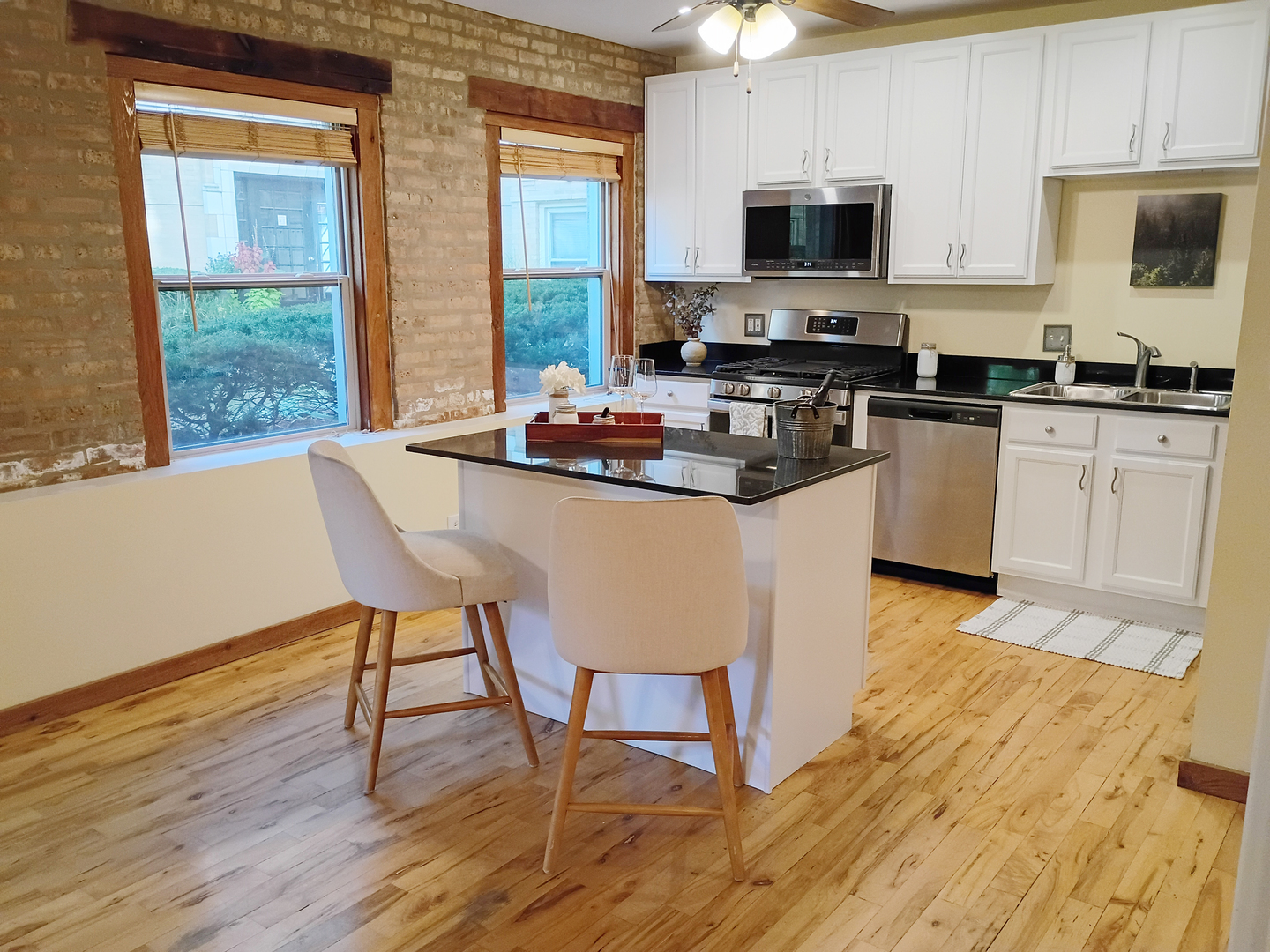 Owners motivated to sell! Don’t miss this opportunity! Modern Meets Rustic in this Bright Rogers Park Ground-Floor Condo with large windows for lots of natural sun light, 9 foot ceilings, reserves over $100,000 and a moveable kitchen island, you can’t miss this! Step into the perfect blend of charm and modern convenience with this beautifully updated ground-floor condo in the heart of Rogers Park. Featuring an open floor plan and rich hardwood floors throughout, this 2-bedroom, 1-bath gem is bathed in natural light from large windows that overlook a beautifully manicured courtyard. The second bedroom is open and can be used as an office or a door can be added and utilized as a bedroom. The updated kitchen offers stainless steel appliances, ample cabinet space, and stylish finishes-perfect for home chefs and entertainers alike. Unwind in the jetted tub, ideal for relaxing after a long day. Additional highlights include: Fifteen minute walk to the train – a commuters dream In-unit laundry for maximum convenience Low taxes and low assessment dues No special assessments – move in with peace of mind Secure gated entry with intercom system Access to a bike room for easy city commuting This well-maintained building offers the best of city living in a quiet, neighborly setting-steps from parks, shops, cafes, and public transit. Don’t miss your chance to own a unique space where modern meets rustic-schedule your private tour today!