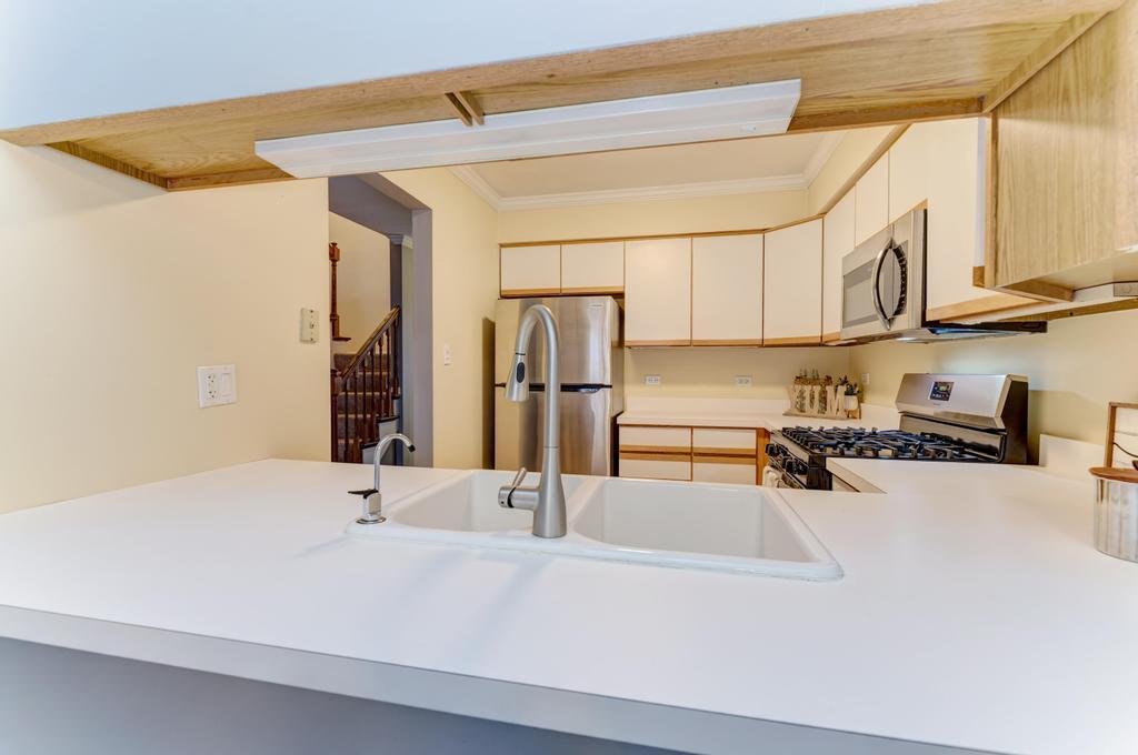 MULTIPLE OFFERS RECEIVED. BEST AND HIGHEST DUE SUNDAY, NOV 23 AT 9 AM. Welcome to this charming end-unit townhome featuring a private entrance and an attached one-car garage. The first floor offers Pergo flooring, spacious room sizes enhanced by crown molding, and a cozy fireplace with ceramic logs. The kitchen features a neutral palette, newer stainless steel appliances (2022), a newer faucet (2024), and a garbage disposal (2025). A convenient powder room completes the main level. Upstairs, the spacious primary suite includes a full wall of closets, a ceiling fan with a light, two-inch blinds, and neutral carpet. The secondary bedroom features white built-in shelving, decorative wall decal, and a walk-in closet. The hallway bath maintains a clean, neutral style. The unfinished basement provides excellent storage or the perfect opportunity to create additional living space. Additional updates include a washer and dryer replaced within the last five years, a water heater (2023), and an ejector pump (2025). Outdoors, a nicely sized deck overlooks serene green space-ideal for relaxing or entertaining.