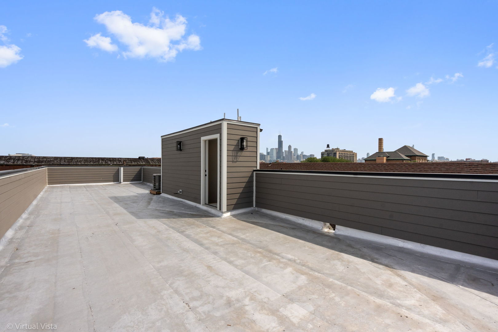 Luxurious and light-filled NEW CONSTRUCTION 2BD/2BA penthouse a renowned luxury builder located in a boutique three-unit masonry + Hardie building in the heart of Pilsen. This 1300 SF penthouse offers a rare combination of modern design, luxury finishes, and an expansive ~1,000 square foot PRIVATE TREX ROOFTOP DECK with panoramic city views-perfect for entertaining, dining, or relaxing above one of Chicago’s most dynamic neighborhoods. This home perfectly balances urban convenience and tranquil residential living. Tucked on a quiet, tree-lined street, yet steps from the vibrant 18th Street corridor, you’ll enjoy award-winning restaurants, nightlife, galleries, and concerts at your doorstep. Excellent location that’s close to everything – Damen and 18th Pink Line stops, Western Metra stop, Expressway, Lakefront, Harrison Park, and more. The open-concept floor plan features soaring 9-foot ceilings, oversized windows that flood the home with natural light, and a spacious living and dining area anchored by a beautiful chef’s kitchen. The chef’s kitchen is outfitted with premium KitchenAid stainless steel appliances, 2 walls of custom white oak and painted cabinetry, an island, and high-end quartz countertops. Wide-plank white oak flooring runs throughout, enhancing the clean, modern aesthetic. The primary suite offers a spa-quality bath with an oversized walk-in shower, a dual-sink walnut vanity, designer tiles, quartz countertops, and a custom-organized walk-in closet. The second bedroom offers versatility for family, guests, work-from-home, or hobbies. In-unit laundry, a tiled mudroom, tiled roofdeck access, smart thermostat, keyless entry, and one included parking space complete this exceptional offering. With its unbeatable location, thoughtful layout, and incredible private outdoor space, this penthouse is a rare opportunity for the discerning buyer seeking style, space, and convenience in one of Chicago’s most exciting neighborhoods.