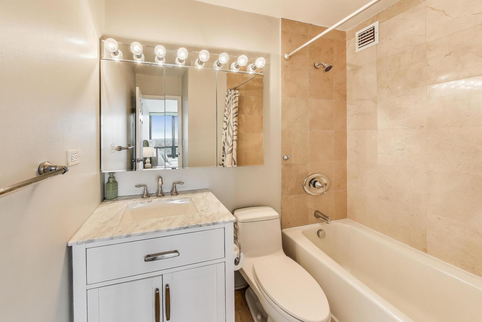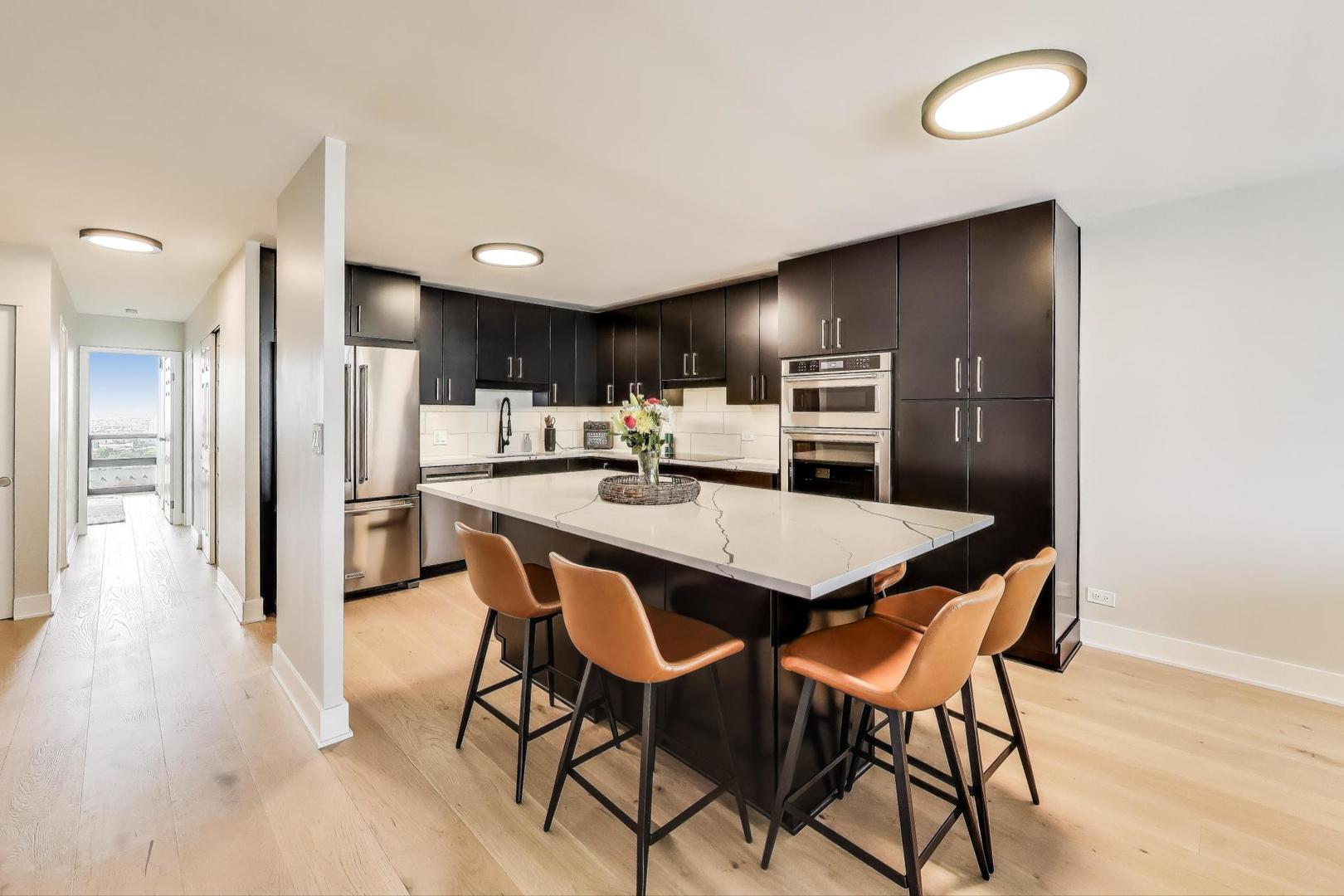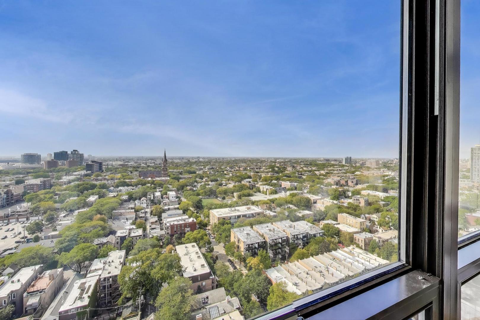 Recently updated and perfectly located in the heart of Old Town! This spacious 2 bed/2 bath on a high floor offers stunning east-facing views from your large private balcony, along with dramatic west-facing city and sunset views from both bedrooms. The bright and airy living room features floor-to-ceiling windows, brand-new hardwood floors (2024), and plenty of space for a dedicated dining area. The open-concept kitchen was recently renovated with new cabinetry, granite countertops with island seating, and stainless steel Kitchenaid appliances. The primary suite includes an en suite bath, while the generously sized second bedroom is complemented by a renovated bath with walk-in shower. Excellent closet space and new window treatments throughout. Full-amenity building offers outdoor pool and sundeck, fitness center, bike room, 24-hour door staff, hospitality room, dry cleaners, plus rental storage and parking options. Assessments cover heat, A/C, cable, and internet. Incredible location where you can walk to everything-Wells Street dining, nightlife, and shopping are right outside your door. Just steps to the lakefront, Lincoln Park Zoo, Second City, Green City Market, North Avenue Beach, and public transportation!