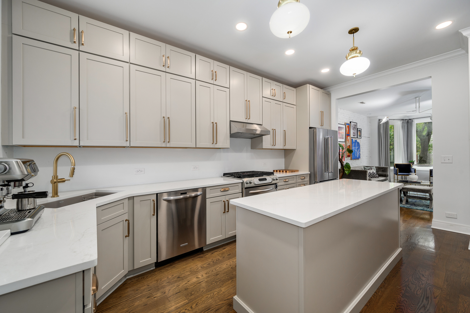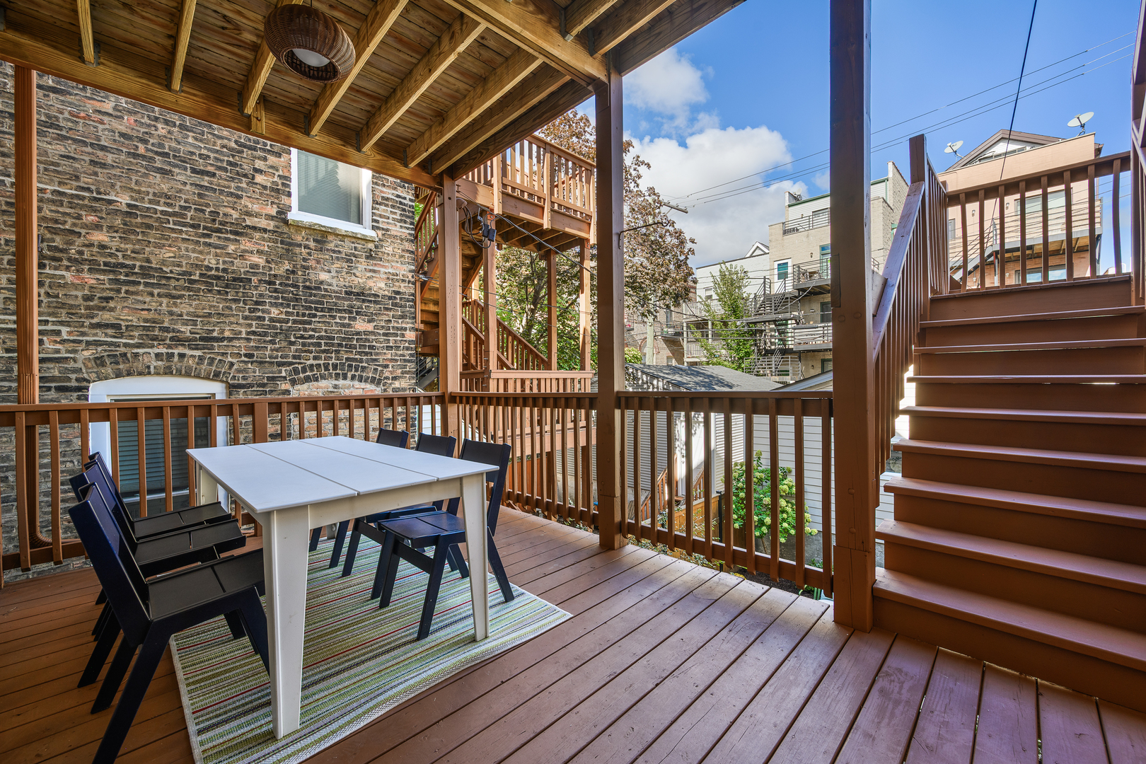 This exquisitely restored Victorian residence is a true architectural gem, seamlessly blending timeless historic charm with contemporary luxury. The expansive main floor features high ceilings, exposed brick, and an open-layout with both the living and dining room flowing into a chef’s kitchen that has been thoughtfully renovated with brand-new custom cabinetry and premium appliances. Step out of the kitchen into an outdoor oasis: the private backyard is an entertainer’s dream, featuring a beautifully landscaped garden, two decks, and a tranquil patio. In addition to the expansive outdoor space, the backyard features a two-car garage and a storage shed. Upstairs, the second level presents a sun-soaked library with a dramatic bay window and a serene primary suite with a luxurious walk-in closet and spa-inspired ensuite bath. The third floor features two generously-sized bedrooms, a full bath with an oversized soaking tub for ultimate relaxation, and conveniently located side-by-side laundry. The lower level features a spacious family room, a private bedroom with an adjacent full bath, and a private entrance leading to a serene back patio and the lush garden – ideal for an in-law suite, guest retreat, or peaceful home office. Perfectly positioned on a quiet, tree-lined street just steps away from Wicker Park’s celebrated dining, boutiques, and vibrant arts scene, and a short walk to the Division Blue Line and the 606. This move-in ready home is a rare find, combining historic architecture, modern luxury, and serene indoor-outdoor living, all within the heart of Wicker Park.