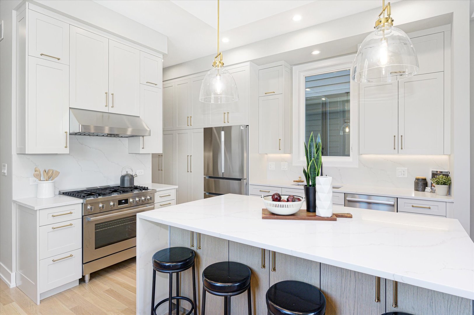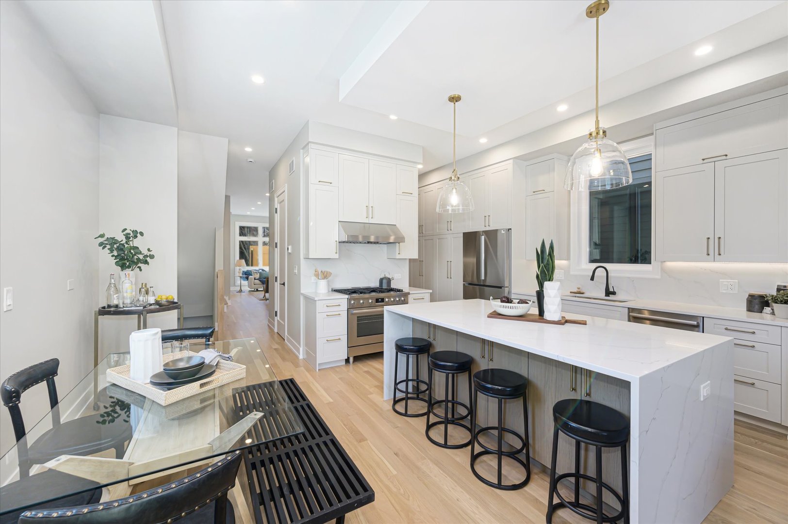 10 exquisite single family homes at the Wolfram Collection. Just a few remains. BURLEY school district! WOLFRAM COLLECTION offers unparalleled designs with functional floor plan at a desirable location. Just minutes to shopping and right around the corner from Chi Che Wang Park. This home has 3 bedrooms each with ensuite bath on 2nd floor + 2 more bedrooms in the lower level. Superb construction features include: brick facade & Hardie siding exterior, 2-car detached garage with DECK ABOVE GARAGE, fenced back yard, and high ceilings throughout the home. These BRAND NEW homes come with upscale interior finishes and thoughtful details that are truly luxurious and elegant. Sun-drenched formal living room has has Southern exposure. Large windows by the formal dining area which is connected to a butler’s pantry. The kitchen is thoughtfully designed for everyday use and entertaining! Bosch appliances package + Sharp drawer microwave. There’s a ton of cabinet drawers and double-stack cabinets for optimal STORAGE. Adjacent to the kitchen, a spacious family room is built out with contemporary COFFERED CEILING. What a great flow of main living space! This 4041sf home has several living spaces to accommodate everyone! Lower level has spacious REC room with wet bar, office/4th bedroom, 5th bedroom, full bathroom, and more storage space. Wolfram Collection offers a unique opportunity for homeowners to live and enjoy luxury effortlessly at an amazing location. There are other homes under construction where buyers can choose interior finishes! Photos are taken from 2 different model homes.