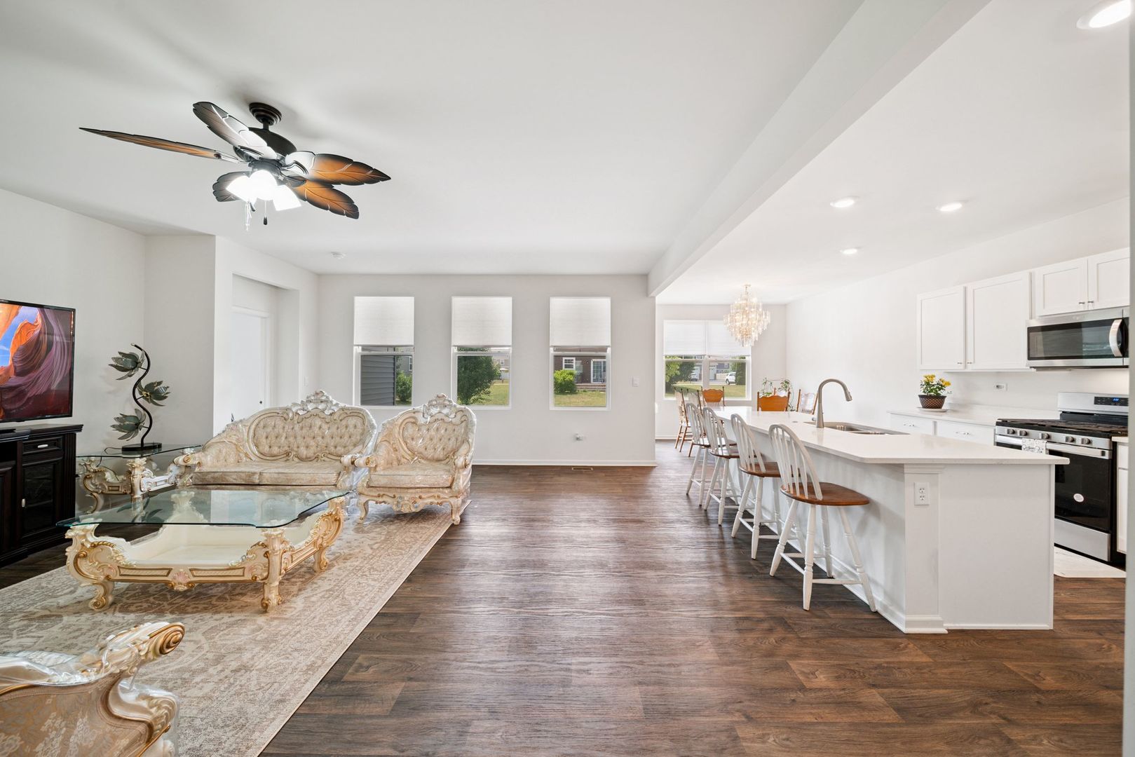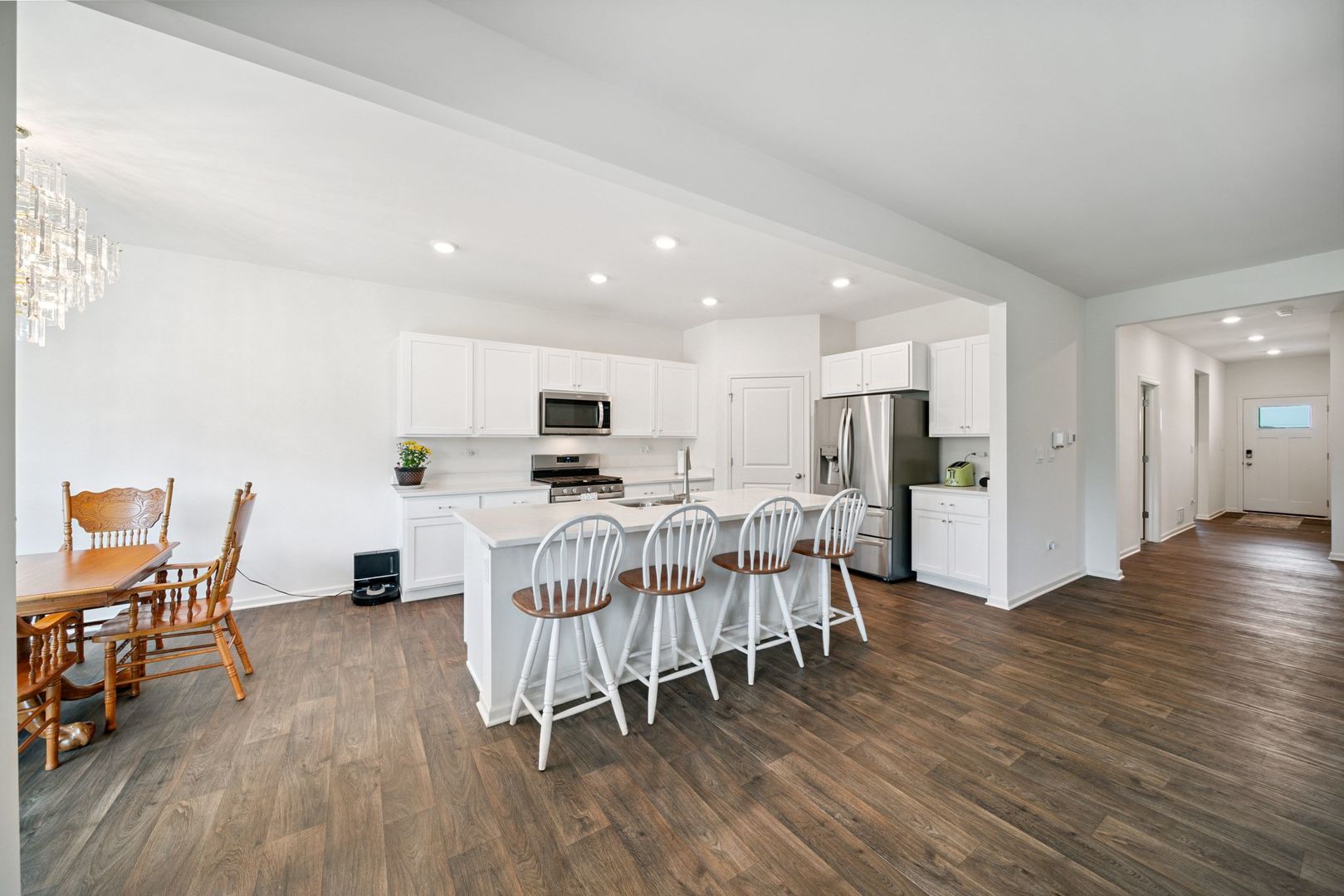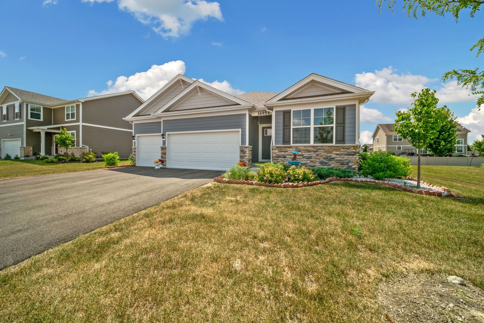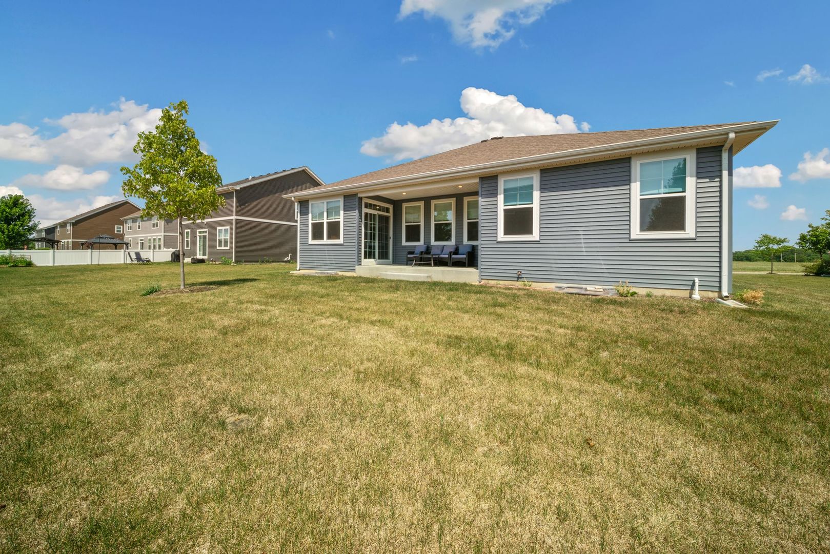 Experience bright & sunny, east facing luxury living in this stunning 2023 built Ranch single family home featuring a brick front, open-concept design, and 9ft ceilings, located in a PRIME area of Dist 202 schools in the popular Springbank subdivision. The Fairfield model is very modern and has 1970 SFT with large windows, 4 bedrooms, 2 Baths, a full basement and 3 car garage! The modern open layout features a huge great room with dining and modern kitchen. The kitchen offers designer cabinetry, quartz countertops, and a large kitchen island with plenty of seating leads to outdoor patio door to a huge backyard. A spacious living room and 3 secondary bedrooms share a full bath. The owner’s suite is pure luxury that offers a stand-alone shower with a linen closet, and a large walk-in closet. The community features a water park, a pool park pass is included as well. Smart Home System allows you to connect your smart home devices using Wi-Fi/Bluetooth and control them from your phone and a EV charger for car in garage is a huge plus. Attractions include parks, walking trails, shopping, dining, gyms and banks. Tankless water heater is a plus with instant hot water and EV air filtration system for fresh air intake. Make this lovely house completed in 2024 your next home which is ready to move in! Motivated Sellers!