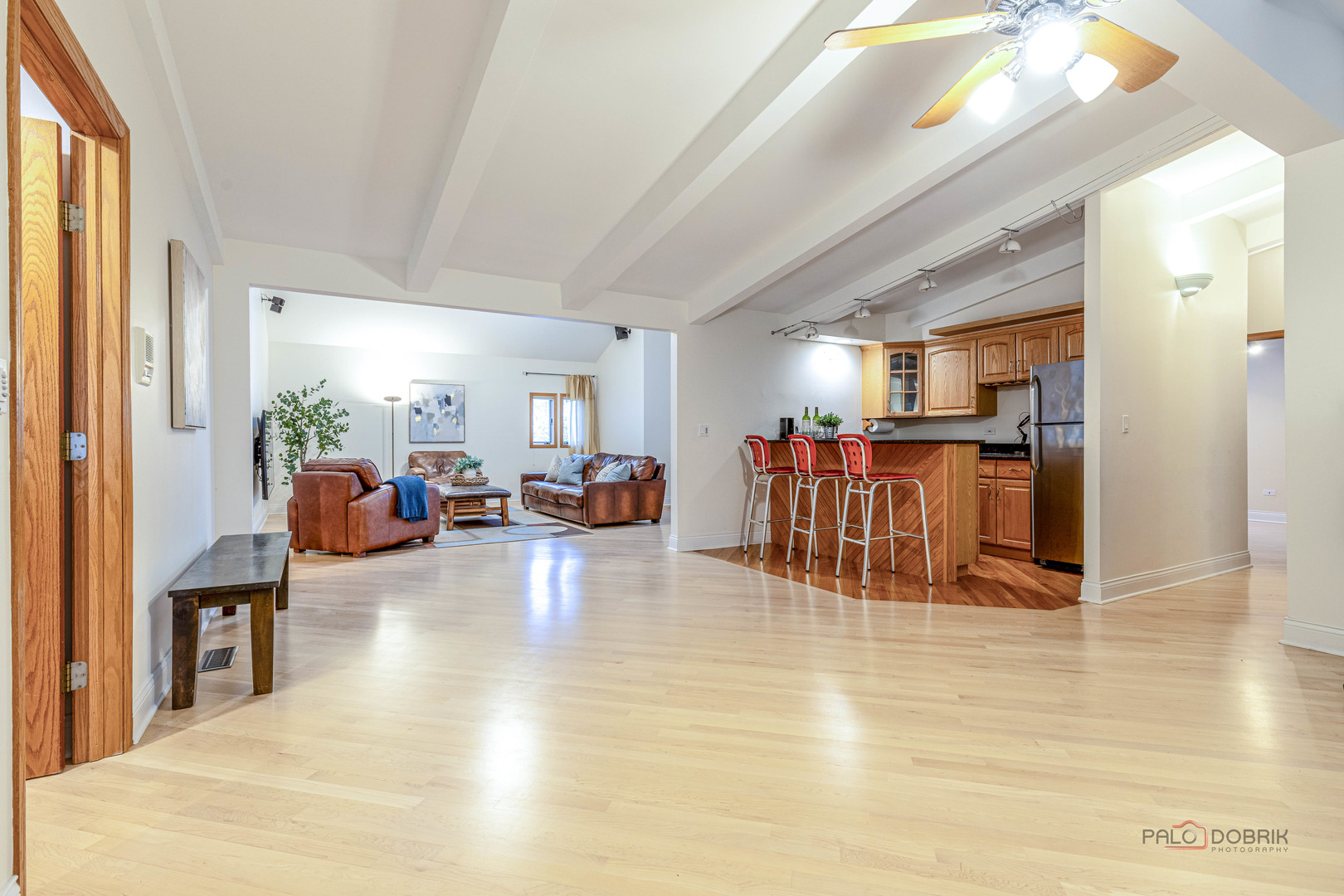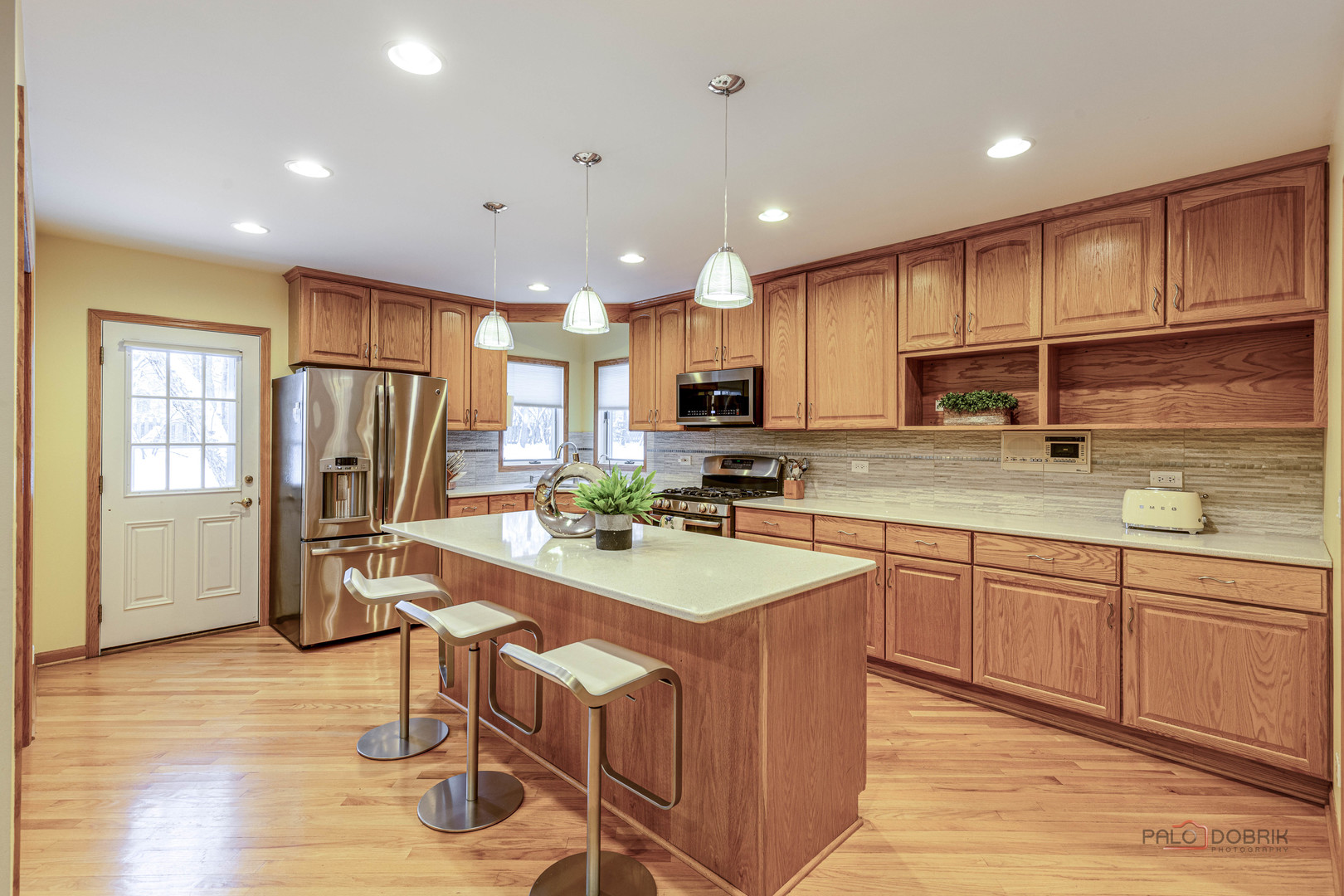 Welcome to this beautifully maintained 4-bedroom, 3.1-bath ranch home, perfectly situated in the highly sought-after and award-winning Stevenson High School district. This spacious residence combines comfort, functionality, and charm, offering a thoughtfully designed layout ideal for everyday living and entertaining. As you enter, you’re welcomed by a bright and inviting living room featuring a vaulted ceiling and skylights that fill the space with sunshine. The open design creates a warm, airy atmosphere, perfect for relaxation or gatherings. Just beyond, the spacious family room offers a wet bar-an ideal spot for entertaining or unwinding at the end of the day. The kitchen is a true centerpiece of the home, equipped with abundant cabinetry for ample storage, stainless-steel appliances, and a central island with a breakfast bar. The adjoining dining area offers plenty of space for formal or casual dining. The main level primary suite is a private retreat featuring a generous layout with its own loft area-perfect for a reading nook, home office, or private sitting space. The suite also includes a walk-in closet and an additional storage room conveniently located near the loft. The ensuite bath is designed for relaxation with a whirlpool tub and a walk-in shower. Three additional spacious bedrooms on the main level provide flexibility for family, guests, or office space, each offering ample closet space. A full hall bath and an additional half bath add convenience, while the sunroom provides a peaceful retreat to enjoy the changing seasons year-round. The finished lower level expands the living space significantly, offering a versatile recreational area ideal for games, media, or family gatherings. This level also features a full bathroom, a well-appointed laundry room, an exercise area, and a second kitchenette-perfect for extended family, guests, or entertaining. Outside, the large fenced backyard is designed for outdoor enjoyment and entertaining. The brick paver patio offers plenty of space for seating and outdoor dining, while the gazebo provides a shaded area to relax. A storage shed adds convenience for gardening tools and outdoor equipment. Don’t miss this wonderful opportunity!