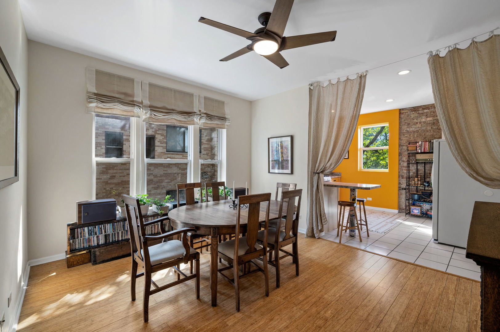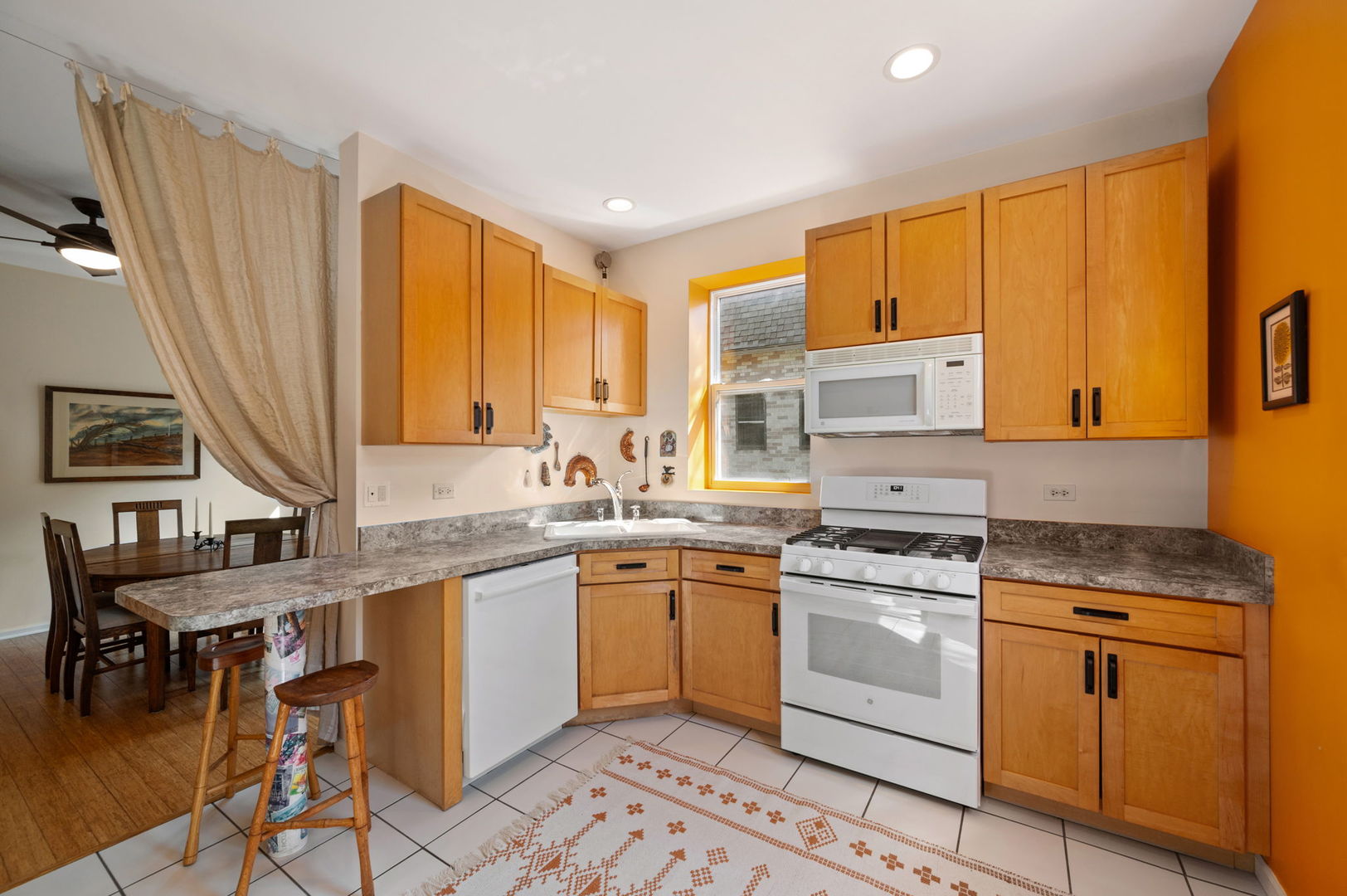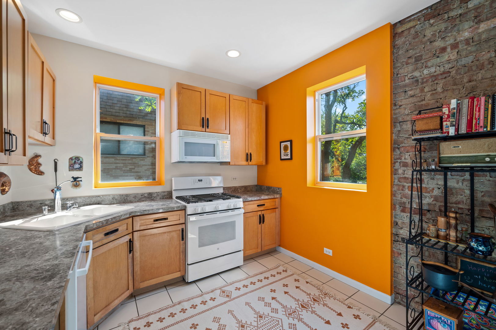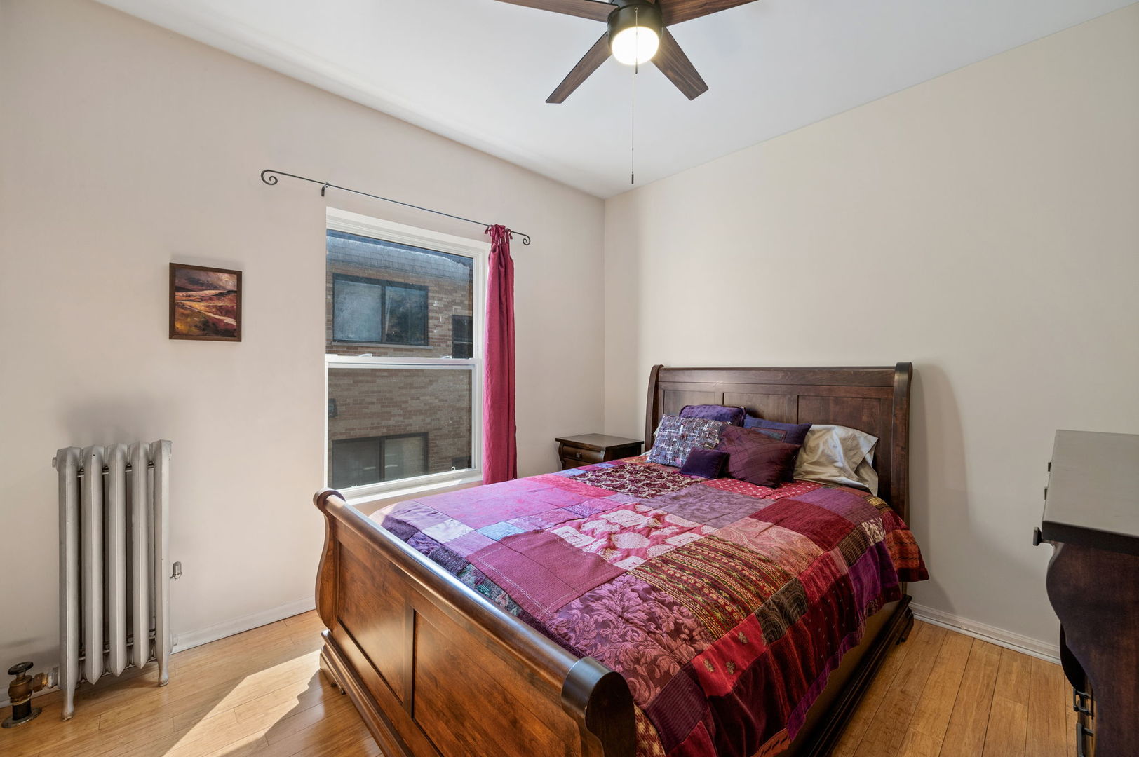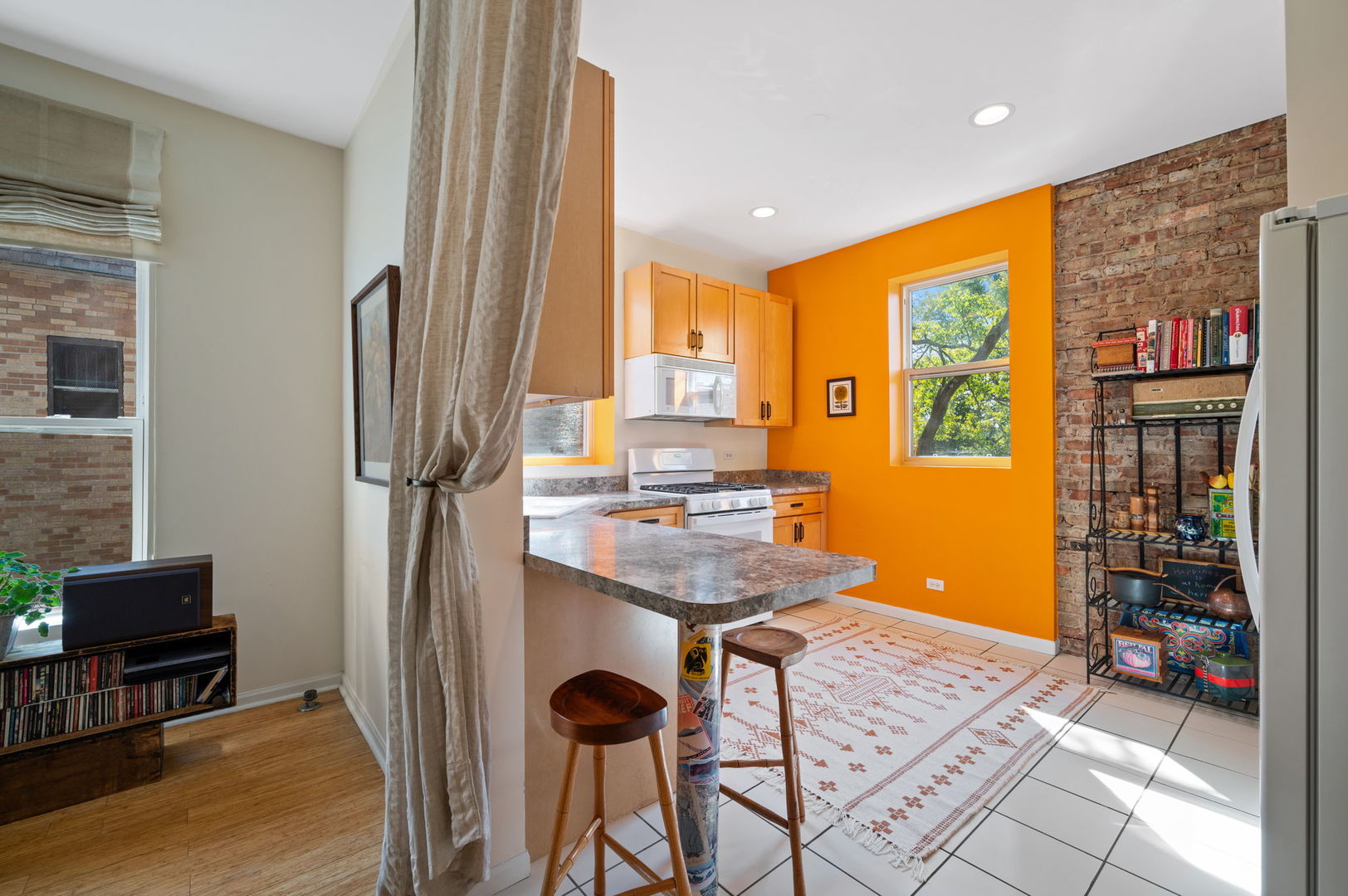 ***MULTIPLE OFFERS RECEIVED. HIGHEST AND BEST CALLED FOR BY MONDAY, OCTOBER 20TH @ 12 NOON. NO ESCALATION CLAUSES OR LOVE LETTERS.*** Nestled on the leafy streets of Rogers Park is this spacious, top floor corner unit. Manresa Terrace is one of Rogers Park’s most coveted all-brick vintage buildings, known for its rare gated parking, large storage units, and beautifully landscaped rear balconies. Step into this light-filled 2BR/1BA residence blending vintage character with modern updates for effortless city living. The large living room offers just the right touch of exposed brick, a cozy gas fireplace (updated in 2015), and plenty of room to relax or entertain. Just off the living room is a bright 3-season room to catch the east-west breezes from Lake Michigan. A flexible open floor plan connects to the dining area and kitchen-featuring maple cabinetry, a Bosch dishwasher, LG refrigerator, GE range with griddle (2022), and a microwave. From the kitchen, step out to your sunny, private deck-perfect for morning coffee or dining al fresco. Both bedrooms are generously sized and have great closet space. Additional highlights include bamboo wood flooring throughout, in-unit washer/dryer, and a refreshed bathroom that includes updated fixtures and a Grohe hand shower (2020). Most of the condo was freshly painted in 2025. One assigned gated parking space and a large two-section storage locker (approx. 8’4″ x 9′ and 9′ x 3’4″) are included. Heat is included in the monthly assessment, along with water, trash/recycling, snow removal, and common-area maintenance. The pet-friendly, professionally managed association is 93% owner-occupied with healthy reserves (~$97,000) and no planned specials. Recent building improvements include parapet wall tuckpointing (August 2025) and roof maintenance (August 2025), with additional brickwork scheduled for Spring 2026. Ideally located just three blocks to the Red Line, two blocks to the Metra, and a short walk to Lake Michigan, this home offers the perfect blend of space, comfort, and convenience.