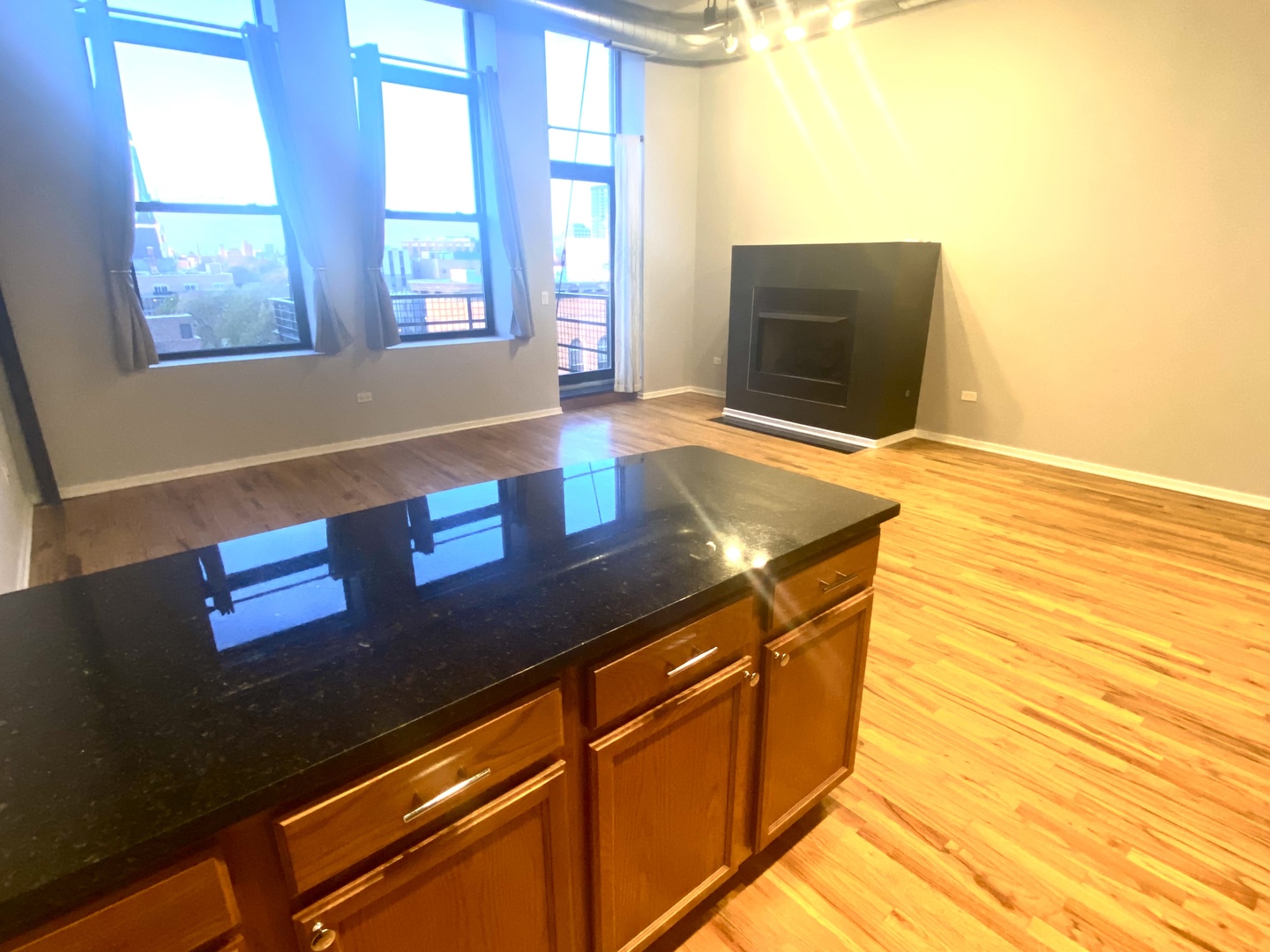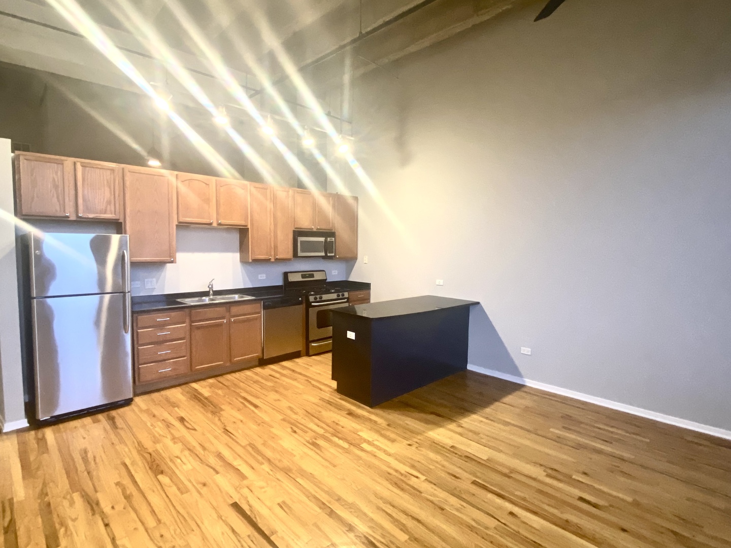 Fantastic one bedroom plus den loft in the West Loop. Features include: 13 foot ceilings, hardwood floors, SS appliances, granite counter tops, island, in unit washer/dryer, balcony. Building amenities: community rooftop deck on 7th floor, exercise room on 1st floor, party room on the 3rd floor, 24 hour door staff, Tide dry-cleaning service, on-site property manager, maintenance staff, receiving room. Close to medical district, downtown, United Center, Randolph St. restaurants, expressways, CTA transportation, Skinner Park. Unit sold as is.