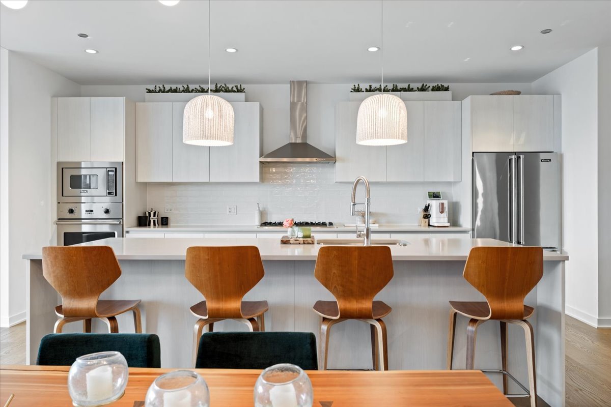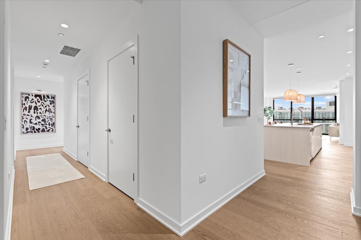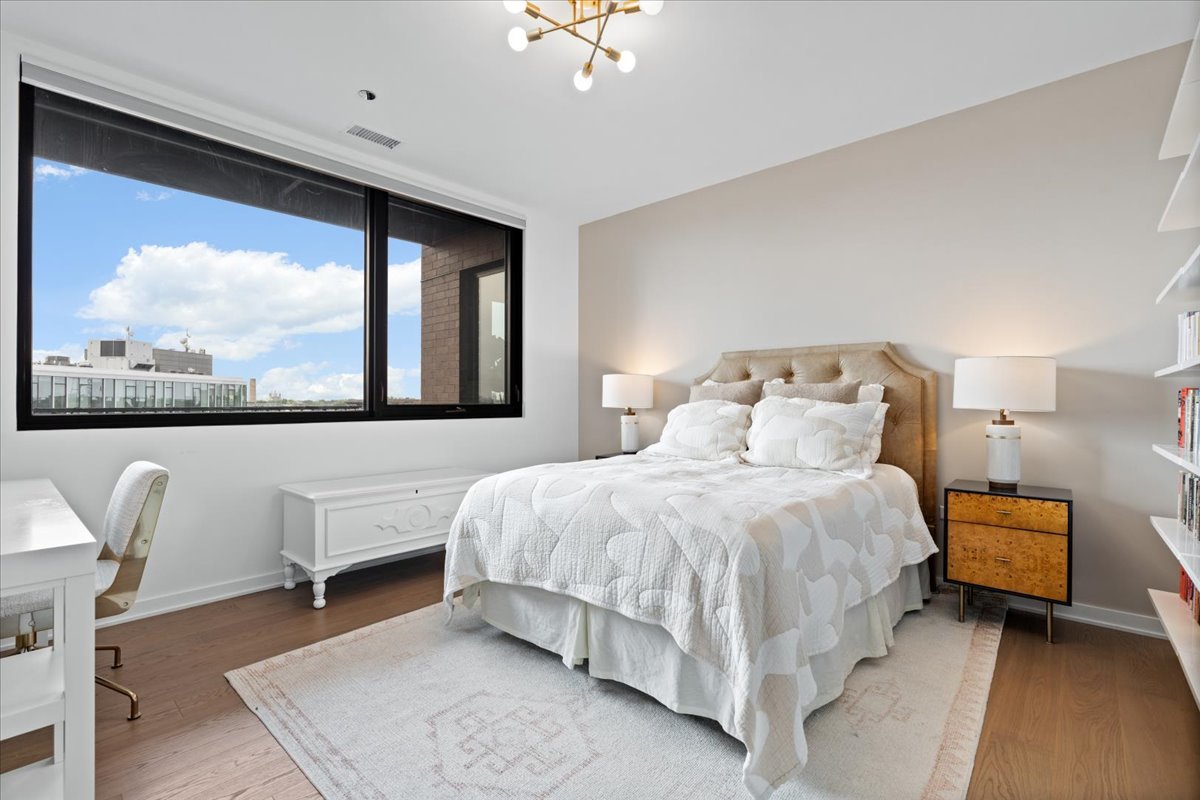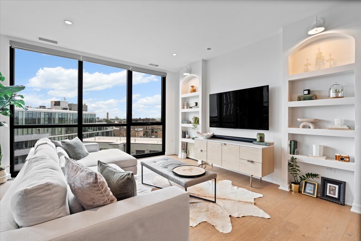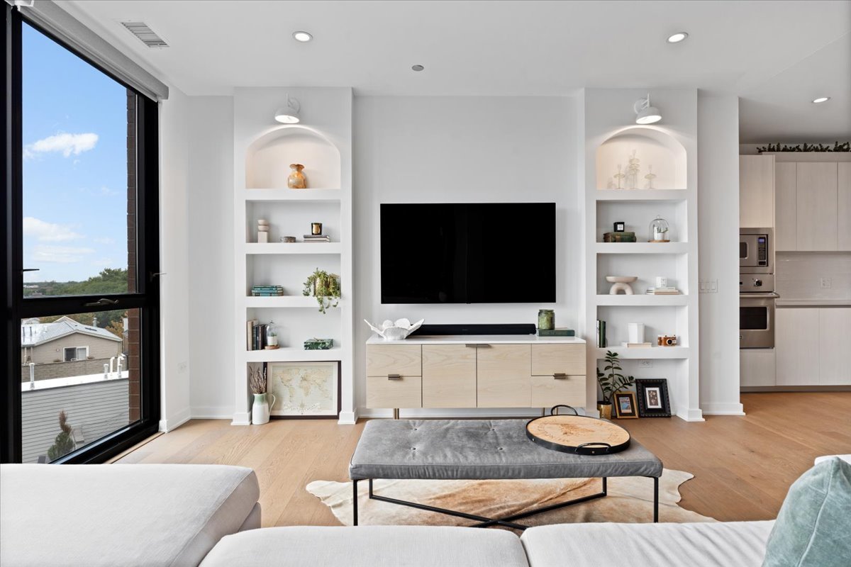 Set within Alcove, a boutique all-brick elevator building tucked behind a private courtyard, this luxurious 4-bedroom, 3.5-bath home offers the perfect blend of vibrant city living and serene privacy. Just steps from the Blue Line, acclaimed restaurants and shopping, this spacious 2,365-SF corner unit features a large private balcony and access to a common rooftop deck with skyline views. Every detail of this home has been elevated with thoughtful, high-end customizations. A stunning fluted marble dry bar framed by a custom archway serves as a show-stopping centerpiece, while composite decking transforms the private balcony into a polished outdoor retreat. Inside, bespoke living room built-ins, designer lighting, and custom window treatments throughout. The chef’s kitchen boasts Viking stainless steel appliances, Italian cabinetry, and quartz countertops, seamlessly connecting to the expansive open concept living and dining areas. Primary suite with two closets, large ensuite bathroom with free standing soaking tub. Additional guest suite with ensuite bathroom and walk-in closet. Two additional large bedrooms with custom chair rail molding and third full bath. All closets finished with custom buildouts. Additional highlights include wide-plank wood flooring, large, fully organized, walk-in pantry, smart home capabilities, and a fully finished laundry room with built-in cabinetry and folding counter. This residence isn’t just move-in ready, it’s meticulously designed for the way you live, offering unmatched comfort, style, and location in one of Chicago’s most sought-after neighborhoods. Garage parking and addl’ storage included.