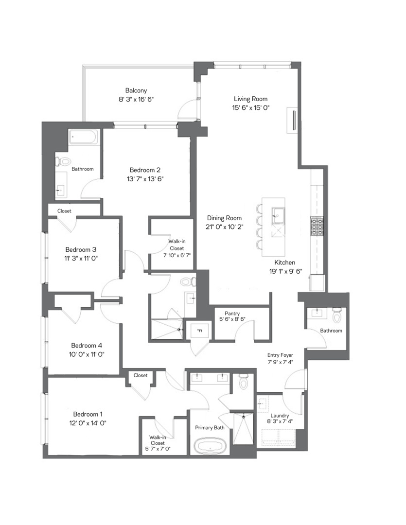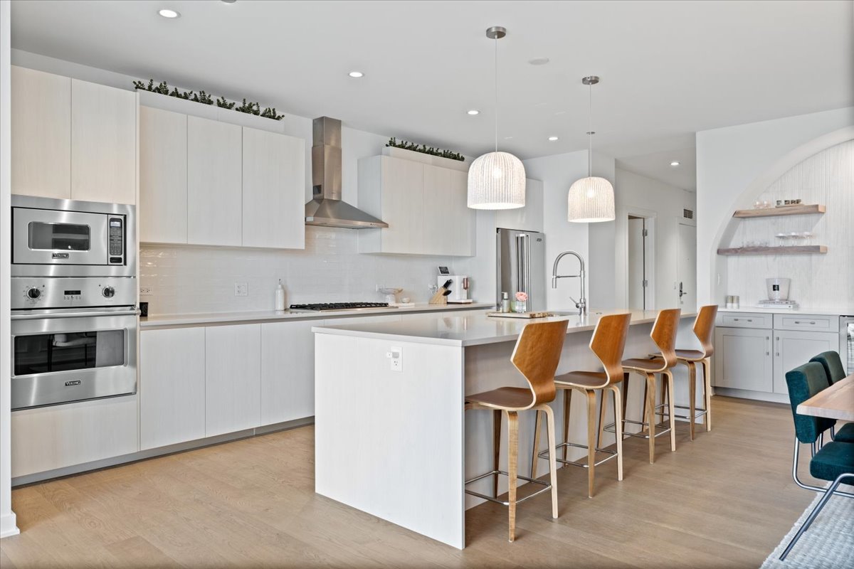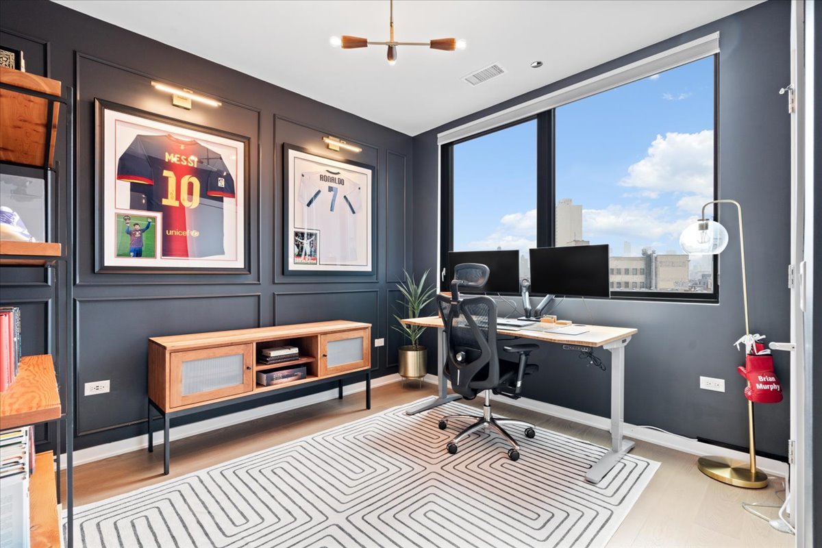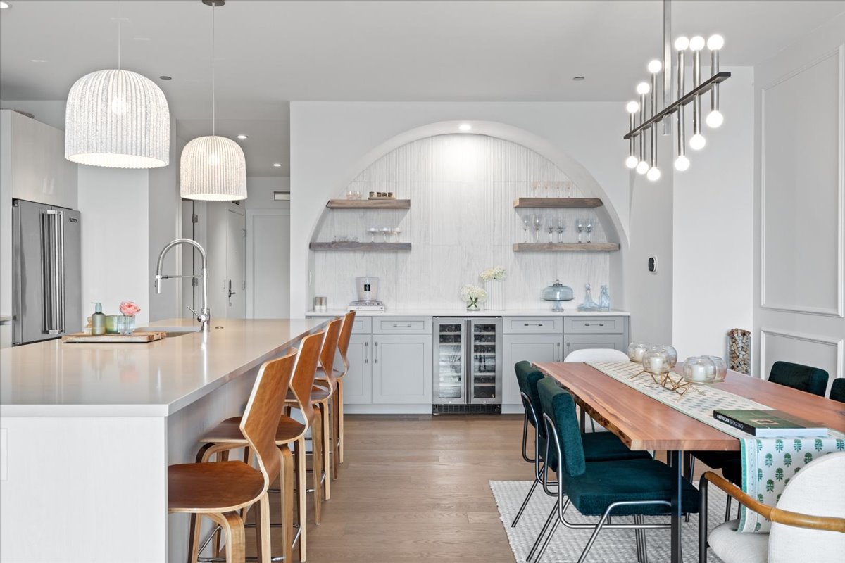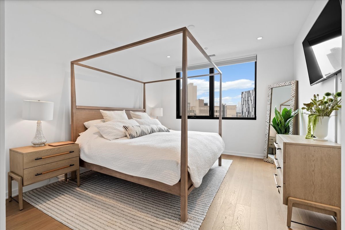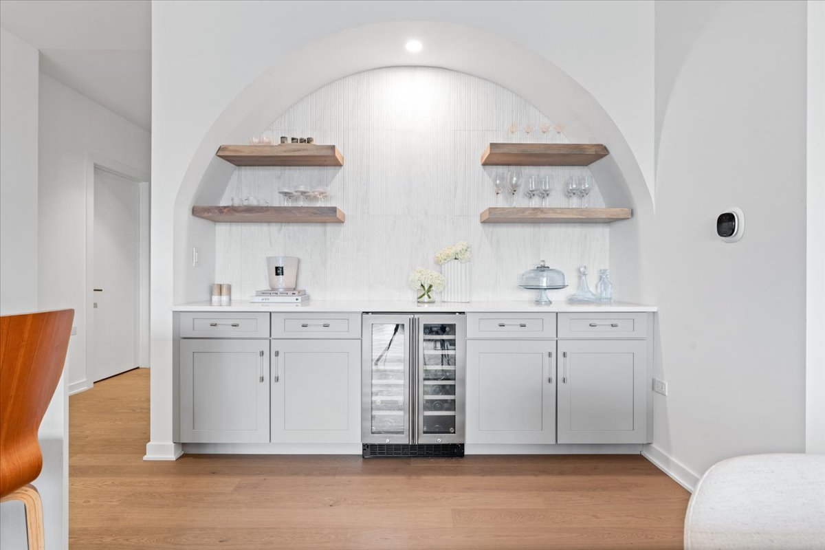 Set within Alcove, a boutique all-brick elevator building tucked behind a private courtyard, this luxurious 4-bedroom, 3.5-bath home offers the perfect blend of vibrant city living and serene privacy. Just steps from the Blue Line, acclaimed restaurants and shopping, this spacious 2,365-SF corner unit features a large private balcony and access to a common rooftop deck with skyline views. Every detail of this home has been elevated with thoughtful, high-end customizations. A stunning fluted marble dry bar framed by a custom archway serves as a show-stopping centerpiece, while composite decking transforms the private balcony into a polished outdoor retreat. Inside, bespoke living room built-ins, designer lighting, and custom window treatments throughout. The chef’s kitchen boasts Viking stainless steel appliances, Italian cabinetry, and quartz countertops, seamlessly connecting to the expansive open concept living and dining areas. Primary suite with two closets, large ensuite bathroom with free standing soaking tub. Additional guest suite with ensuite bathroom and walk-in closet. Two additional large bedrooms with custom chair rail molding and third full bath. All closets finished with custom buildouts. Additional highlights include wide-plank wood flooring, large, fully organized, walk-in pantry, smart home capabilities, and a fully finished laundry room with built-in cabinetry and folding counter. This residence isn’t just move-in ready, it’s meticulously designed for the way you live, offering unmatched comfort, style, and location in one of Chicago’s most sought-after neighborhoods. Garage parking and addl’ storage included.