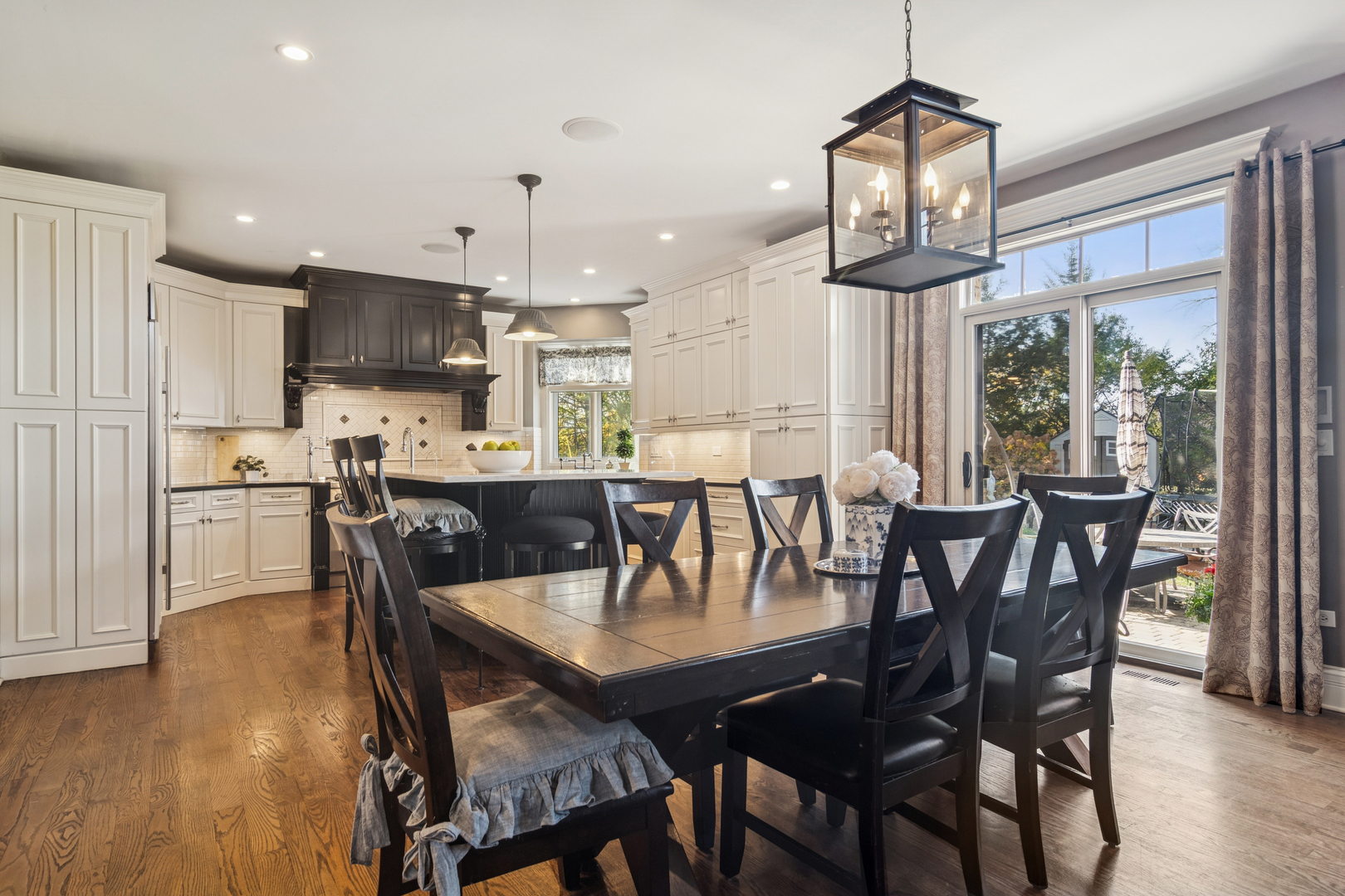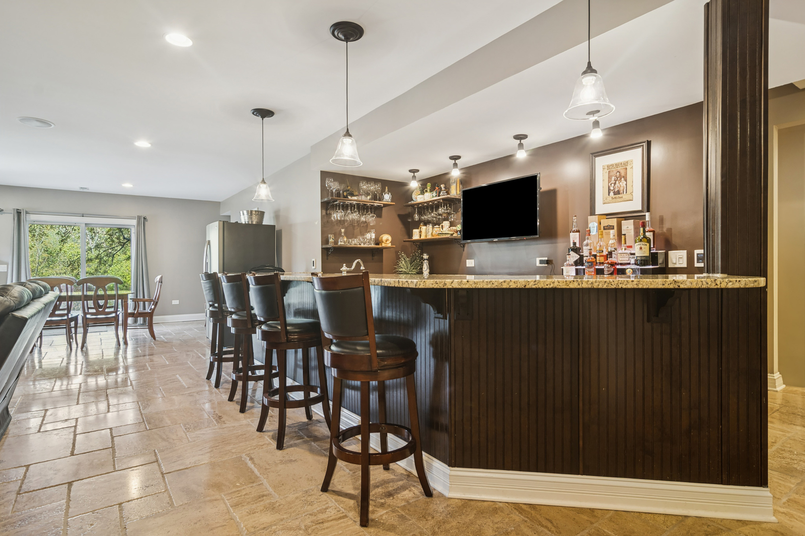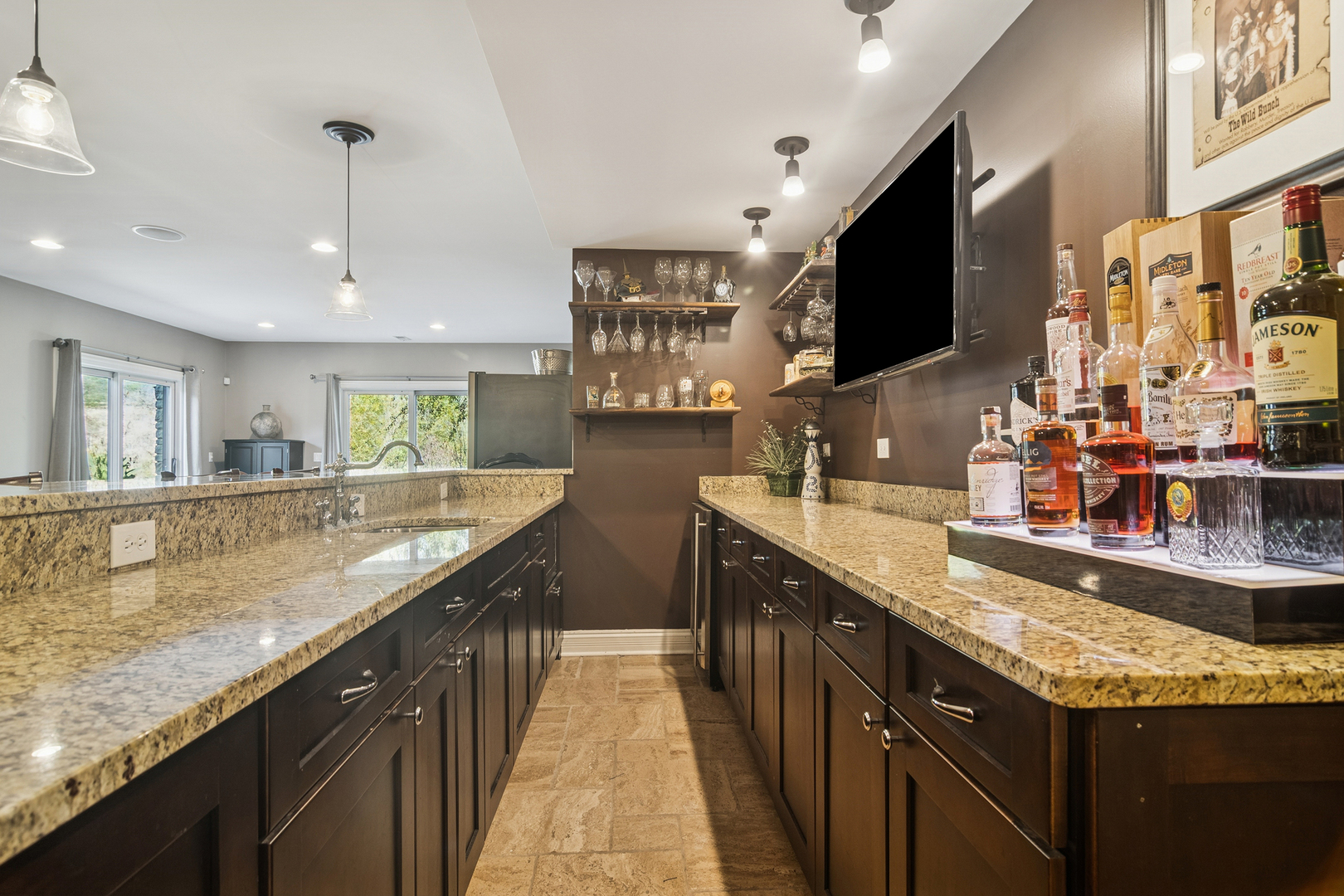 Experience timeless sophistication and contemporary convenience in this stunning 6,577-square-foot residence on 1.29 acres, ideally located in the serene North Barrington community, Haverton on the Pond. Meticulously maintained, this fully brick home offers five bedrooms, four full bathrooms, and two half-bathrooms, seamlessly blending refined design with everyday functionality. Step inside the grand foyer, where a grand staircase with wrought iron spindles, soaring two-story ceilings, and stunning dark hardwood throughout the main and second levels set the tone for the home’s elegance. The gourmet kitchen impresses with a large marble island and slick black granite countertops, custom soft-close cabinetry, reverse osmosis water filtration, and high-end appliances including a Sub-Zero refrigerator and Thermador Professional gas range with 6 burners and a griddle-perfect for the passionate home chef. Around the corner, the butler’s pantry features matching cabinetry and countertops to the kitchen, a wet bar, and beverage fridge. The eat-in kitchen and breakfast room with access to the patio seamlessly combine into the expansive two-story living room, centered around a stone gas fireplace, creating an inviting space for both relaxation and entertaining. The dining room and living room showcase stunning crown moldings and wainscoting, and the library/office features french doors, built-in bookshelves, wainscoting and coffered ceilings. Convenience abounds with a main-level laundry/mudroom-doubling as a half bath-equipped with Whirlpool washer/dryer, stone counters and floors, custom cabinetry, sink, built-in cubbies, and direct garage access. The primary suite offers a private sanctuary, featuring a gas fireplace with a granite hearth and built-ins, wet bar with travertine countertops, a luxurious spa bathroom with a jetted Whirlpool tub, large steam shower, heated stone floors, separate vanities with custom cabinetry and travertine countertops, and enormous walk-in closet with an adjacent private workout room for ultimate convenience. Upstairs, three additional bedrooms with vaulted ceilings and walk-in closets include one ensuite with limestone vanity and shower/tub combo, plus two sharing a thoughtfully designed Jack-and-Jill bath with marble countertops, shower/tub, and a separate toilet room behind a pocket door; one of these bedrooms also enjoys a charming third-story loft with hardwood floors. The fifth bedroom is located in the fully finished walkout basement. The walkout basement also features a full bathroom, stylish full bar with granite countertops, a wine cooler, microwave, and heated stone floors, a living area with a gas fireplace, wine cellar, and a dedicated media/theatre room. The four-car garage, professionally epoxy sealed and gas heated, offers ample space for vehicles and storage. Outdoors, the beautiful professionally landscaped yard features irrigation and landscape lighting systems, and a brand-new asphalt driveway with concrete ribbon enhancing the overall curb appeal. Enjoy breathtaking sunset views over the pond from the two brick paver patios connecting the main and lower levels with gorgeous brick and stone steps. Additional exterior features include a gas grill hookup, invisible fence, spring-free trampoline, and she-shed-all included in the sale. Located just 35 miles from Chicago, minutes from shopping, dining, and everyday conveniences, less than a 10-minute drive to Downtown Barrington and the Metra station, and in the highly awarded Barrington School District 220, 165 Haverton Way offers an extraordinary combination of luxury and practicality. Schedule your private tour today-this North Barrington masterpiece won’t last long.