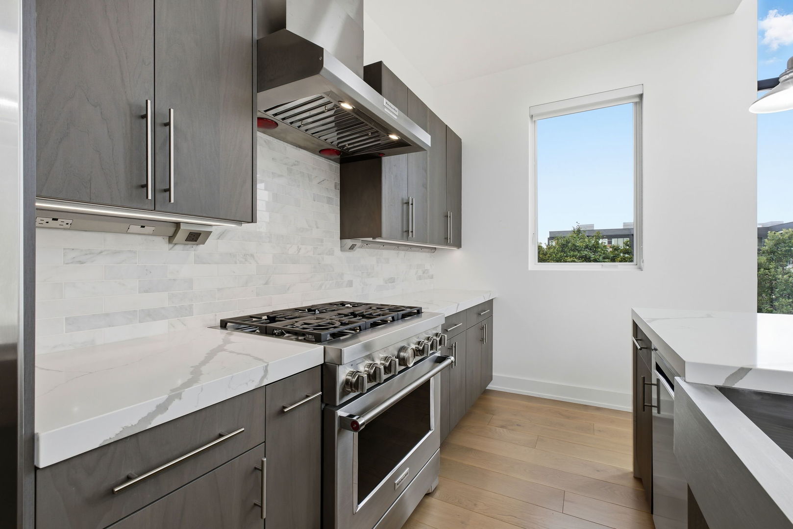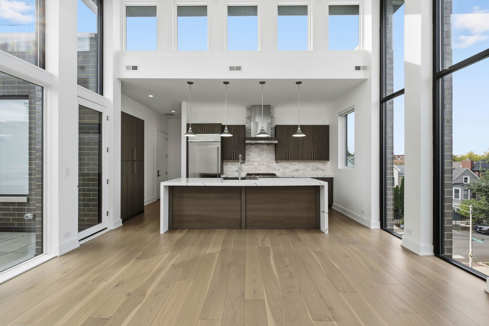 Newer construction penthouse unit, 3 bedroom, 3 bath condominium recently built with modern and eloquent refinements in the heart of Lincoln Park. This 1,600 sq ft + all brick and concrete constructed unit offers exceptional sound control and solid construction. The unit features 20+ foot ceilings in the main living and kitchen areas with floor to ceiling windows offering abundance of natural light for a contemporary luxury lifestyle. The private balcony extends the living area outdoors, perfect for morning coffee or an evening cocktail with plenty of space for private outdoor grilling. The chef’s kitchen with modern cabinetry, new stainless appliances and a waterfall island are stunning. The well-sized primary suite offers a serene retreat with his and her spacious walk-in closets and a spa-like bath featuring heated floors and high-end fixtures and finishes. The second and third bedrooms offers space for kids or are perfect for an artist studio or home offices. The unit offers classic hardwood oak floors throughout, automatic window treatments, zoned HVAC units, smart thermostats, and in-unit laundry. Building offers a large roof top deck within the common area and very low HOA fees. The home also includes an assigned parking space in a secure garage. Unit located just steps from Wrightwood park, shopping, entertainment options as well as Prescott Elementary School. This is a must see opportunity.