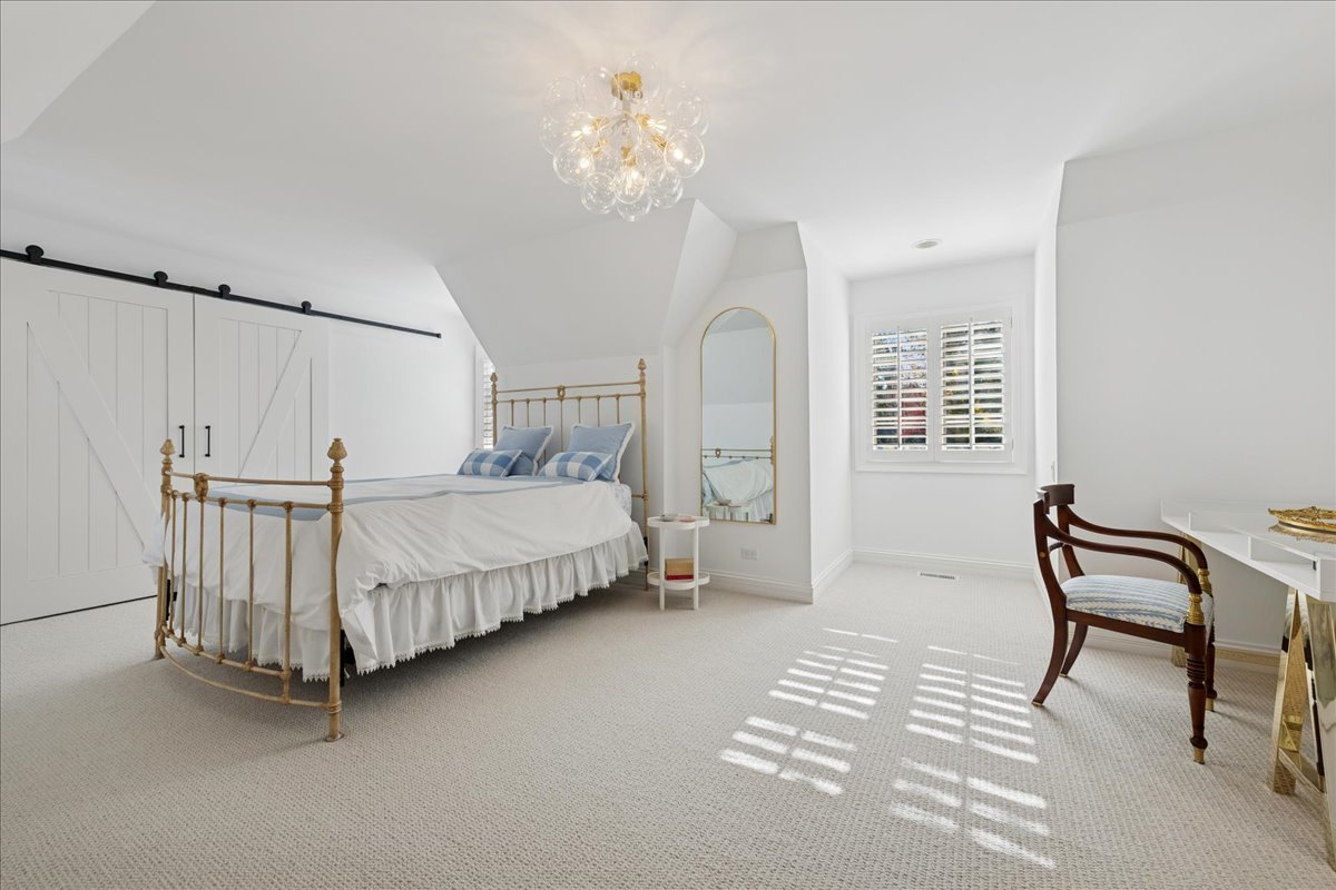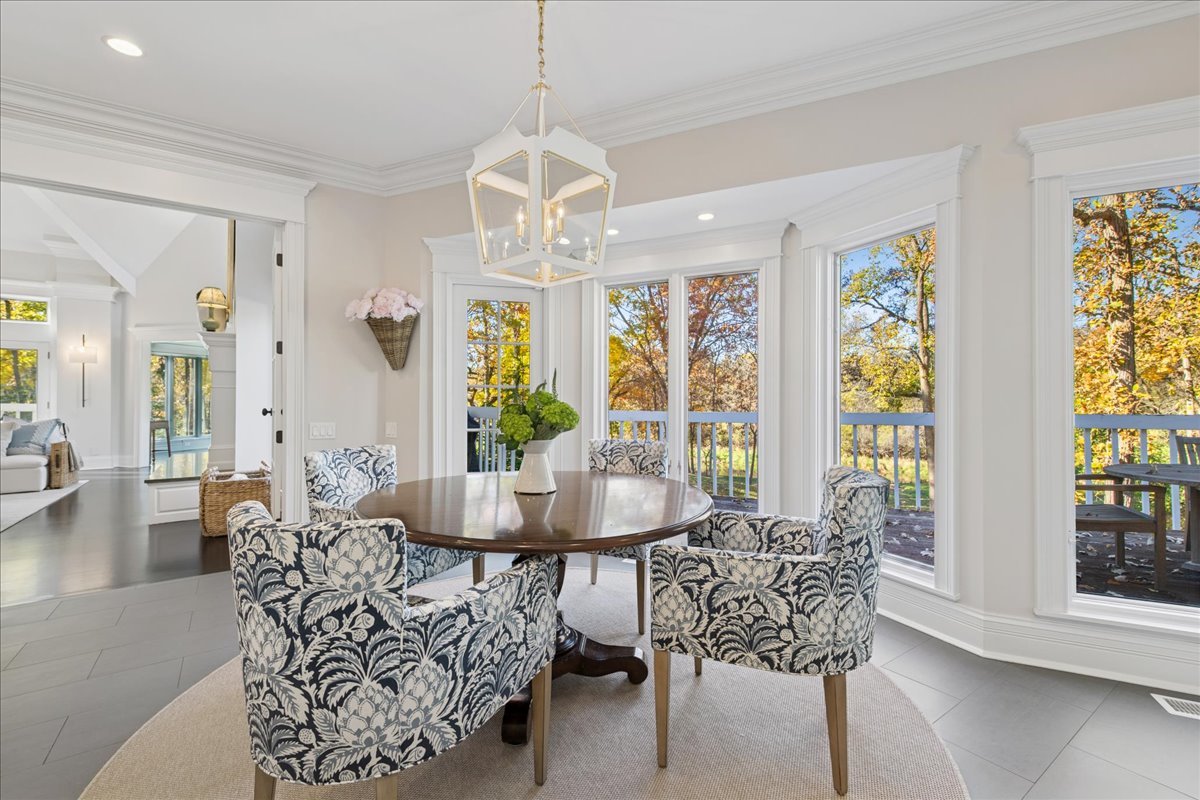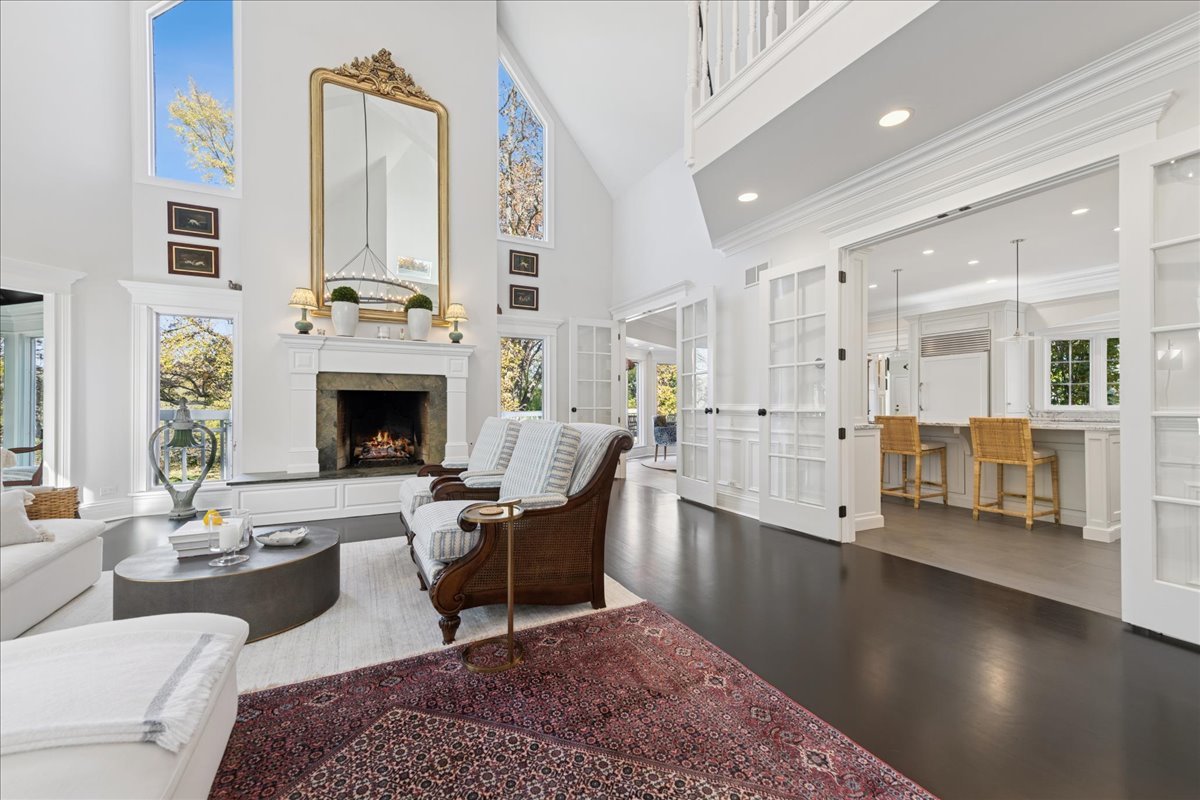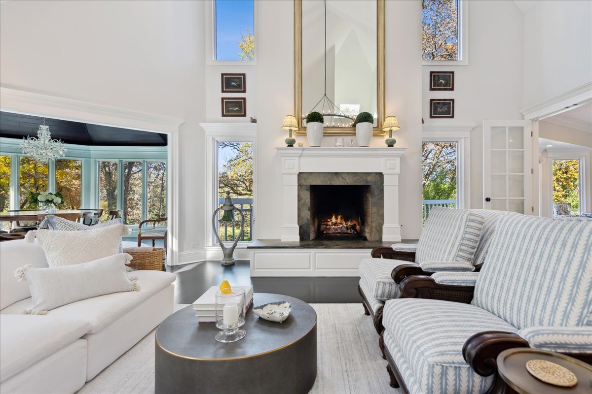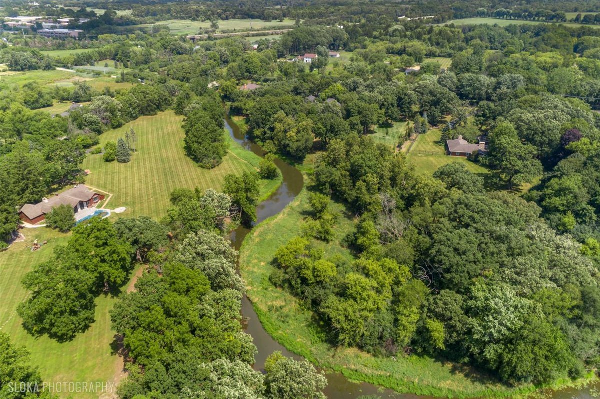 Charming French Country estate in the heart of Barrington Hills. This exquisite residence offers 5 bedrooms, 5.2 baths, and sophisticated architecture rich in classic detailing, yet crafted for a modern luxury lifestyle. Designer lighting, custom millwork, and high-end finishes are showcased throughout. A circular drive sets the tone as lush gardens, mature trees, and grassy expanses open to Flint Creek-with direct access to equestrian riding trails-creating a peaceful nature retreat just minutes to town, train, dining and District 220 schools. Inside, a dramatic two-story foyer reveals sightlines to the picturesque rear grounds and a stunning great room with soaring ceilings, gas fireplace, balcony overlook, and a triple set of doors to the deck, creating a warm family gathering space. A spectacular hexagon dining room features a vaulted wood-plank ceiling and panoramic views of Flint Creek-perfect for sophisticated entertaining. The gourmet kitchen is every chef’s dream with custom cabinetry, marble counters, massive island, walk-in pantry, and top-tier appliances. Adjacent breakfast room with radiant heated floors opens directly to the expansive deck for morning coffee or alfresco dining. The main floor primary suite is a private sanctuary with spa bath (steam shower + soaking tub), dual custom walk-in closets, a large sitting room / office, and a serene screened porch allowing for one floor luxury living. Also on the main level is a second ensuite bedroom with private deck, mudroom with service entrance, two powder rooms, and laundry. The second floor offers beautiful architectural character with balcony overlook, two additional bedrooms with dormers, updated shared bath, and a flex office/nursery with skylight. A private rear staircase leads to a full guest / in-law / au pair suite with radiant heated bath. Expansive walkout lower level is built for entertaining and everyday living with a huge recreation room with fireplace, wet bar with sitting area, exercise and game rooms, and full bath. Attached, heated 3-car garage with epoxy floors and storage. A serene setting with breathtaking views of Flint Creek and the surrounding landscape where you can enjoy nature, privacy, water views, and Barrington Hills lifestyle all in one extraordinary property.