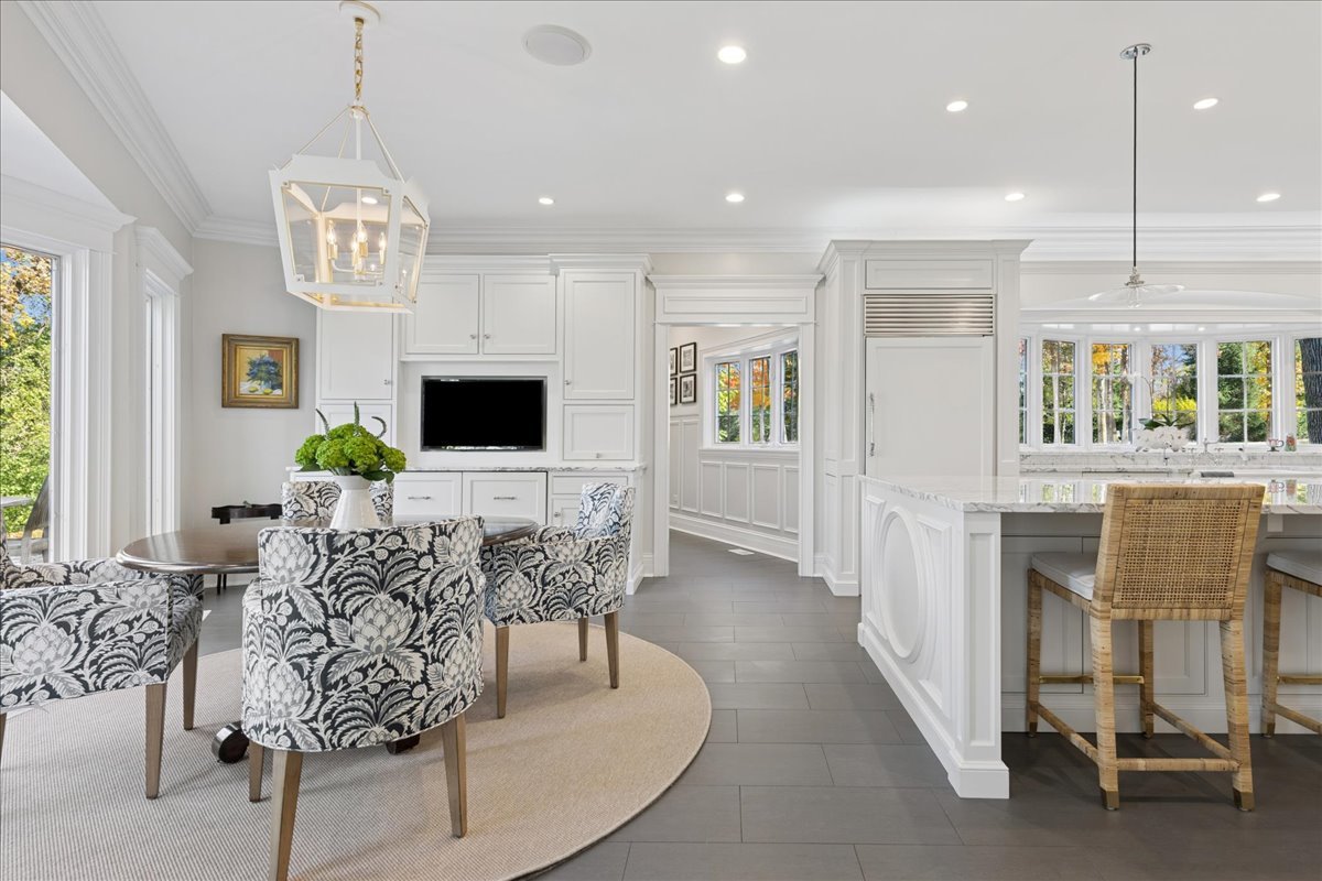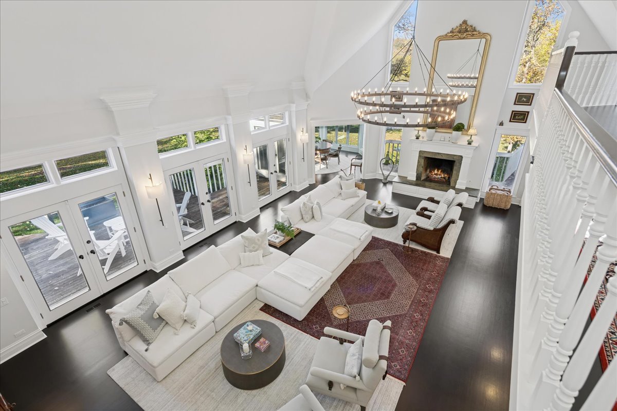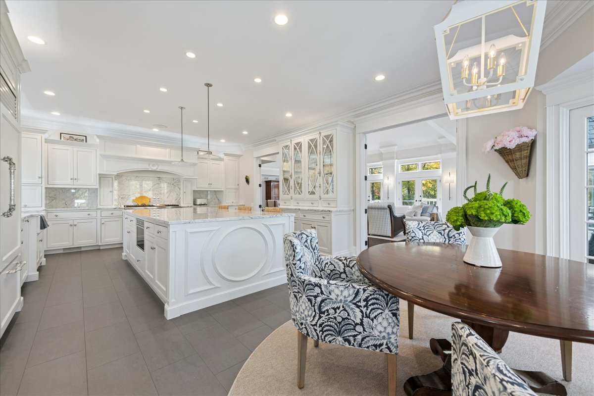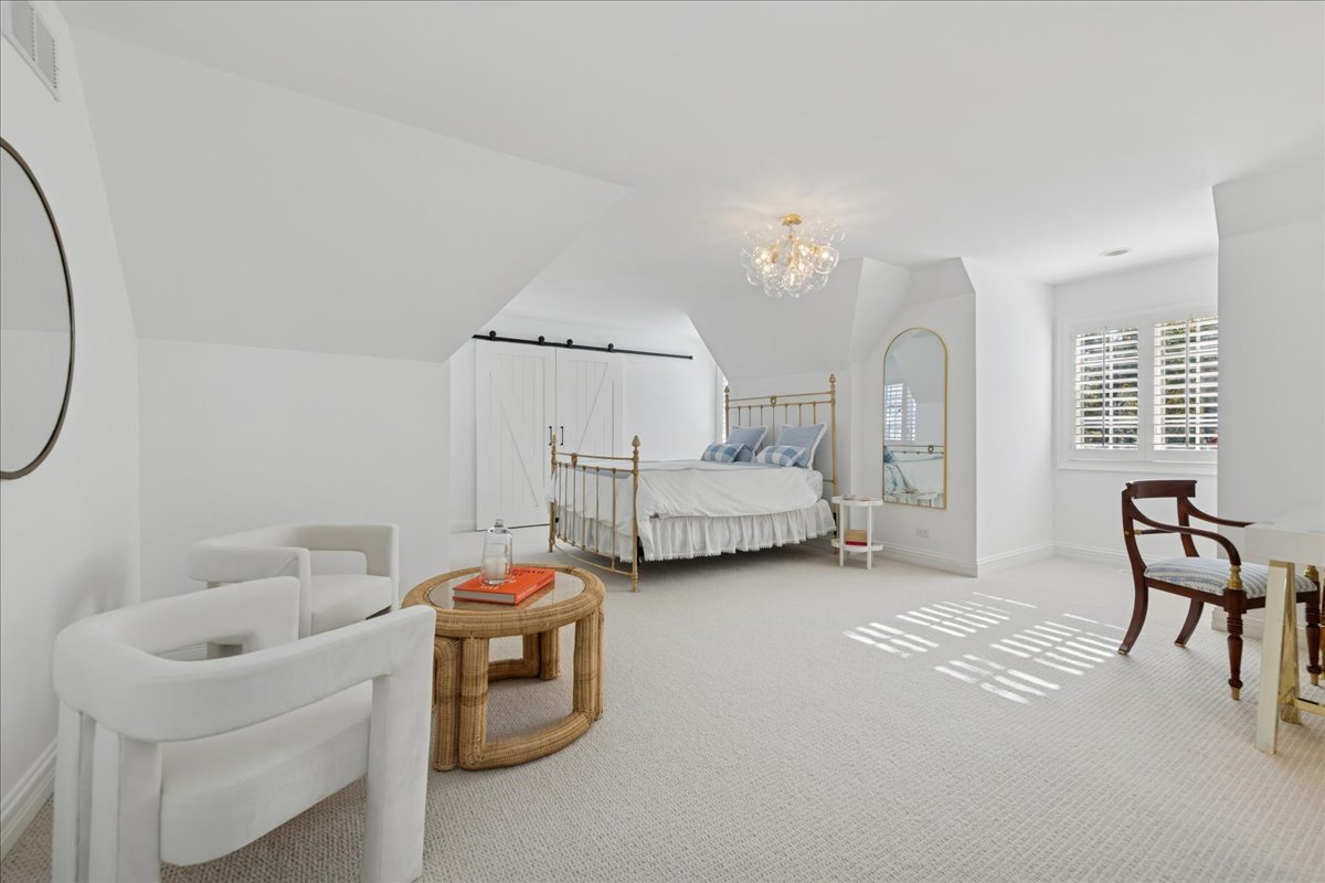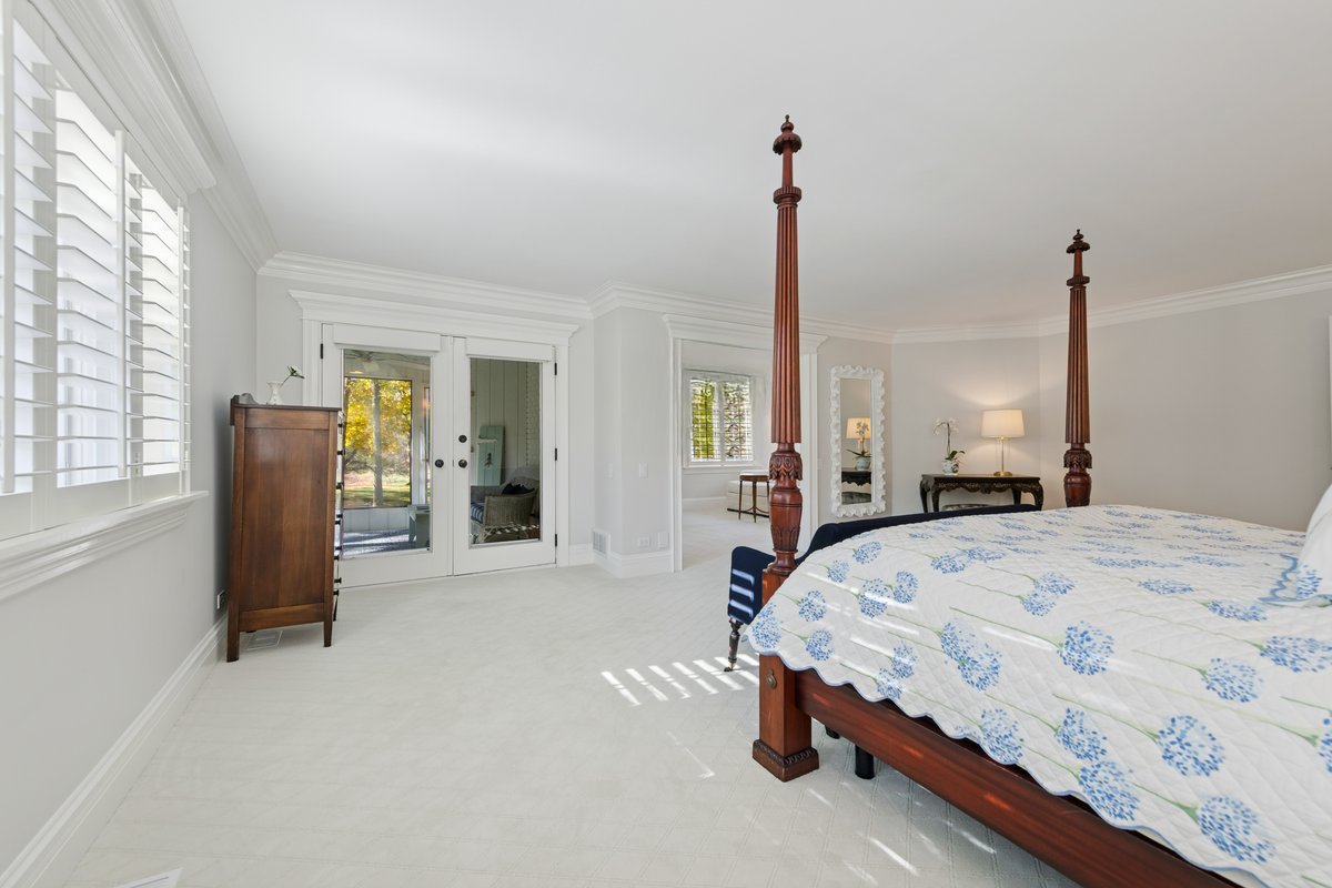 Charming French Country estate in the heart of Barrington Hills. This exquisite residence offers 5 bedrooms, 5.2 baths, and sophisticated architecture rich in classic detailing, yet crafted for a modern luxury lifestyle. Designer lighting, custom millwork, and high-end finishes are showcased throughout. A circular drive sets the tone as lush gardens, mature trees, and grassy expanses open to Flint Creek-with direct access to equestrian riding trails-creating a peaceful nature retreat just minutes to town, train, dining and District 220 schools. Inside, a dramatic two-story foyer reveals sightlines to the picturesque rear grounds and a stunning great room with soaring ceilings, gas fireplace, balcony overlook, and a triple set of doors to the deck, creating a warm family gathering space. A spectacular hexagon dining room features a vaulted wood-plank ceiling and panoramic views of Flint Creek-perfect for sophisticated entertaining. The gourmet kitchen is every chef’s dream with custom cabinetry, marble counters, massive island, walk-in pantry, and top-tier appliances. Adjacent breakfast room with radiant heated floors opens directly to the expansive deck for morning coffee or alfresco dining. The main floor primary suite is a private sanctuary with spa bath (steam shower + soaking tub), dual custom walk-in closets, a large sitting room / office, and a serene screened porch allowing for one floor luxury living. Also on the main level is a second ensuite bedroom with private deck, mudroom with service entrance, two powder rooms, and laundry. The second floor offers beautiful architectural character with balcony overlook, two additional bedrooms with dormers, updated shared bath, and a flex office/nursery with skylight. A private rear staircase leads to a full guest / in-law / au pair suite with radiant heated bath. Expansive walkout lower level is built for entertaining and everyday living with a huge recreation room with fireplace, wet bar with sitting area, exercise and game rooms, and full bath. Attached, heated 3-car garage with epoxy floors and storage. A serene setting with breathtaking views of Flint Creek and the surrounding landscape where you can enjoy nature, privacy, water views, and Barrington Hills lifestyle all in one extraordinary property.