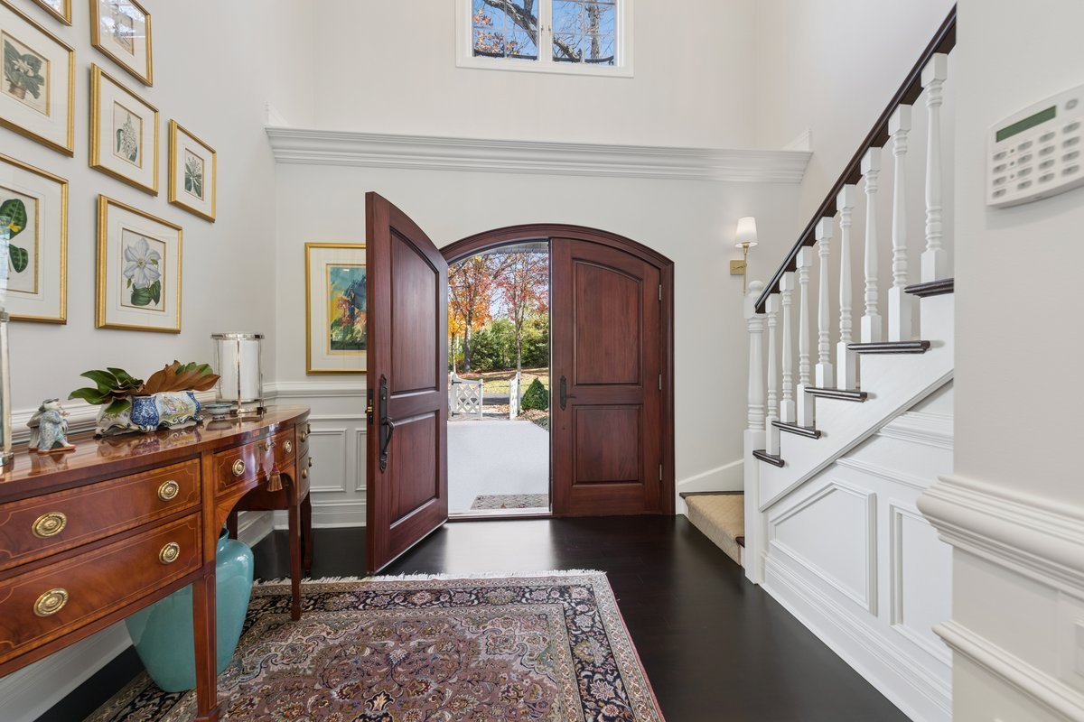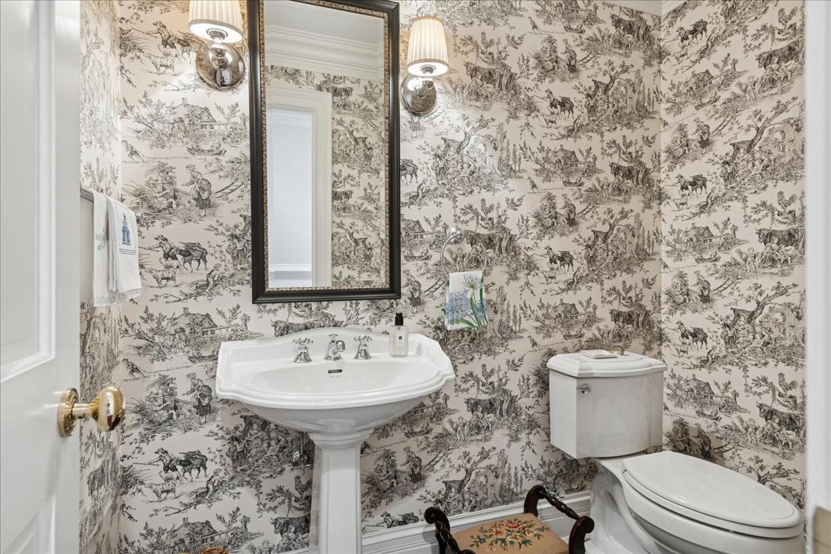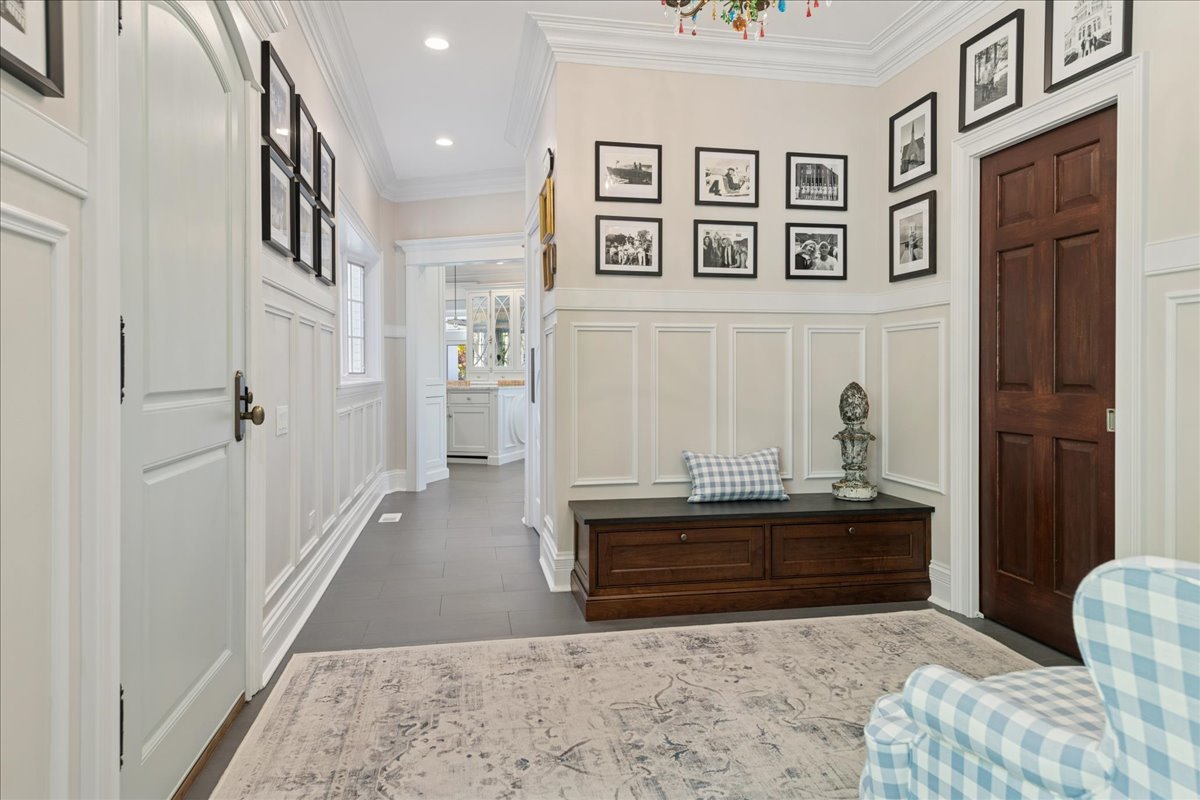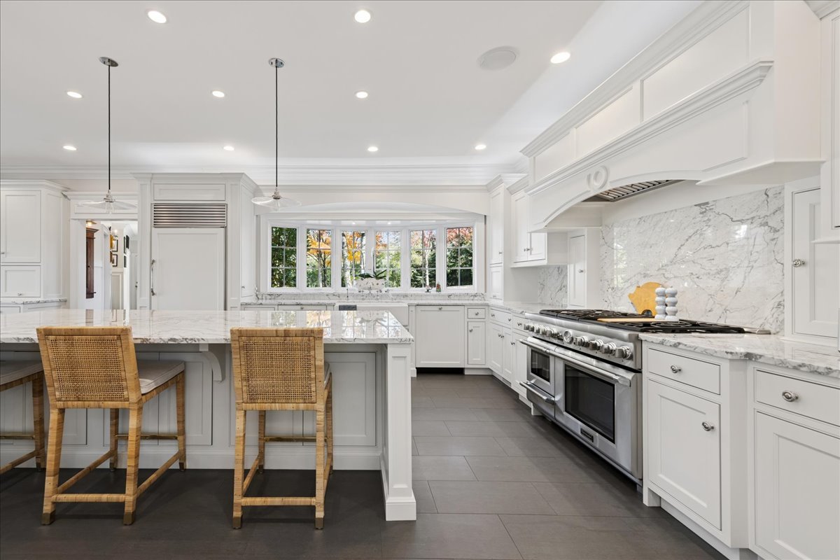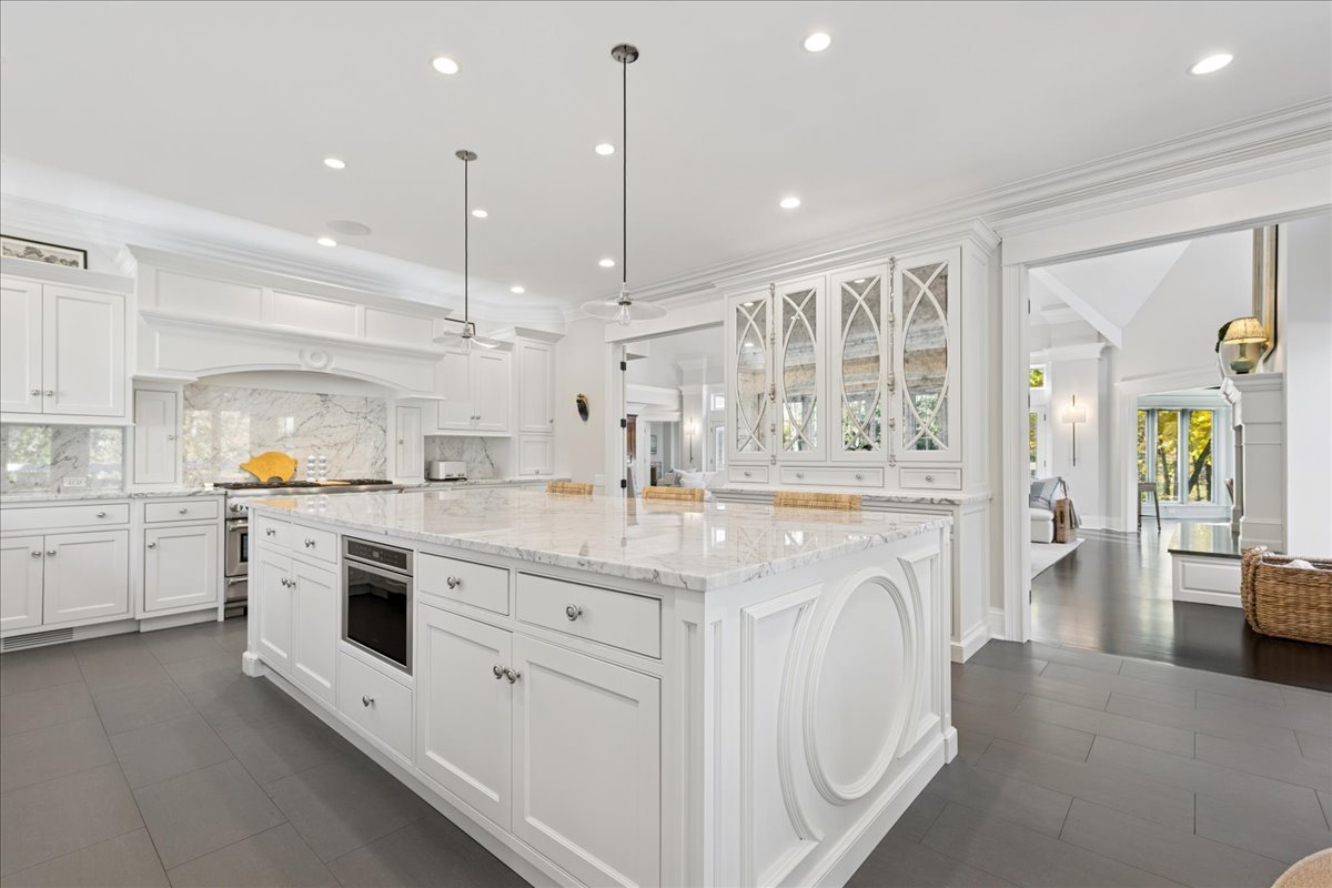 Charming French Country estate in the heart of Barrington Hills. This exquisite residence offers 5 bedrooms, 5.2 baths, and sophisticated architecture rich in classic detailing, yet crafted for a modern luxury lifestyle. Designer lighting, custom millwork, and high-end finishes are showcased throughout. A circular drive sets the tone as lush gardens, mature trees, and grassy expanses open to Flint Creek-with direct access to equestrian riding trails-creating a peaceful nature retreat just minutes to town, train, dining and District 220 schools. Inside, a dramatic two-story foyer reveals sightlines to the picturesque rear grounds and a stunning great room with soaring ceilings, gas fireplace, balcony overlook, and a triple set of doors to the deck, creating a warm family gathering space. A spectacular hexagon dining room features a vaulted wood-plank ceiling and panoramic views of Flint Creek-perfect for sophisticated entertaining. The gourmet kitchen is every chef’s dream with custom cabinetry, marble counters, massive island, walk-in pantry, and top-tier appliances. Adjacent breakfast room with radiant heated floors opens directly to the expansive deck for morning coffee or alfresco dining. The main floor primary suite is a private sanctuary with spa bath (steam shower + soaking tub), dual custom walk-in closets, a large sitting room / office, and a serene screened porch allowing for one floor luxury living. Also on the main level is a second ensuite bedroom with private deck, mudroom with service entrance, two powder rooms, and laundry. The second floor offers beautiful architectural character with balcony overlook, two additional bedrooms with dormers, updated shared bath, and a flex office/nursery with skylight. A private rear staircase leads to a full guest / in-law / au pair suite with radiant heated bath. Expansive walkout lower level is built for entertaining and everyday living with a huge recreation room with fireplace, wet bar with sitting area, exercise and game rooms, and full bath. Attached, heated 3-car garage with epoxy floors and storage. A serene setting with breathtaking views of Flint Creek and the surrounding landscape where you can enjoy nature, privacy, water views, and Barrington Hills lifestyle all in one extraordinary property.