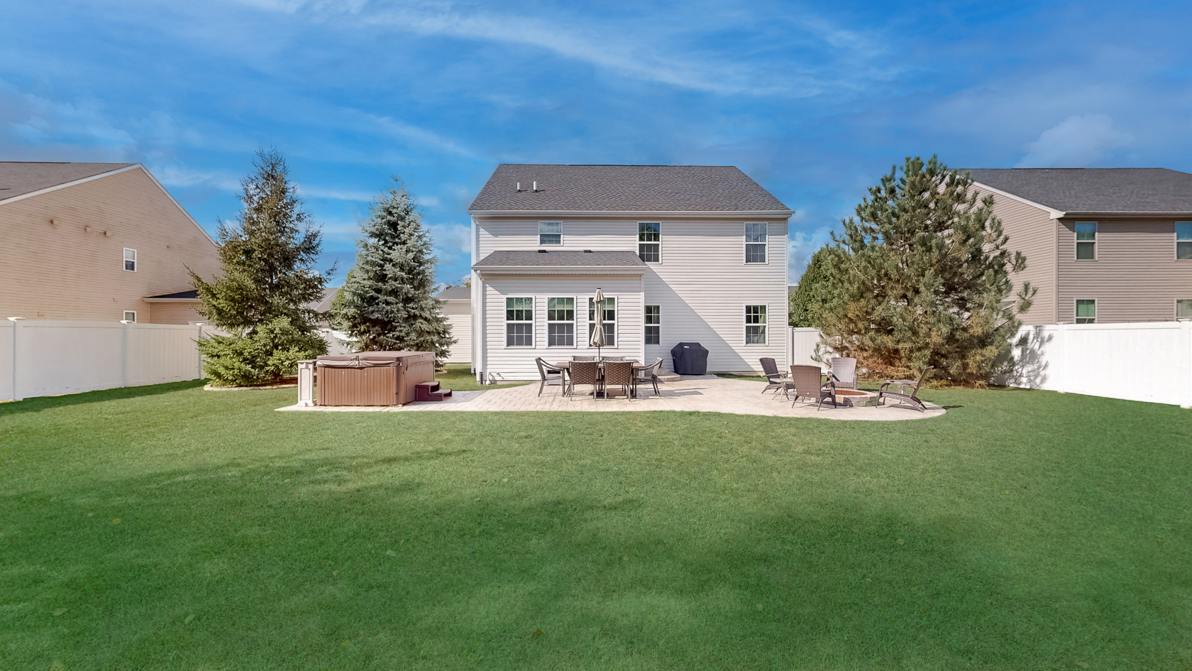 The Home That Has It All – And Then Some – Imagine coming home to a space that feels like a private retreat yet was built for entertaining. This 4-bed, 2 full, 2 half bath beauty with 2678 sq. ft. and a 3-car garage offers comfort, style, and surprises around every corner. Step inside and you’ll immediately notice elegant lighting, and a spacious kitchen featuring granite countertops, stainless steel appliances, a center island, and can lighting that make every meal a pleasure. A breakfast room opens to the family room with a gas fireplace and surround sound, perfect for movie nights or game days. The professionally finished basement is an entertainer’s dream: complete with a wet bar, second refrigerator, half bath, and built-in surround sound for parties, movie or game nights. Out back, unwind on your stamped concrete patio with built-in fire pit, or soak under the stars in your hot tub, surrounded by a fenced yard with serene views of open space. Upstairs, the primary suite invites you to relax with dual closets, a spa-inspired bath, soaking tub, and separate shower-a true retreat at the end of the day. Three additional large bedrooms offer space for everyone to live, work, and play. From the formal living and dining rooms to the flowing open-concept design, this home shows like a model and feels even better in person with zoned heating & cooling. Curious? There’s more to discover! Schedule a private tour before this one-of-a-kind home disappears.