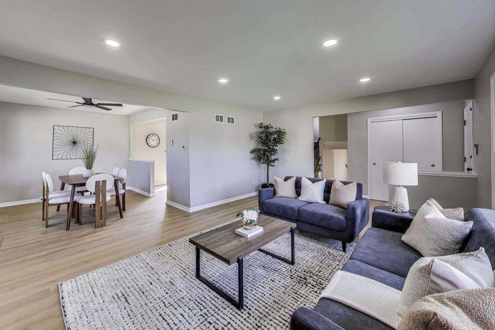 Step into this beautifully updated quad-level home offering 3 bedrooms, 2 full baths, plus the option for a 4th bedroom or flex space off the lower-level family room. Featuring brand-new flooring, including original hardwood in the bedrooms, fresh paint, modern fixtures, and a light-filled contemporary kitchen, this home is move-in ready from top to bottom. Enjoy peace of mind with brand-new windows and siding. The spacious fenced-in yard is perfect for outdoor living, entertaining, or pets. Large 2 car attached garage. Conveniently located close to shopping, dining, schools, and transportation-this home truly has it all. Nothing left to do but unpack and enjoy! Broker owned.