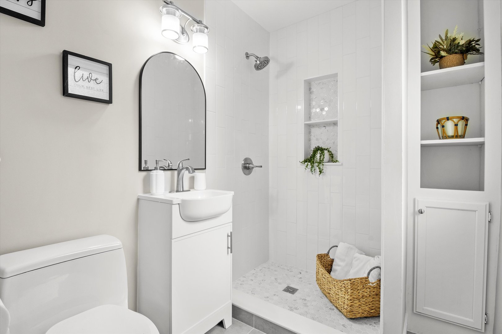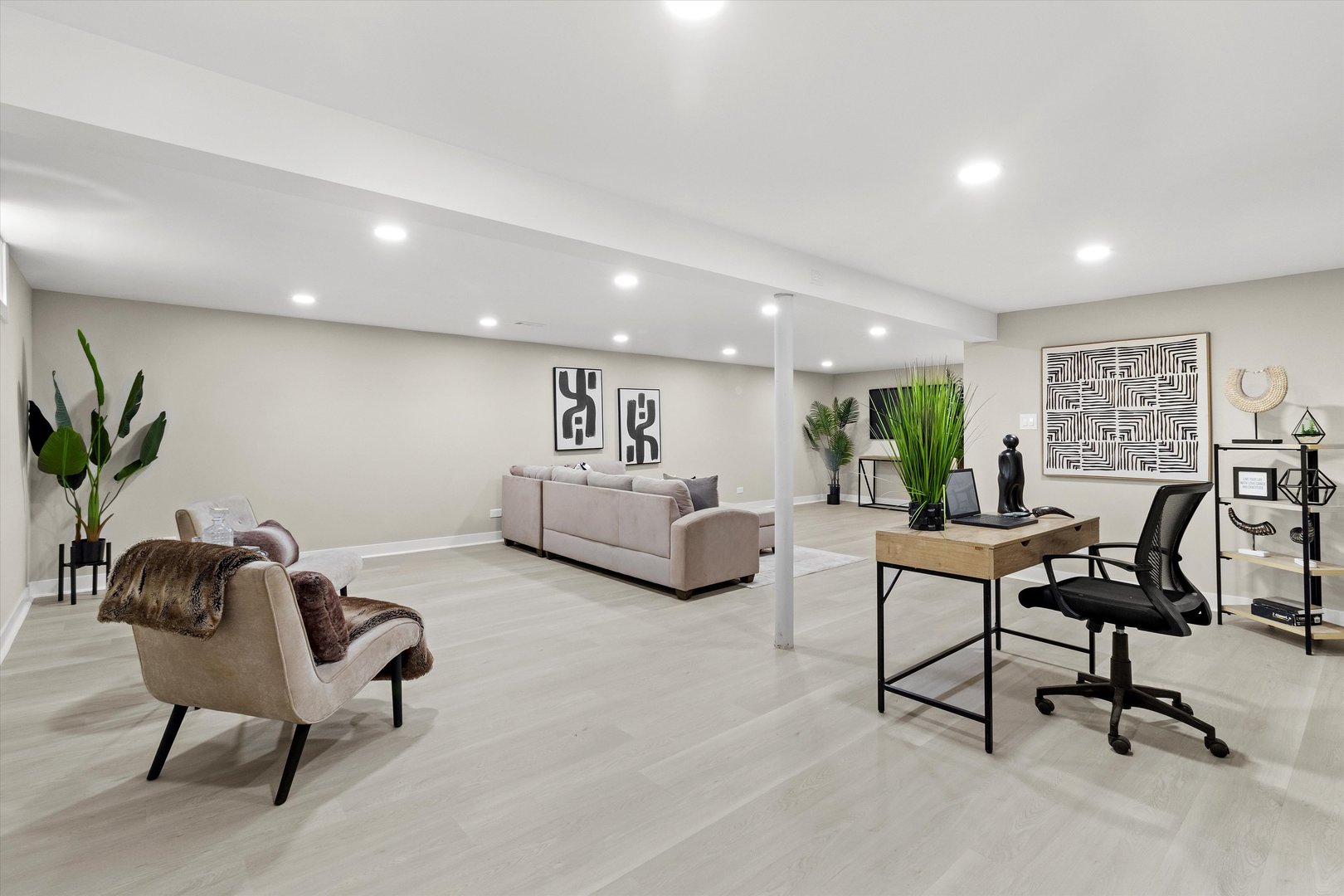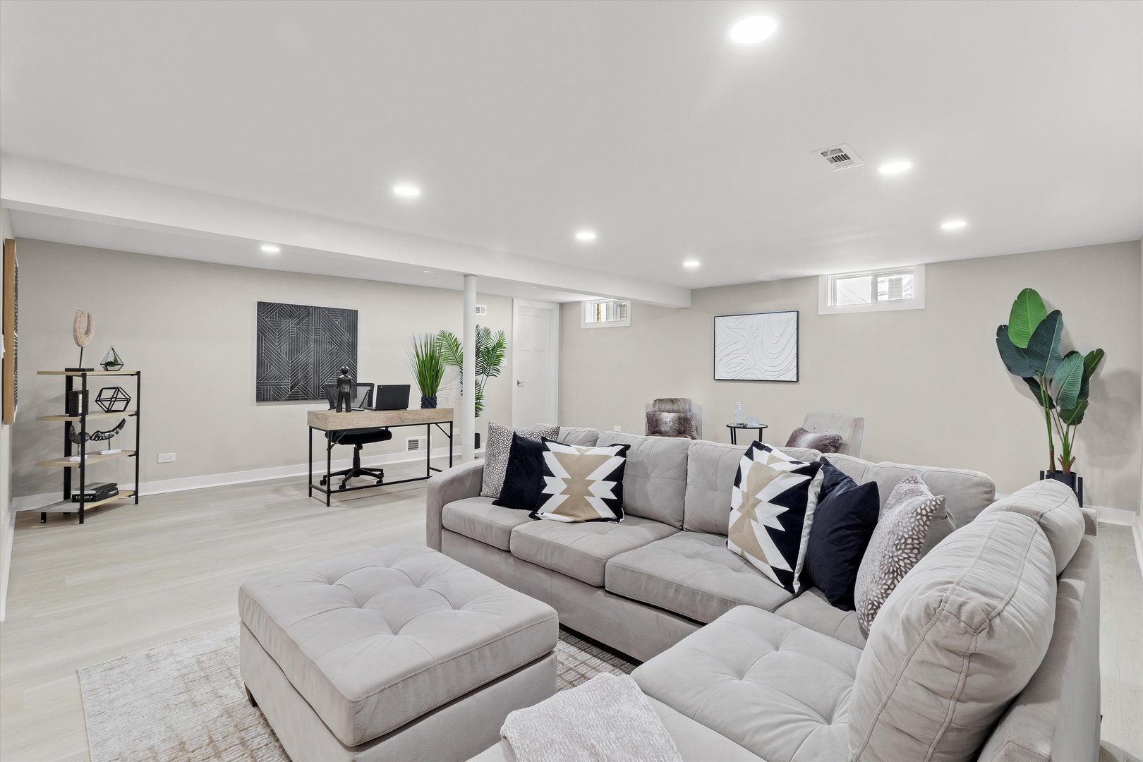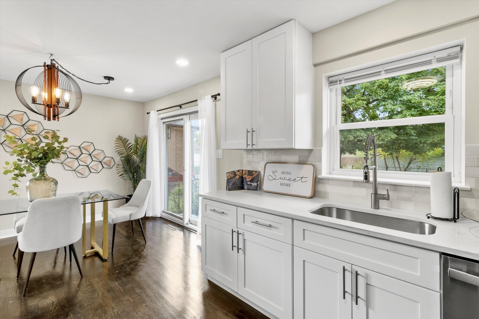 WOW! WHAT A BEAUTIFUL PLACE TO CALL HOME!! Bright and airy, open space concept that fits today’s lifestyle needs. BEAUTIFUL modern kitchen with tall shaker white cabinetry, quartz countertops and new GE stainless steel appliances. 2 GORGEOUS clean look updated bathrooms on the main floor (1 in the master bedroom) with modern tile work and Kohler fixtures. 3 bedrooms with good closet space. GLEAMING hardwood floors throughout the main level. Basement has a HUGE family room with recessed lighting, a BONUS room that can be used as a home office/kids play room/etc. Also large storage room and additional storage space in the utility/laundry area. Large deck in the rear yard that is easily accessible from the kitchen/dining room area through the large patio door. New entry doors and all interior doors and trims. New lighting fixtures. Newer roof and windows.