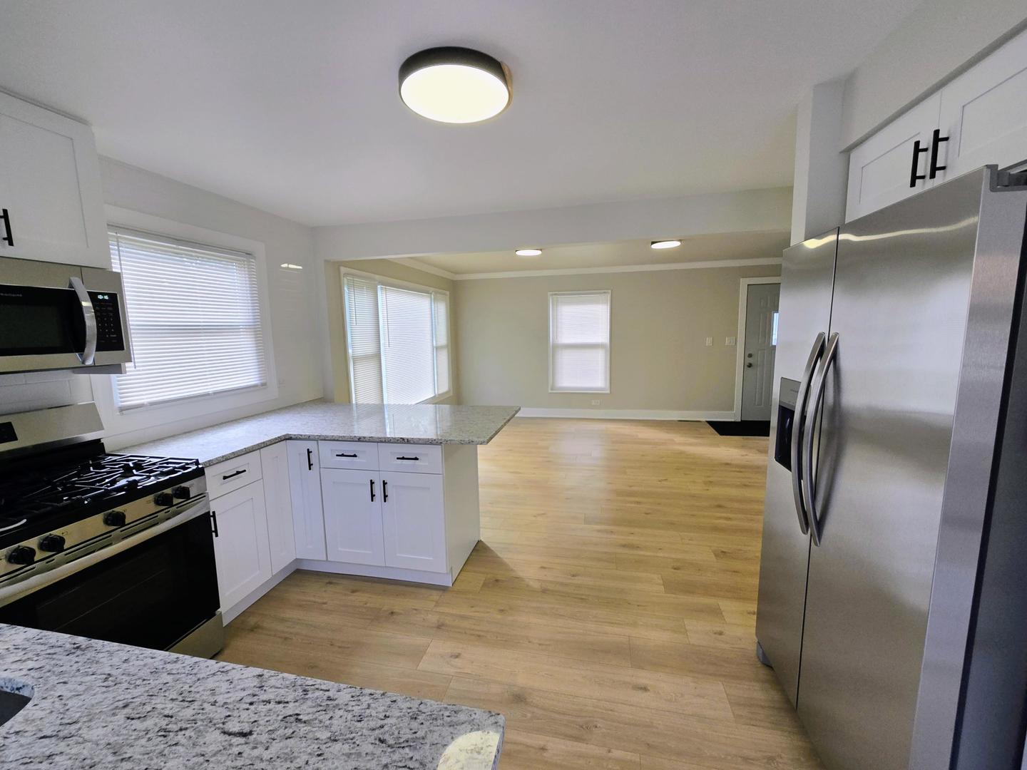 Welcome to your dream home! Situated in a peaceful neighborhood, this charming residence has been completely remodeled, offering four bedrooms and a large bathroom. The sunlit living room invites relaxation and is perfect for entertaining guests. The open-concept kitchen, featuring sleek granite countertops and new stainless-steel appliances, is a cook’s dream come true. The largest bedroom serves as a private sanctuary with ample space, while the three additional bedrooms provide comfort for other occupants or guests. The stylishly renovated bathroom, equipped with modern fixtures and finishes, caters to all bedrooms seamlessly. A huge basement with laundry allows for plenty of room to spread out. The expansive backyard is perfect for outdoor activities and gatherings, complemented by a large side deck and rear patio with a pergola. Conveniently located near schools, parks, shopping centers, and public transportation, this home ensures that all essentials are within easy reach. Don’t miss out on the opportunity to own this stunning home. Schedule a viewing today and make this house your forever home!