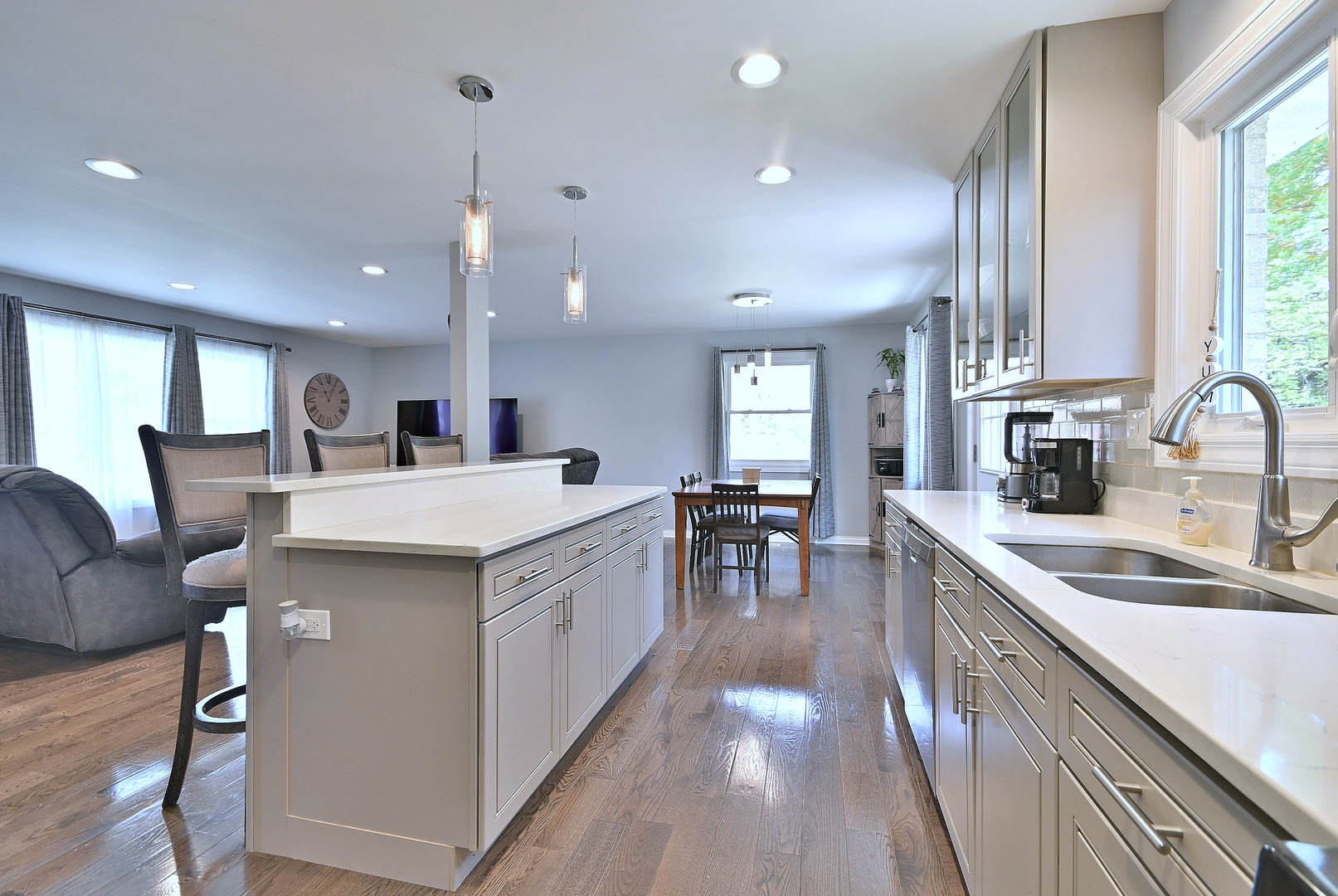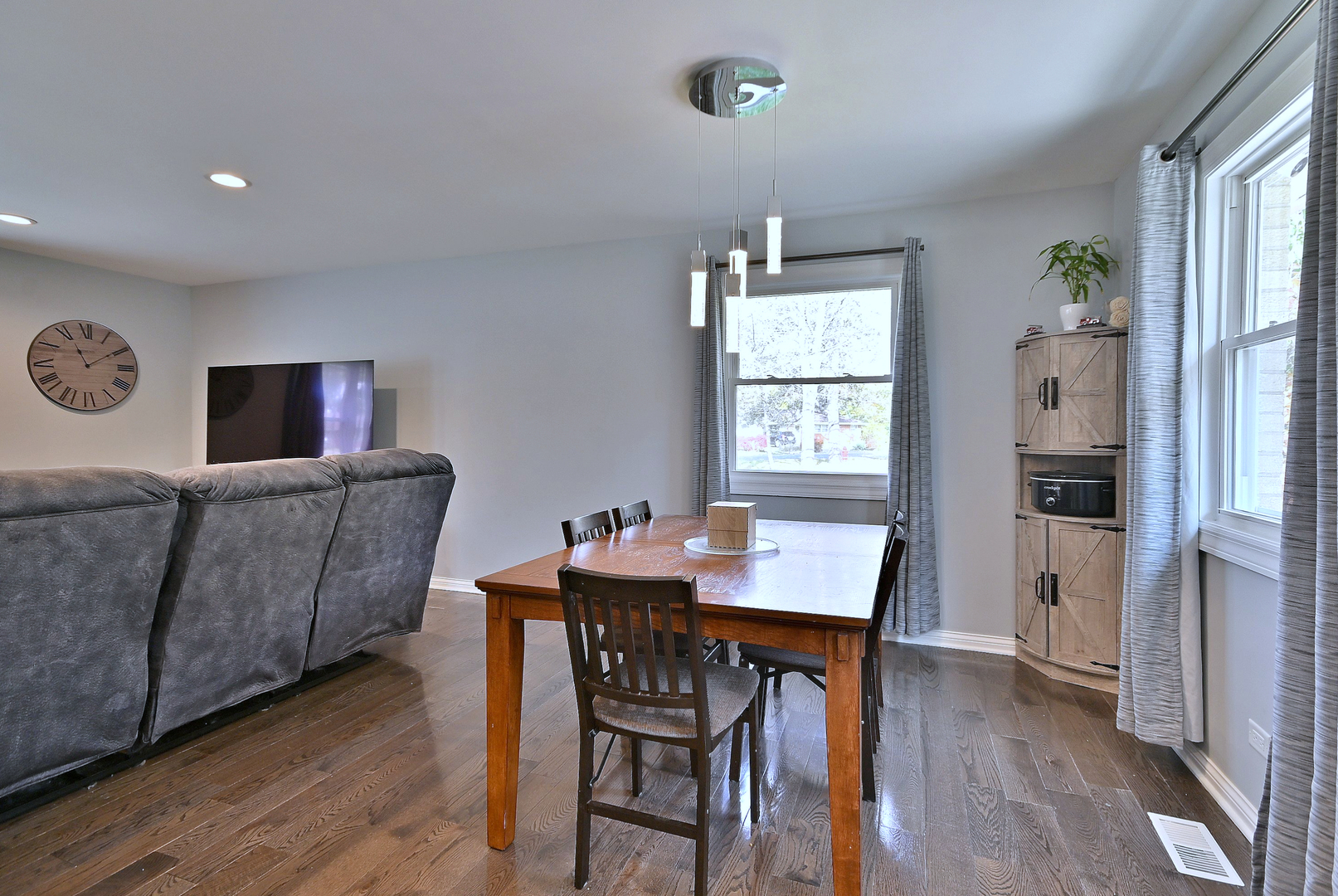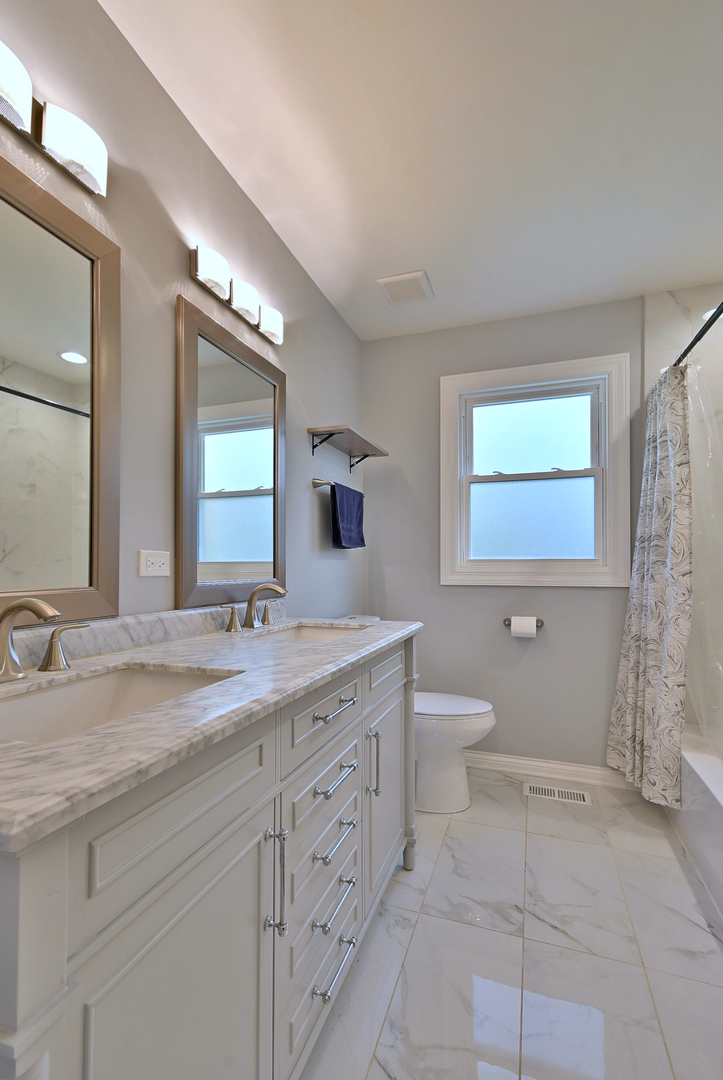 Beautifully updated 3 bedroom, 2 bath split-level ranch with a 2.5 car garage. Fully gutted and renovated in 2017 with an open floor plan, quartz countertops, updated appliances, LED lighting, and wood floors. Major improvements include a new roof, gutters, and fascia (2024), new HVAC (2023), and new water heater (2024). Home also features a Lifetime 8’7.5′ shed, reverse osmosis filtration system and concrete crawl space. Nestled in a quiet neighborhood just minutes from downtown Palatine, top schools, shopping, the Metra station. Just minutes from the future home of the Chicago Bears!