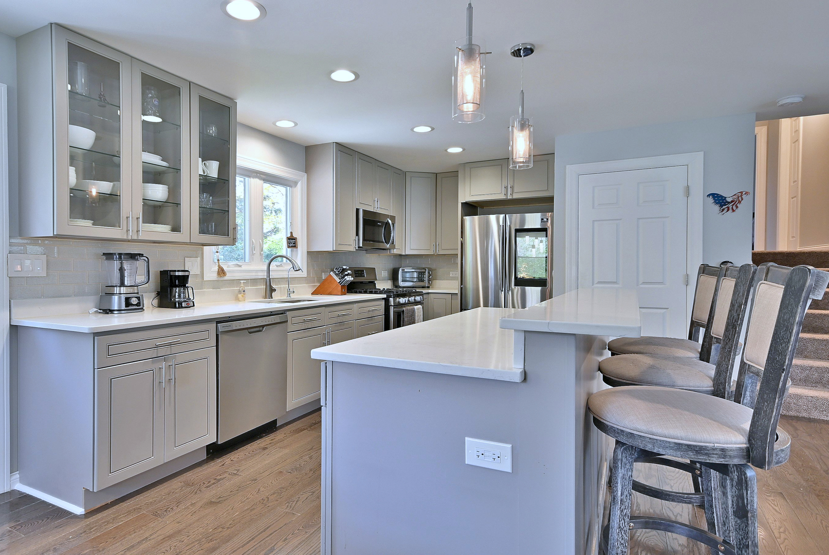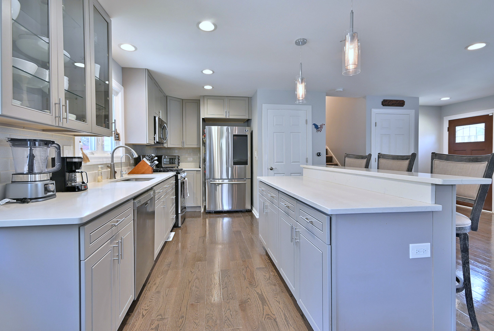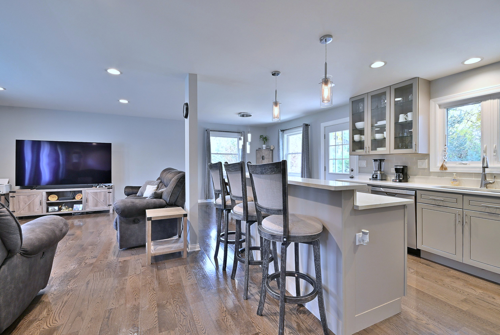 Beautifully updated 3 bedroom, 2 bath split-level ranch with a 2.5 car garage. Fully gutted and renovated in 2017 with an open floor plan, quartz countertops, updated appliances, LED lighting, and wood floors. Major improvements include a new roof, gutters, and fascia (2024), new HVAC (2023), and new water heater (2024). Home also features a Lifetime 8’7.5′ shed, reverse osmosis filtration system and concrete crawl space. Nestled in a quiet neighborhood just minutes from downtown Palatine, top schools, shopping, the Metra station. Just minutes from the future home of the Chicago Bears!