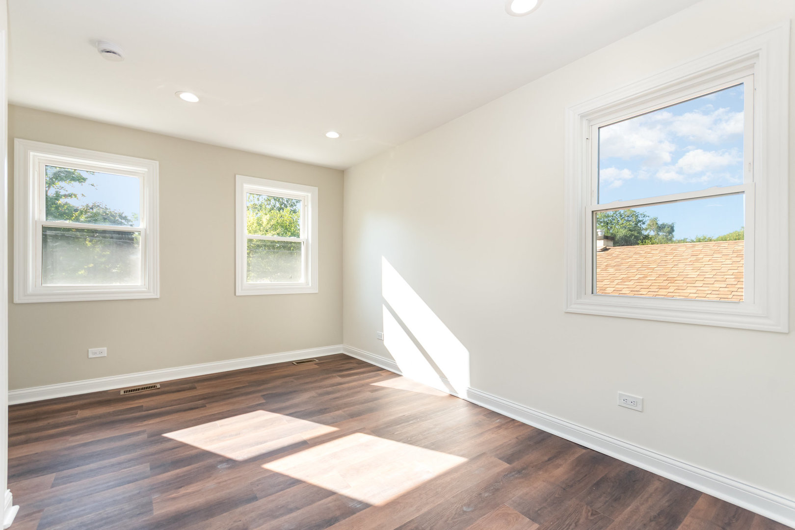 Beautifully transformed 3 bedroom, 2 bath home offers modern living with timeless charm. Step inside to find an open-concept kitchen featuring brand-new cabinetry, sleek quartz countertops, stainless steel appliances, and luxurious new LVP flooring that flows seamlessly throughout the entire home. The spacious layout includes a separate dining room and a cozy living room, complete with backlit built-ins and an inviting electric fireplace that’s perfect for entertaining or relaxing evenings at home. A flexible floor plan offers a main-level bedroom and full bath, ideal for guests or home office use. Just off the kitchen, step out to a generous backyard with a newly installed patio-ready for hosting gatherings or enjoying morning coffee. Upstairs, you’ll find a spacious primary bedroom with a large walk-in closet, a totally renovated full bath, a second bedroom, a utility/storage area and convenient second-floor laundry. Enjoy worry-free living for years to come with all major updates already done; new roof, siding, windows, HVAC, water heater, sidewalks, driveway, garage, patio, cabinetry, vanities, flooring, lighting, and freshly painted. Located just minutes from downtown Homewood’s dining and shopping, local parks and playgrounds, the Metra, and easy access to I-80/294, this home blends comfort, convenience, and style in one perfect package.