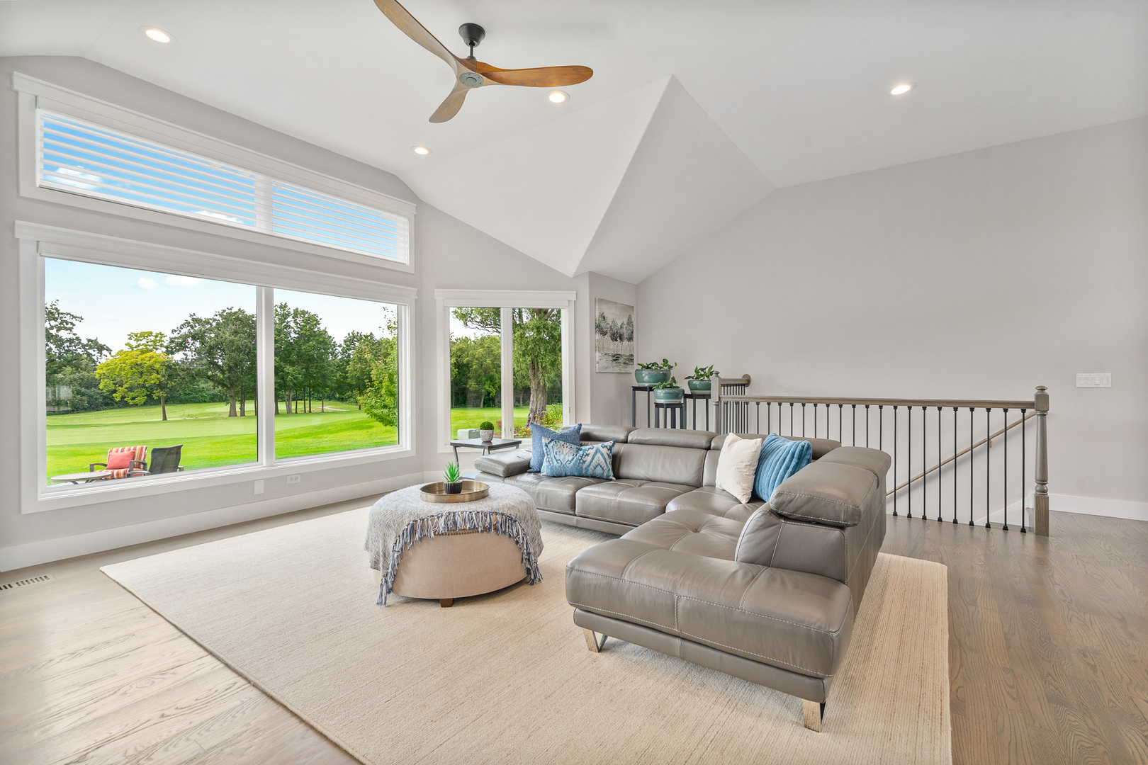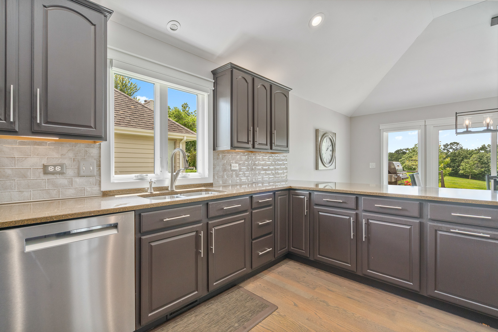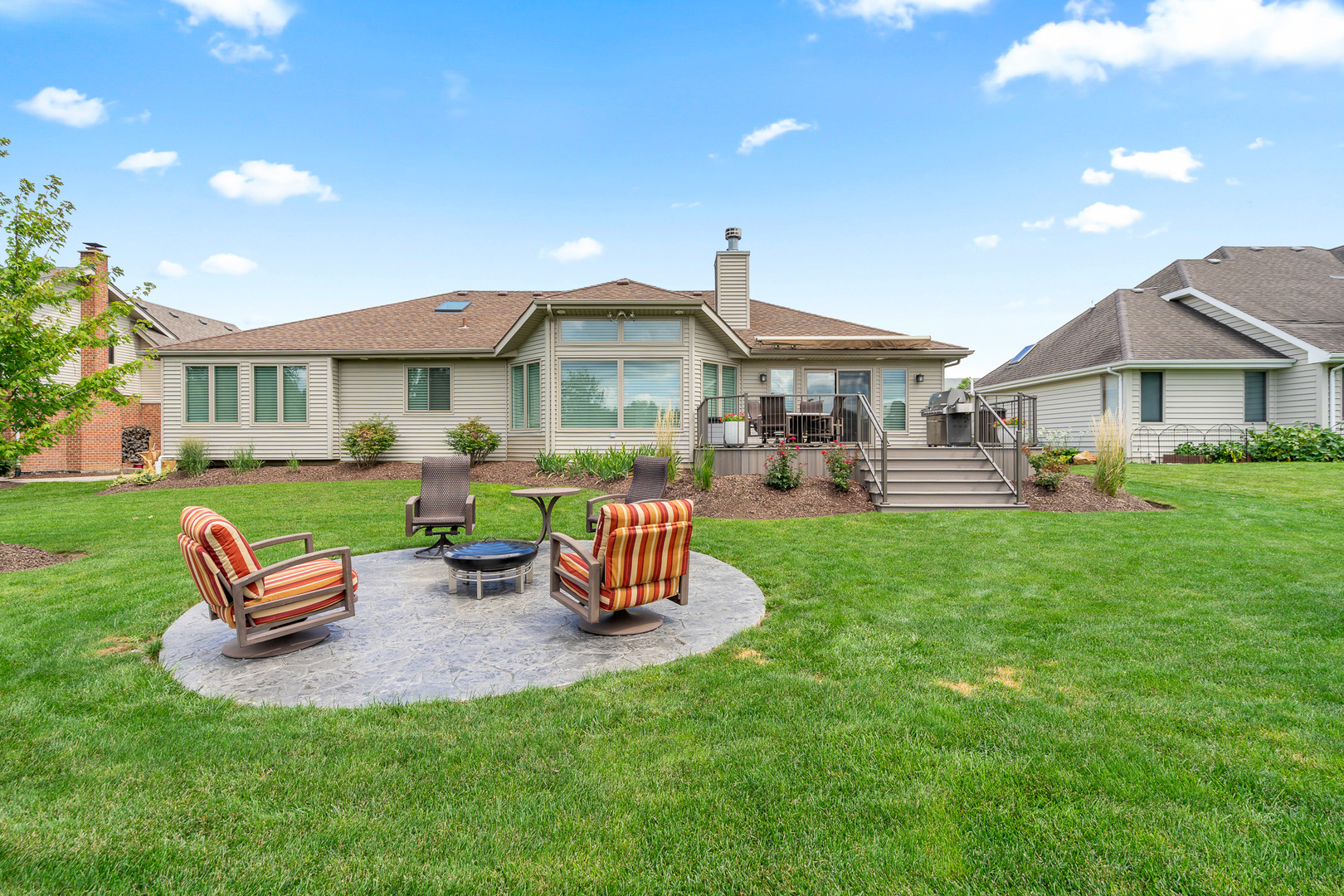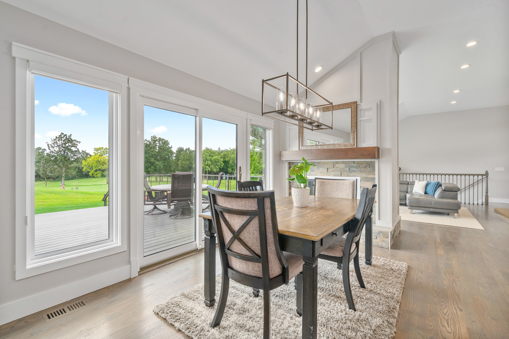 Nestled on a premium golf course lot overlooking the scenic fifth hole of Broken Arrow Golf Club, this absolutely stunning, fully remodeled ranch exudes luxury, style, and sophistication at every turn. Designed with impeccable attention to detail and today’s most desirable finishes, the home showcases rich oak flooring, elegant recessed lighting throughout, and a seamless open layout centered around a dramatic great room with a full wall of windows overlooking the golf course and a two-sided stacked stone fireplace that graces both the great room and formal dining area. The showstopping kitchen is a chef’s dream, featuring 42-inch dark cabinetry with crown molding, a sleek subway tile backsplash, gleaming granite countertops, and high-end stainless steel appliances. Step outside from the dining area onto a composite, maintenance-free deck (2022) shaded by a motorized retractable awning-perfect for relaxing or entertaining beside the fire table while enjoying tranquil golf course views. Invisible fence surrounds the yard for peace of mind for your pets. The private main-level office features a double-door entry, and the hall bath is appointed with an oversized shower, white quartz counters, and a dark vanity. The lavish master suite offers a decorative ceiling, walk-in closet with a professionally installed custom California Closets organizer, and a spa-caliber bath with a soaking tub, oversized shower, and double dark vanity with quartz tops. An open staircase leads to the expansive basement with a workshop and plumbing rough-in, ready for your vision. Energy-efficient upgrades include new vinyl windows (2024) with Low-E3 glass and a QuietCool whisper-quiet whole-house fan (2019). Additional updates include: roof (2013), new furnace (2019), new A/C (2021), new garage door with belt-drive lift motor (2019), soffit lighting around the perimeter of the home (2019), concrete driveway (2019), custom horizontal sheer shades by 3 Day Blinds throughout the home (2020), stamped concrete patio for additional entertaining (2023), amplified digital TV antenna mounted in the attic (2019), providing wired access to free local channels throughout the home and so much more-including newer refrigerator (2023), built-in microwave (2024), and dishwasher (2025)-all combining to deliver refined living with every imaginable comfort in an extraordinary golf course setting.