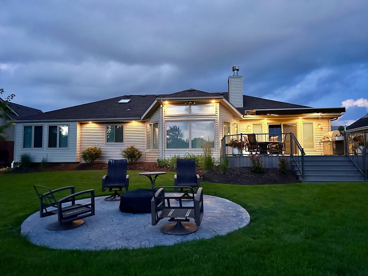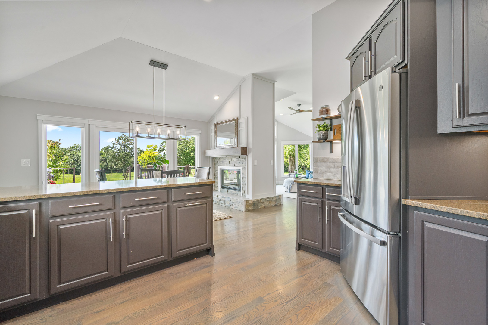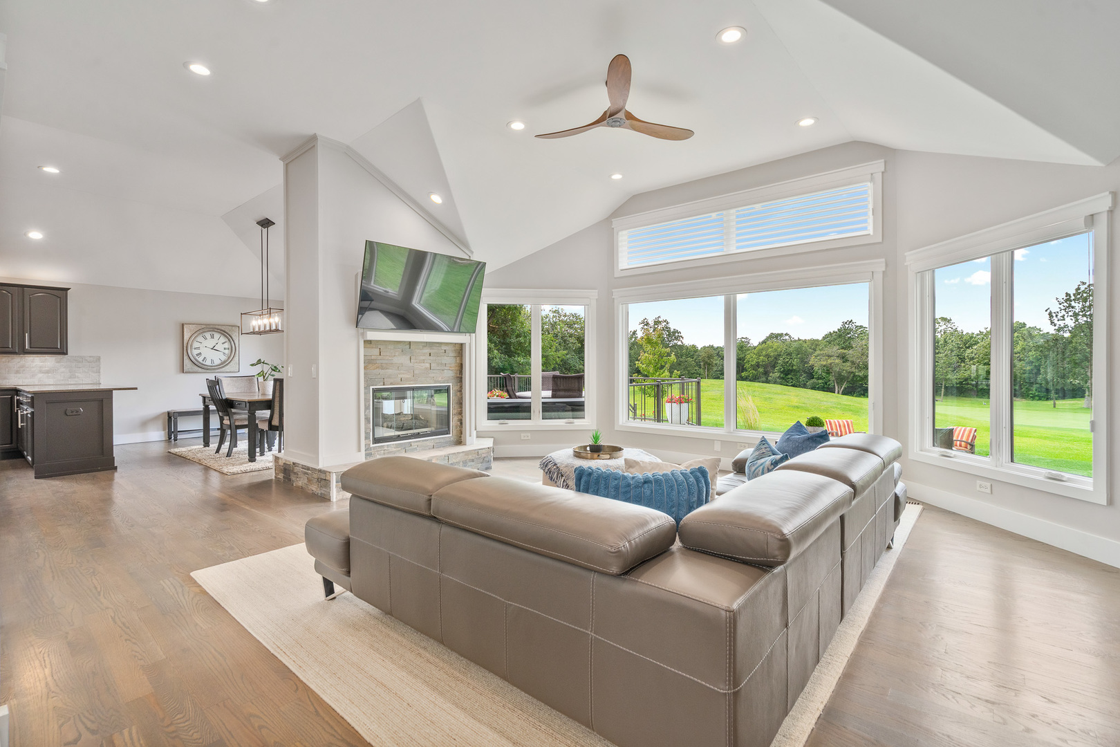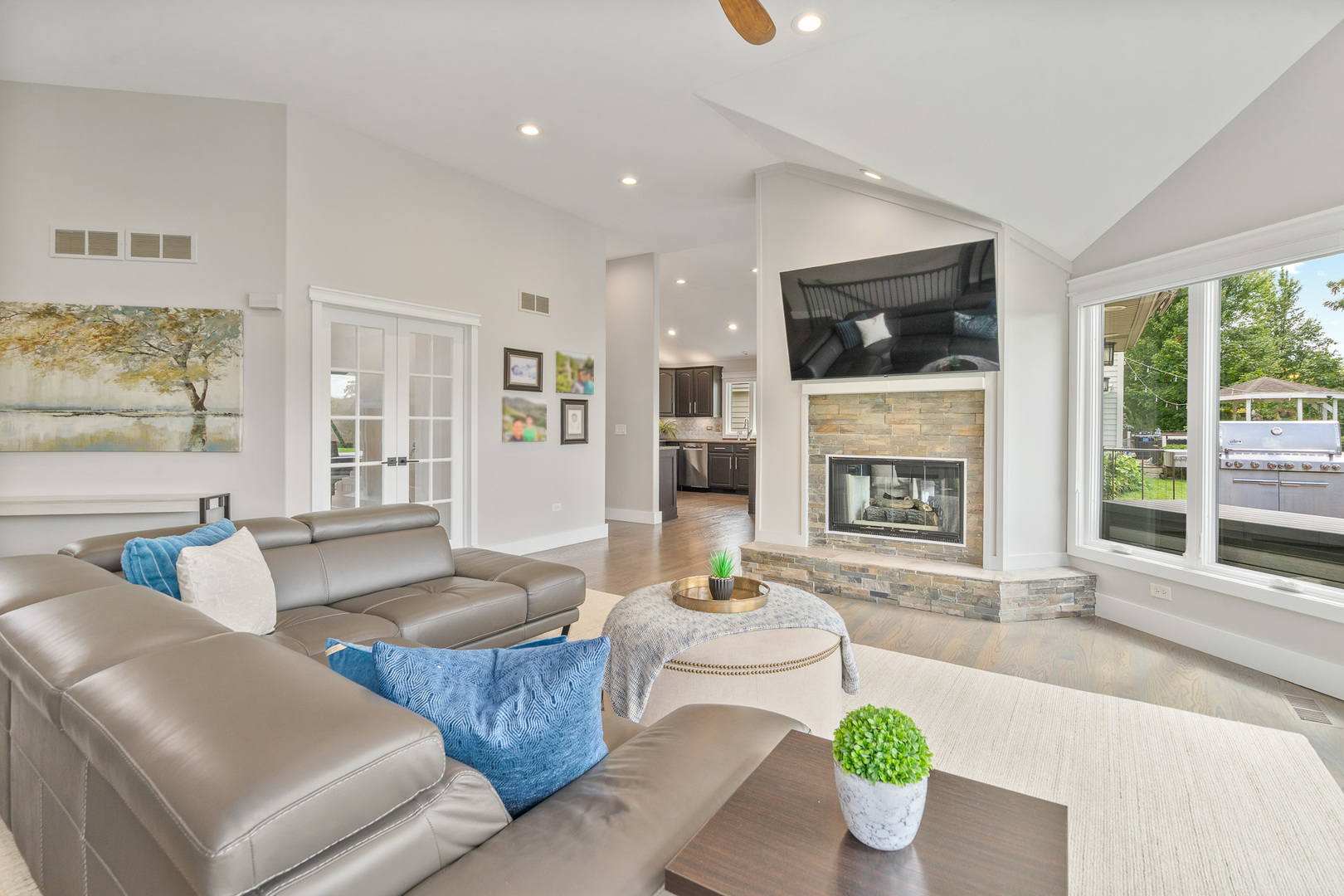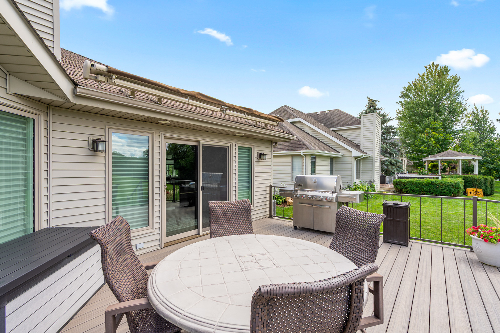 Nestled on a premium golf course lot overlooking the scenic fifth hole of Broken Arrow Golf Club, this absolutely stunning, fully remodeled ranch exudes luxury, style, and sophistication at every turn. Designed with impeccable attention to detail and today’s most desirable finishes, the home showcases rich oak flooring, elegant recessed lighting throughout, and a seamless open layout centered around a dramatic great room with a full wall of windows overlooking the golf course and a two-sided stacked stone fireplace that graces both the great room and formal dining area. The showstopping kitchen is a chef’s dream, featuring 42-inch dark cabinetry with crown molding, a sleek subway tile backsplash, gleaming granite countertops, and high-end stainless steel appliances. Step outside from the dining area onto a composite, maintenance-free deck (2022) shaded by a motorized retractable awning-perfect for relaxing or entertaining beside the fire table while enjoying tranquil golf course views. Invisible fence surrounds the yard for peace of mind for your pets. The private main-level office features a double-door entry, and the hall bath is appointed with an oversized shower, white quartz counters, and a dark vanity. The lavish master suite offers a decorative ceiling, walk-in closet with a professionally installed custom California Closets organizer, and a spa-caliber bath with a soaking tub, oversized shower, and double dark vanity with quartz tops. An open staircase leads to the expansive basement with a workshop and plumbing rough-in, ready for your vision. Energy-efficient upgrades include new vinyl windows (2024) with Low-E3 glass and a QuietCool whisper-quiet whole-house fan (2019). Additional updates include: roof (2013), new furnace (2019), new A/C (2021), new garage door with belt-drive lift motor (2019), soffit lighting around the perimeter of the home (2019), concrete driveway (2019), custom horizontal sheer shades by 3 Day Blinds throughout the home (2020), stamped concrete patio for additional entertaining (2023), amplified digital TV antenna mounted in the attic (2019), providing wired access to free local channels throughout the home and so much more-including newer refrigerator (2023), built-in microwave (2024), and dishwasher (2025)-all combining to deliver refined living with every imaginable comfort in an extraordinary golf course setting.